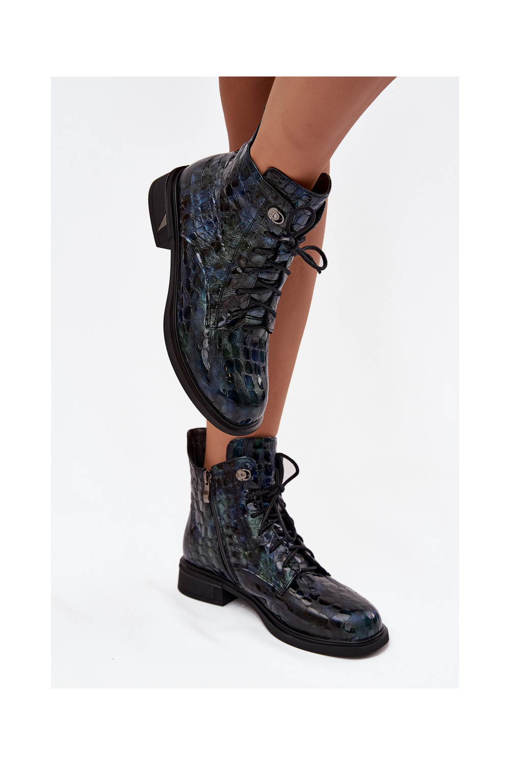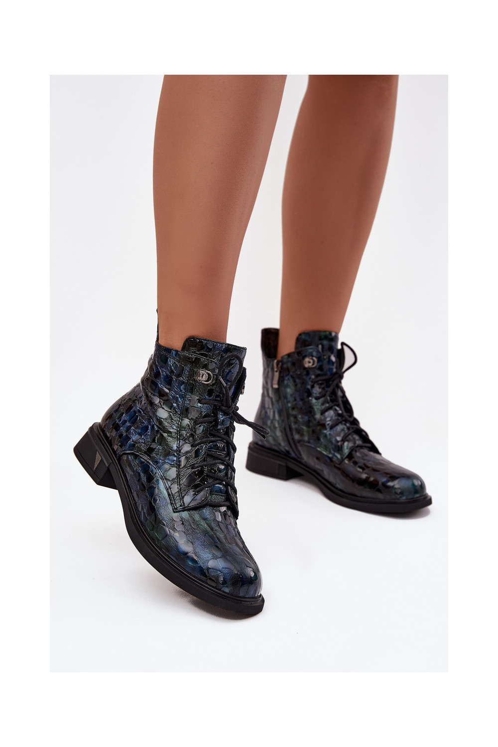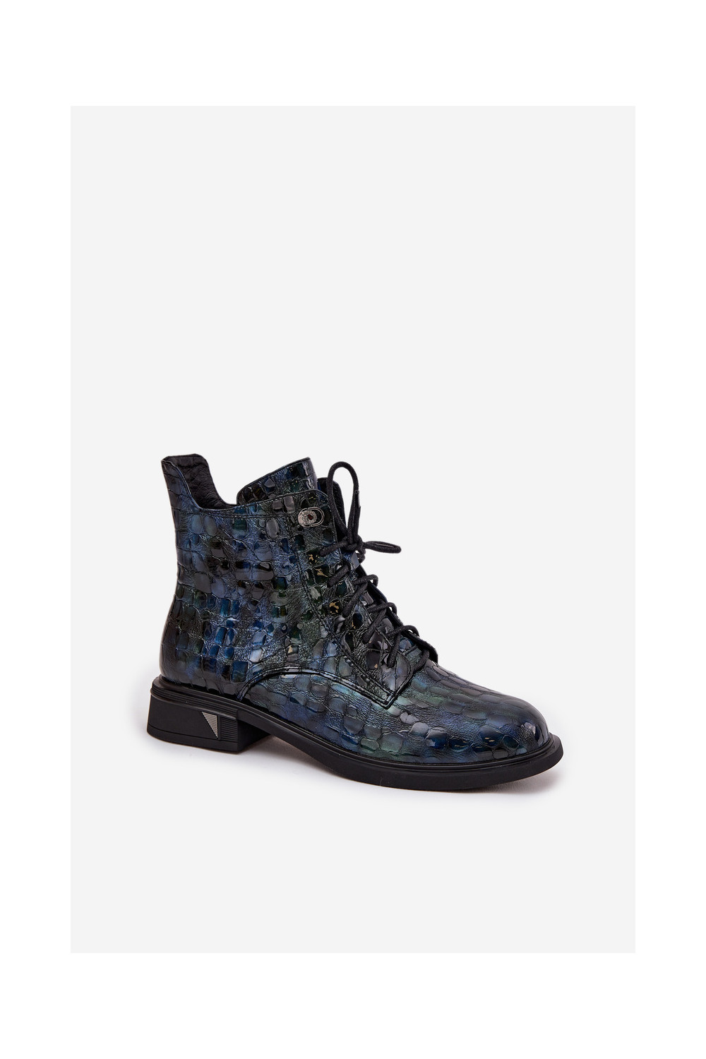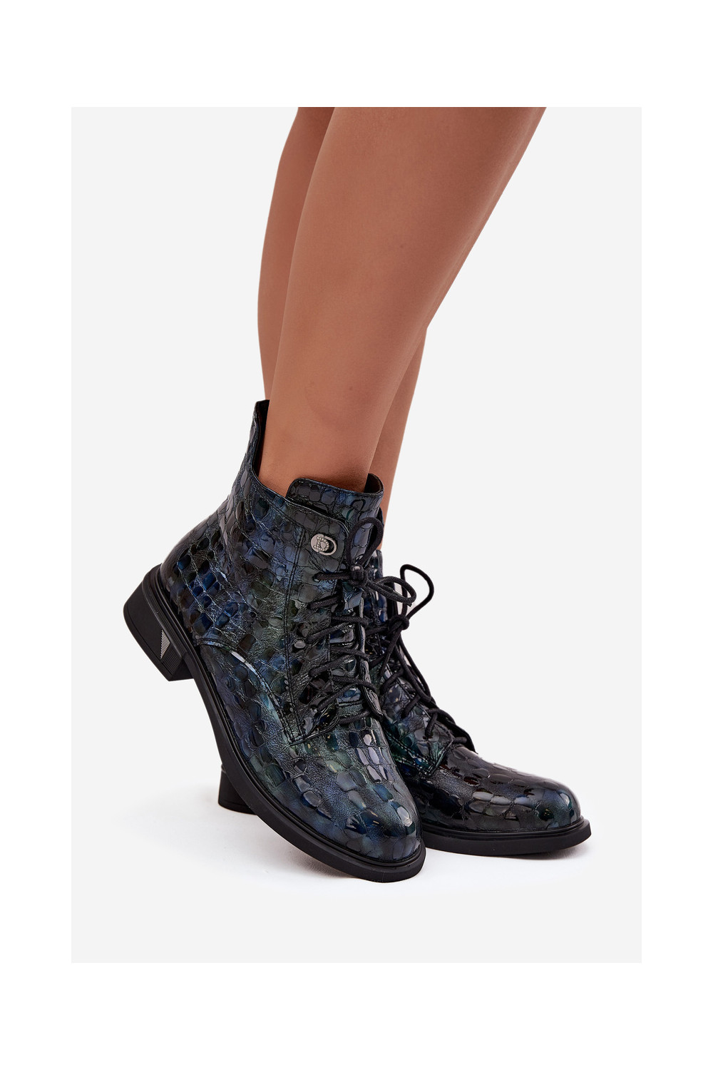 Naiste saapad naturaalsetest nahast lakiefektiga D&A LZ52-962 tumesinise värviga
