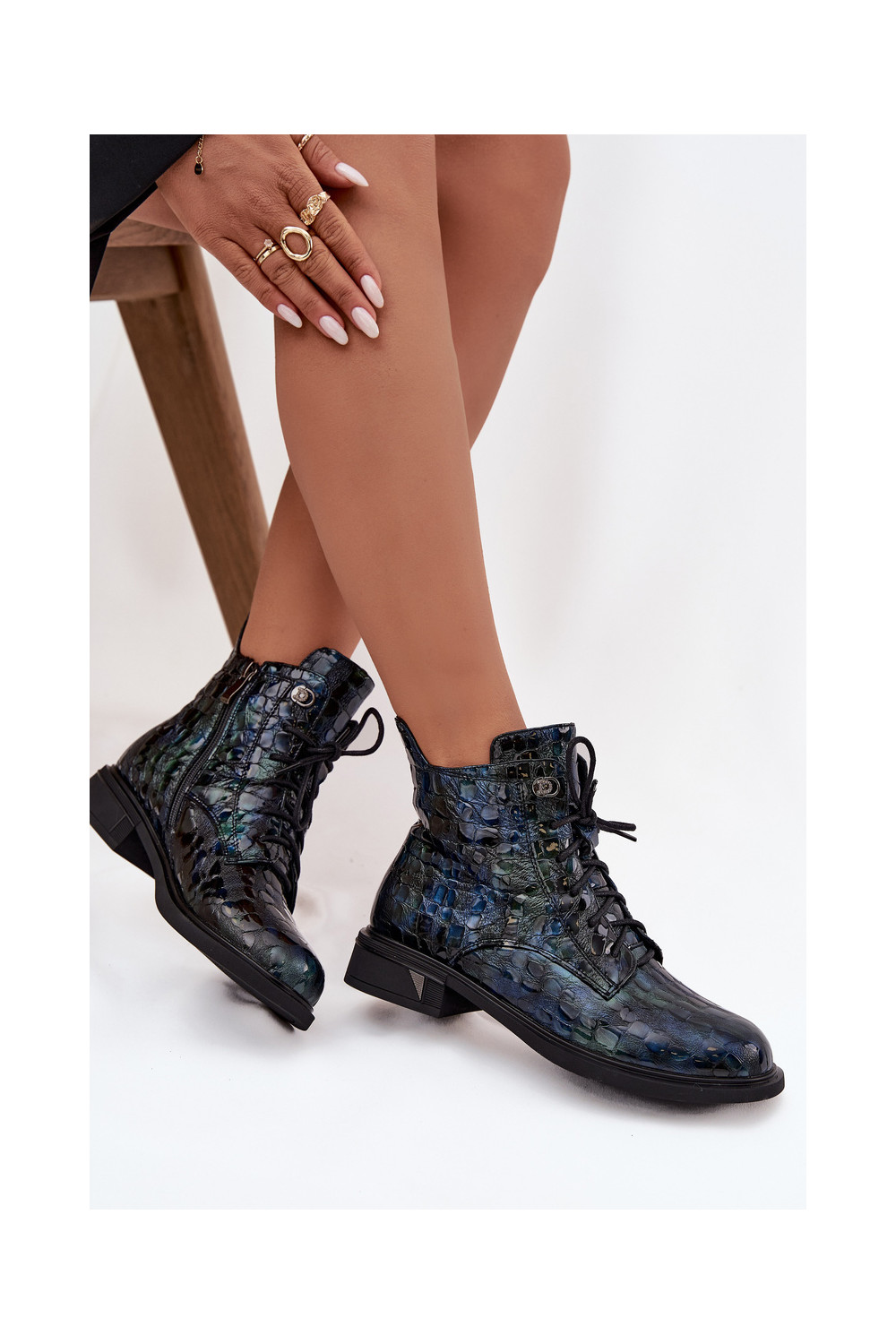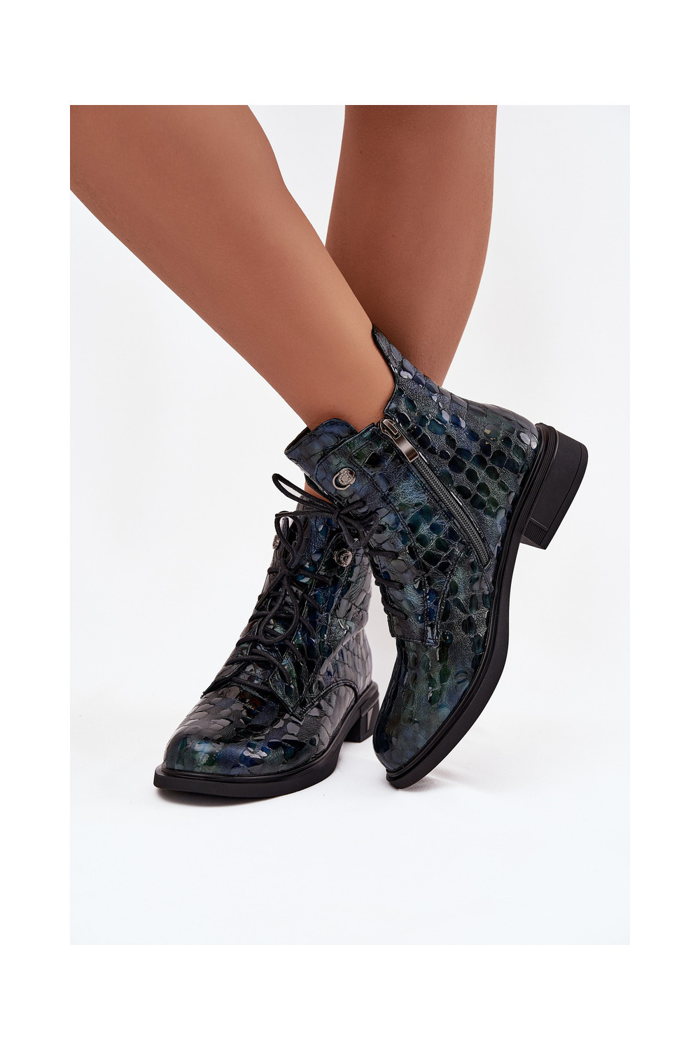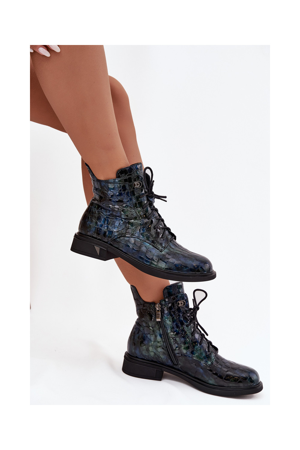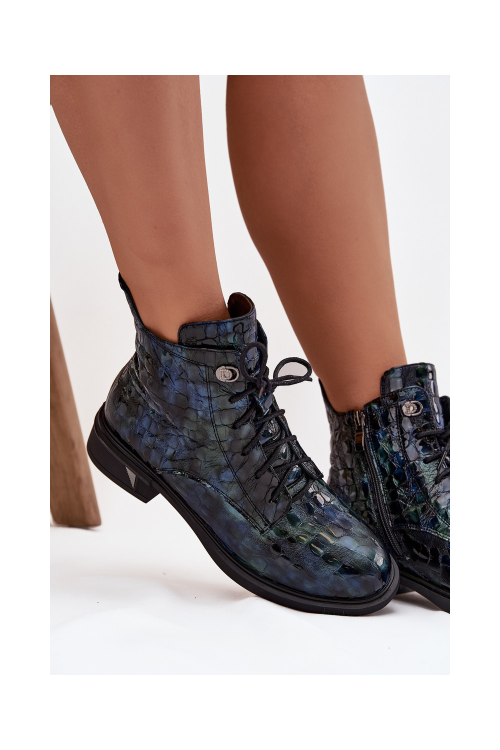 Naiste saapad naturaalsetest nahast lakiefektiga D&A LZ52-962 tumesinise värviga