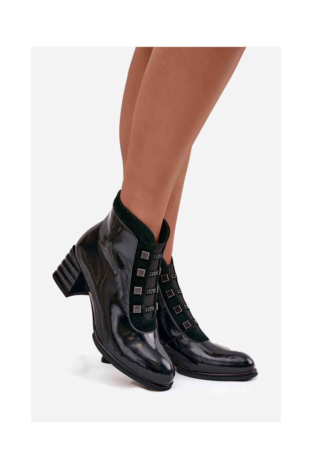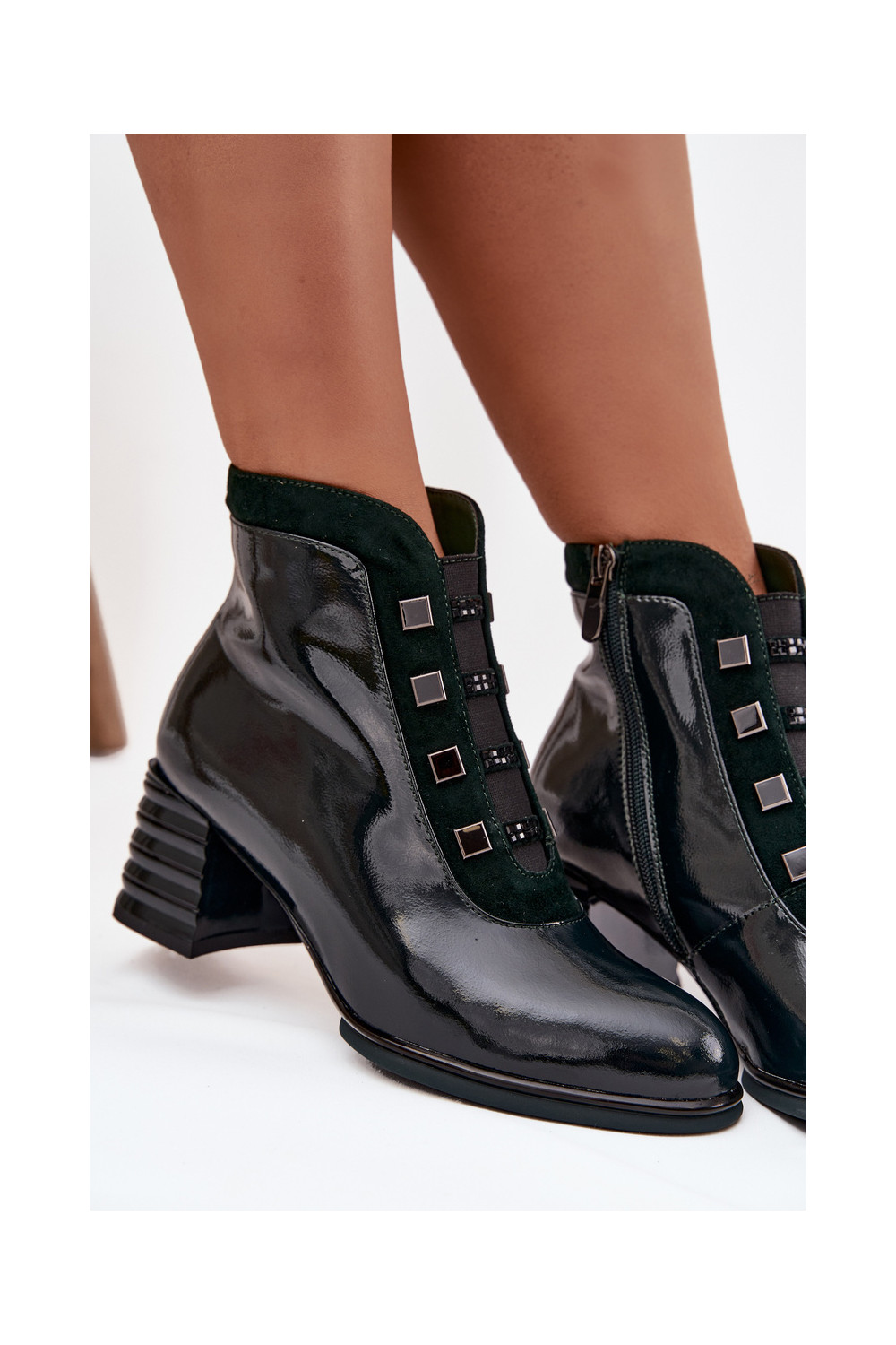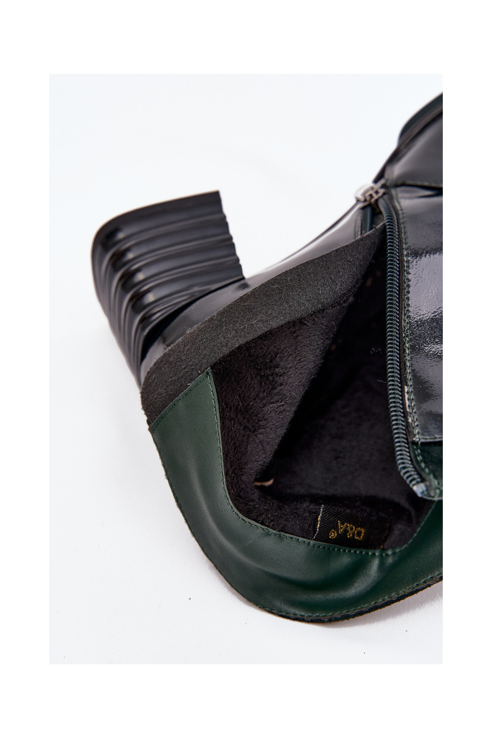 Lacquered Women's Boots Made of Genuine Leather on Heel DACR52696 Dark Green