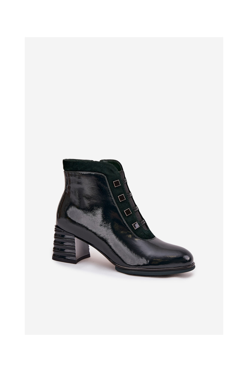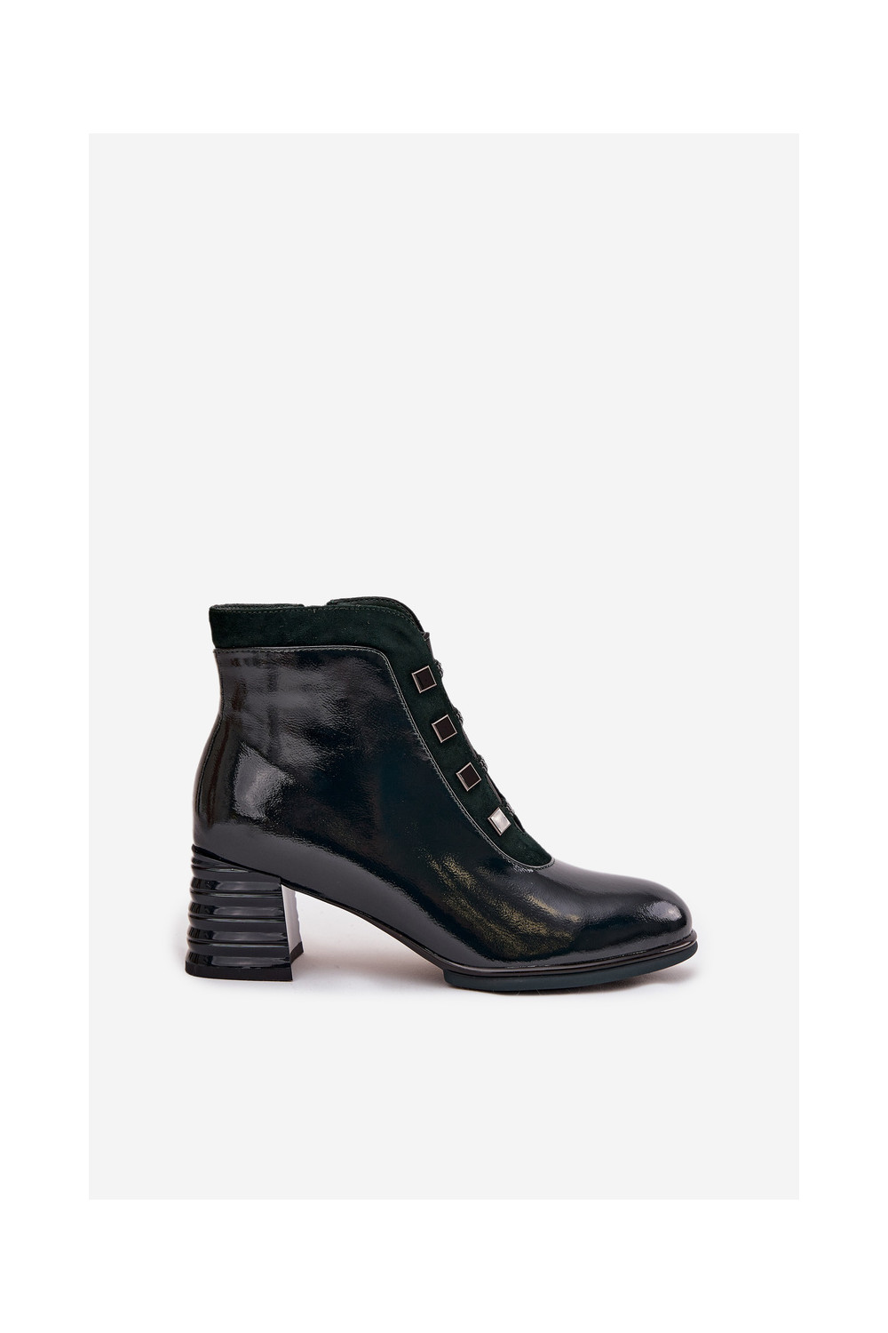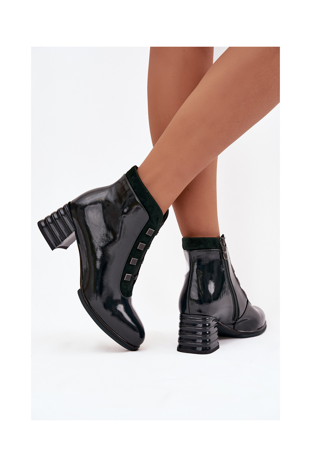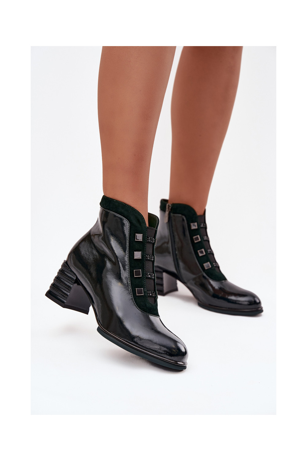 Lacquered Women's Boots Made of Genuine Leather on Heel DACR52696 Dark Green