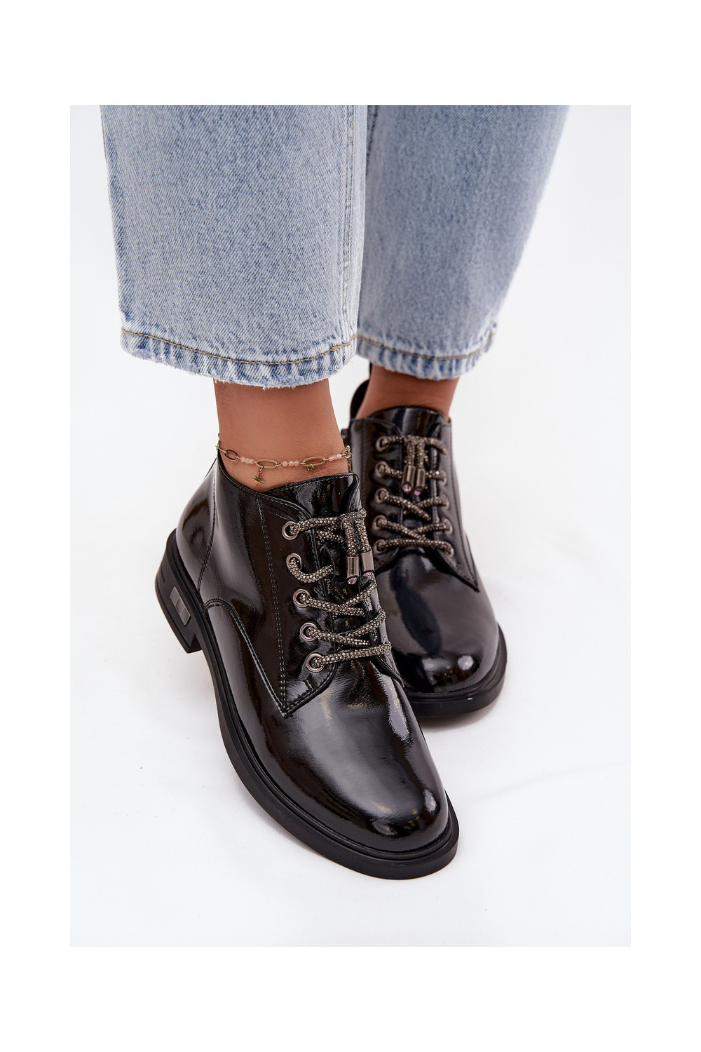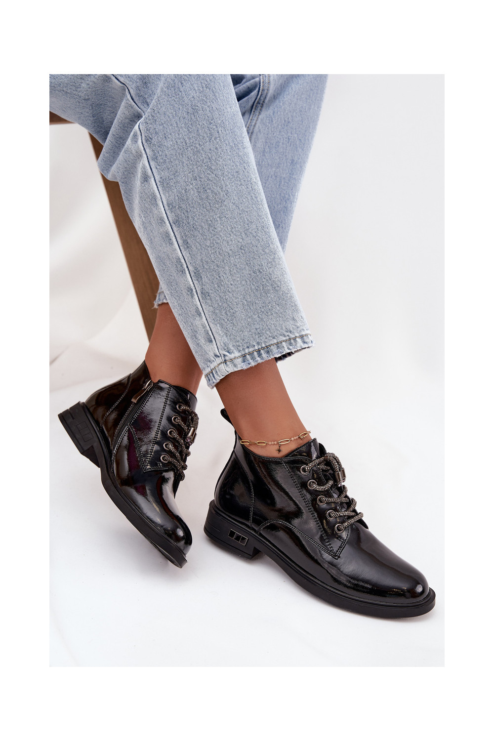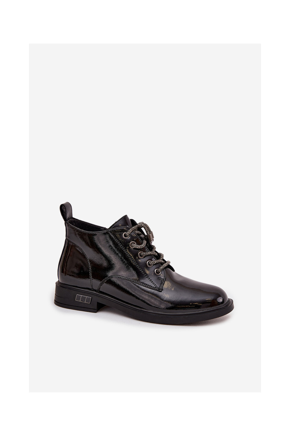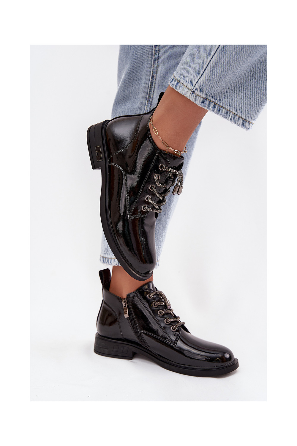 Kunstnahast naiste saapad lakiefektiga ja uhkete nööridega D&A MR52-124 musta värvi