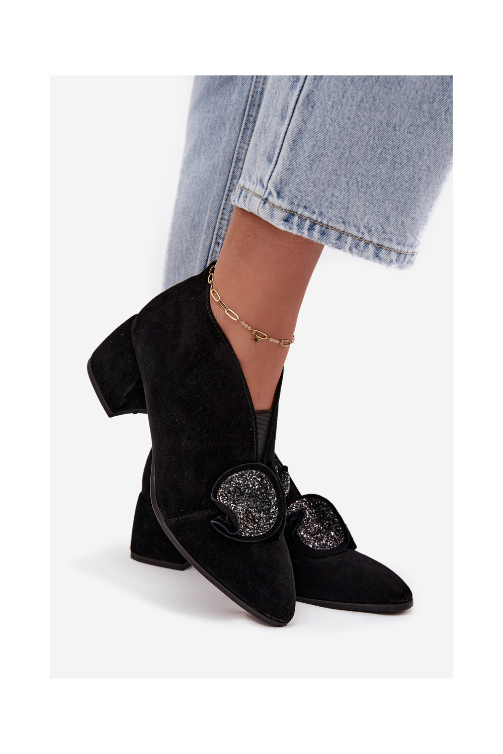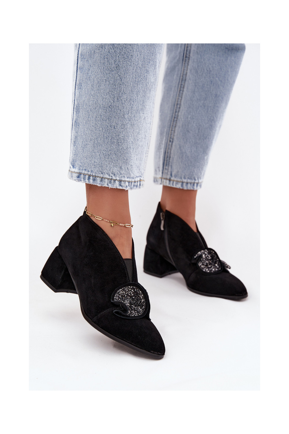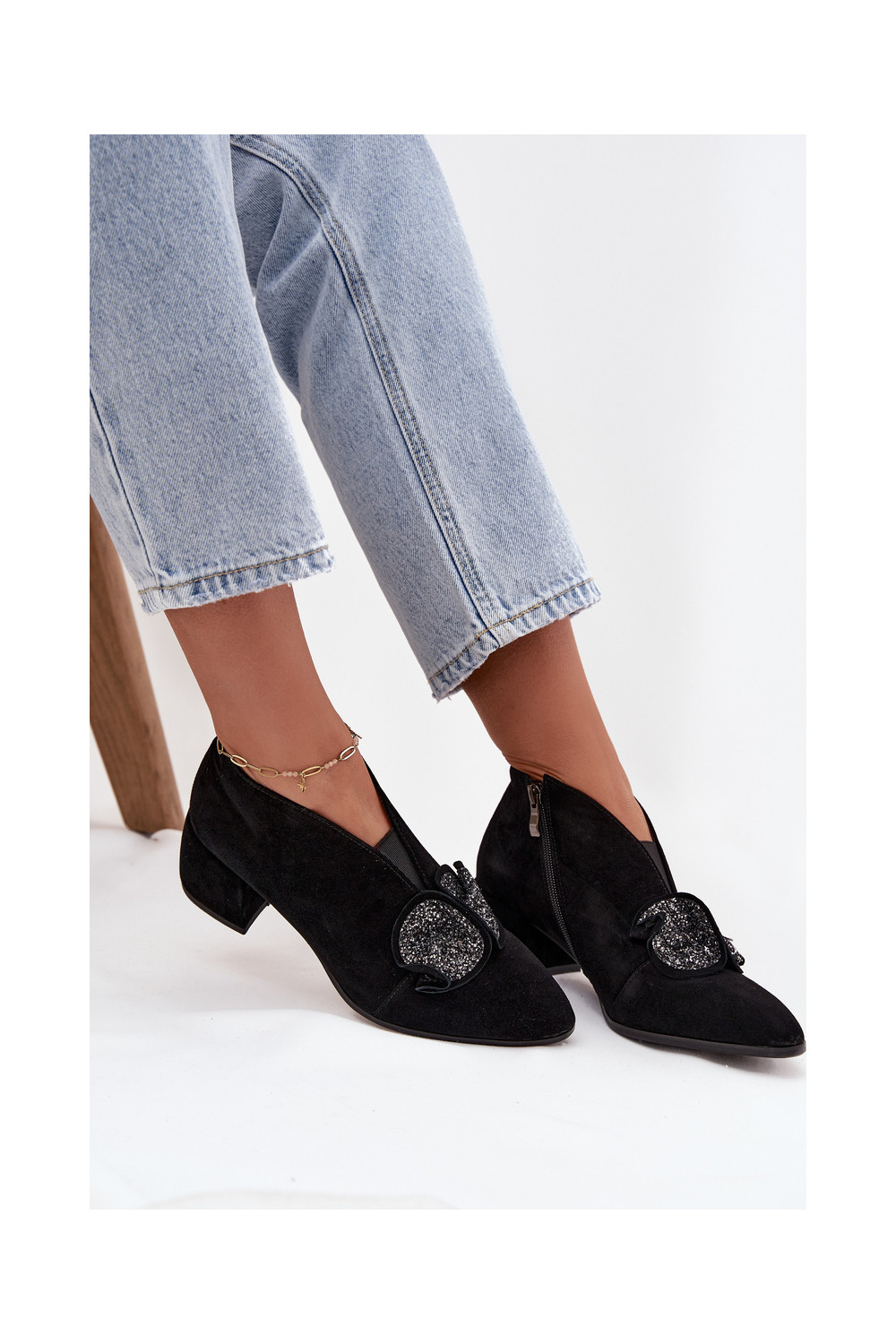 Kunstnahast sametised naiste kingad kontsaga ornamentidega D&A MR52-182 musta värvi