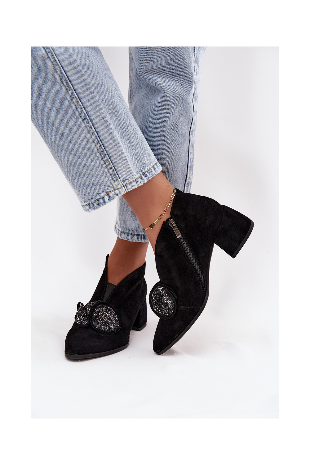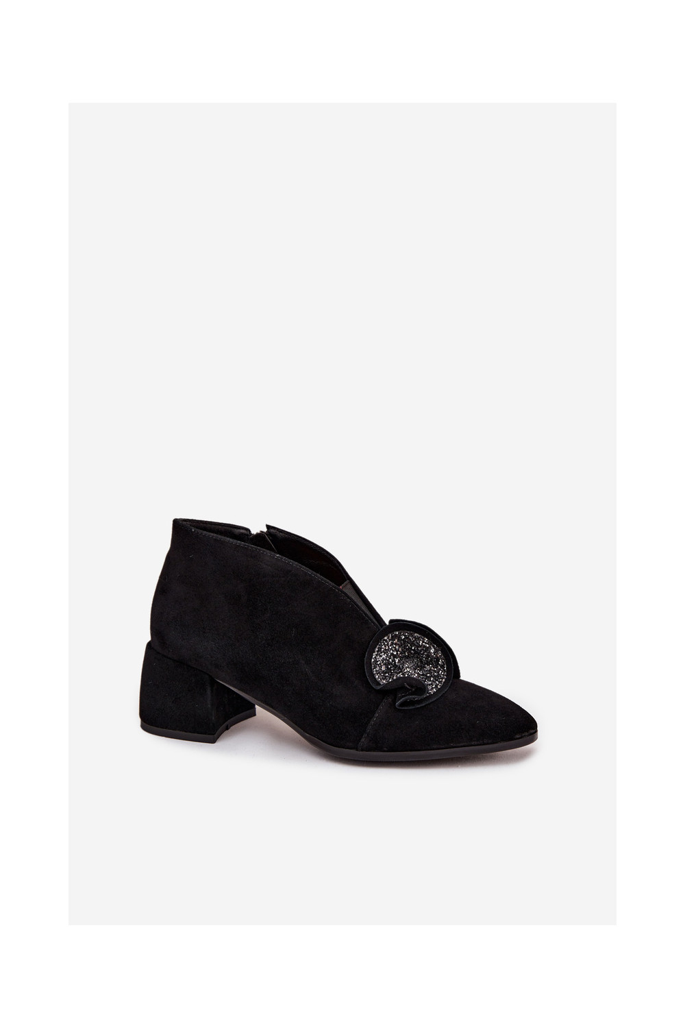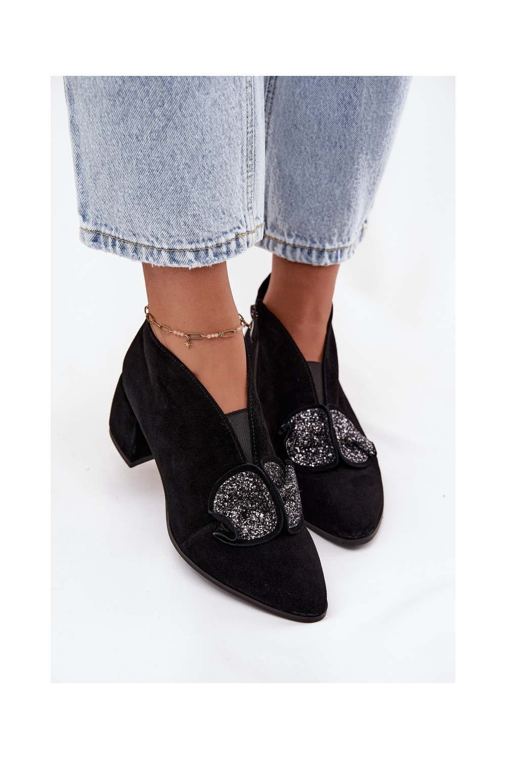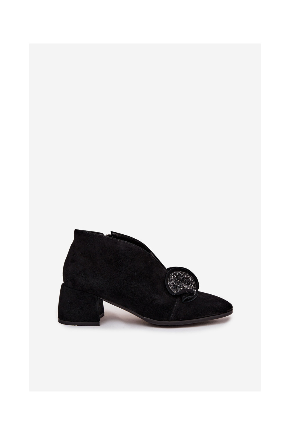Kunstnahast sametised naiste kingad kontsaga ornamentidega D&A MR52-182 musta värvi