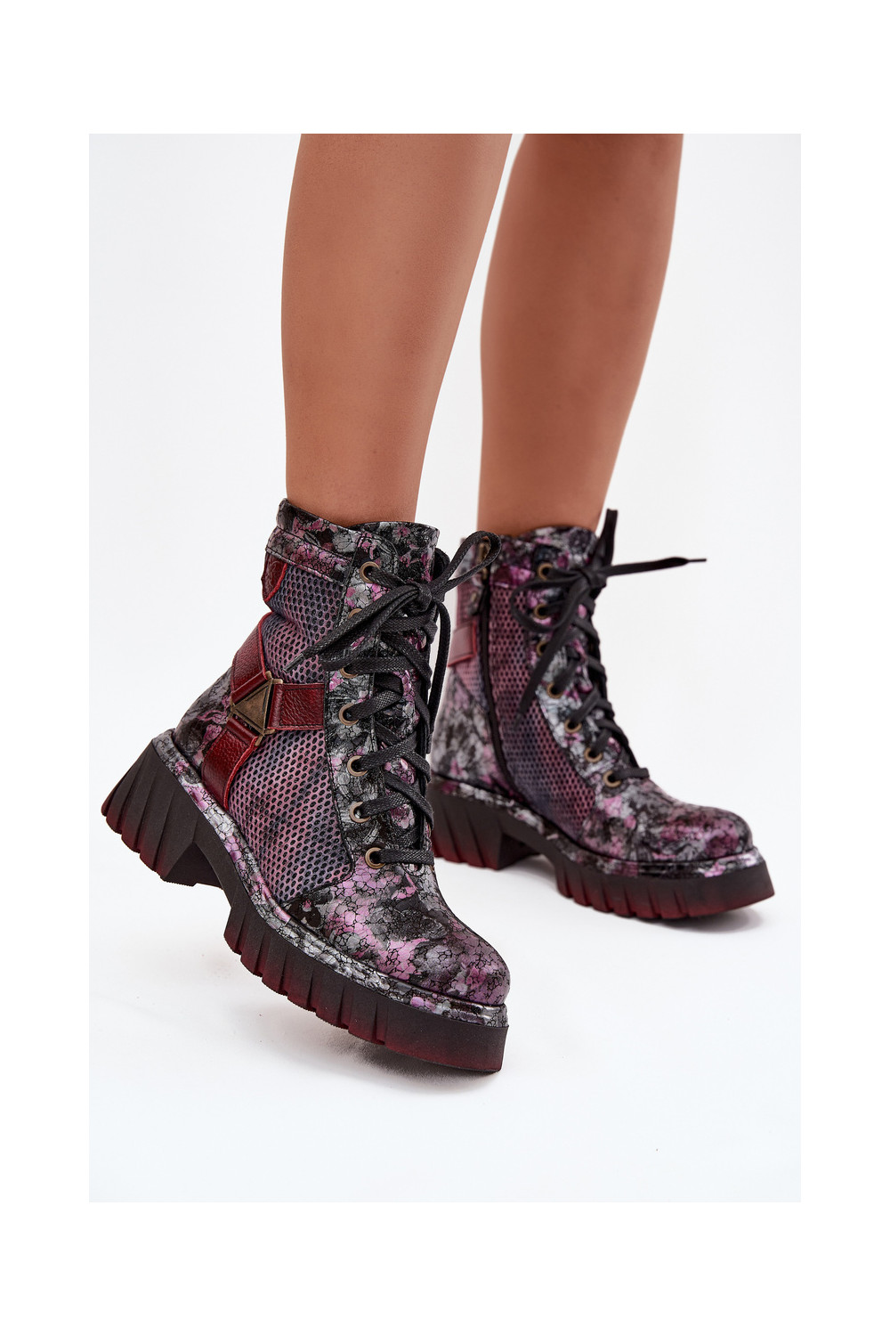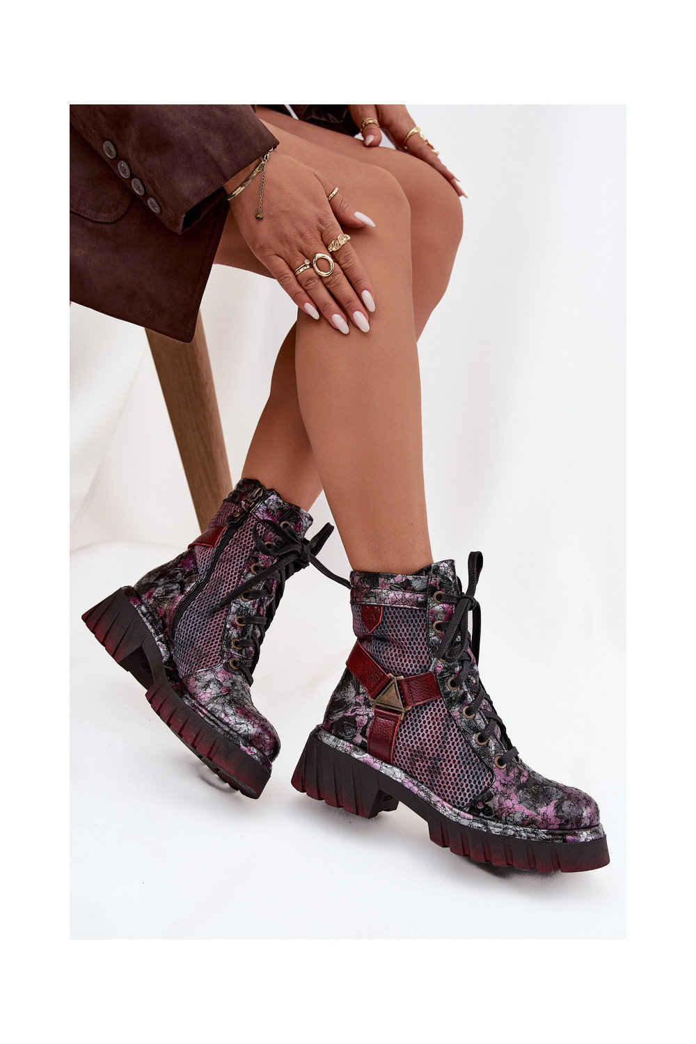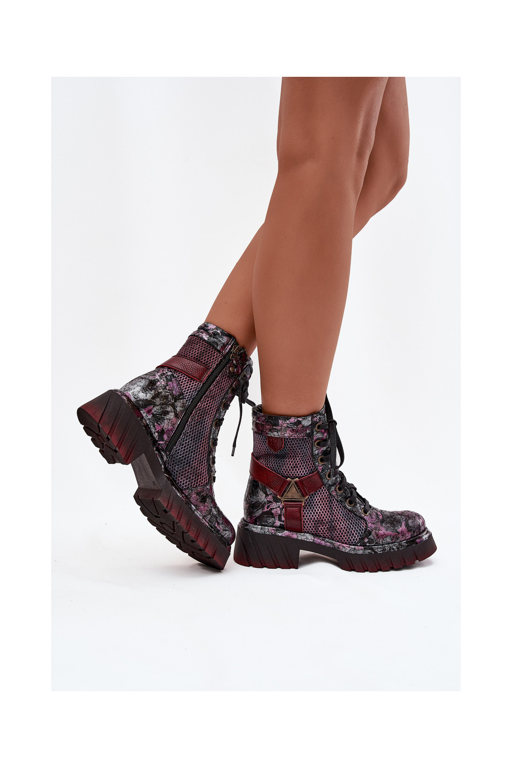 Nahast töönaiste pahkluu saapad Tai turiciejka 07072-23 burgundia värvi