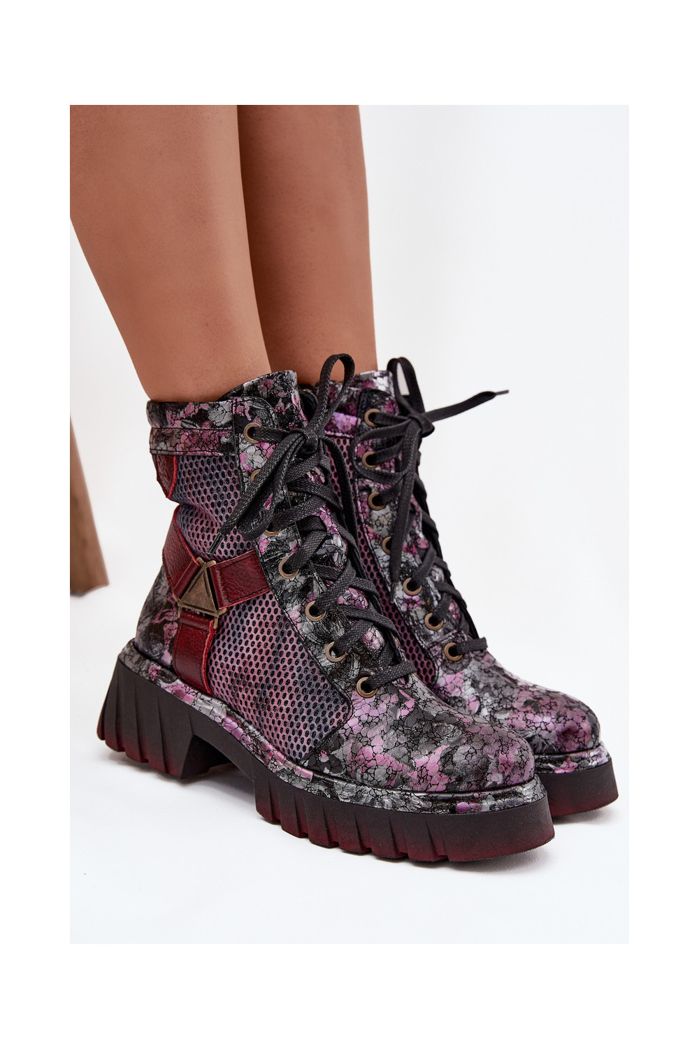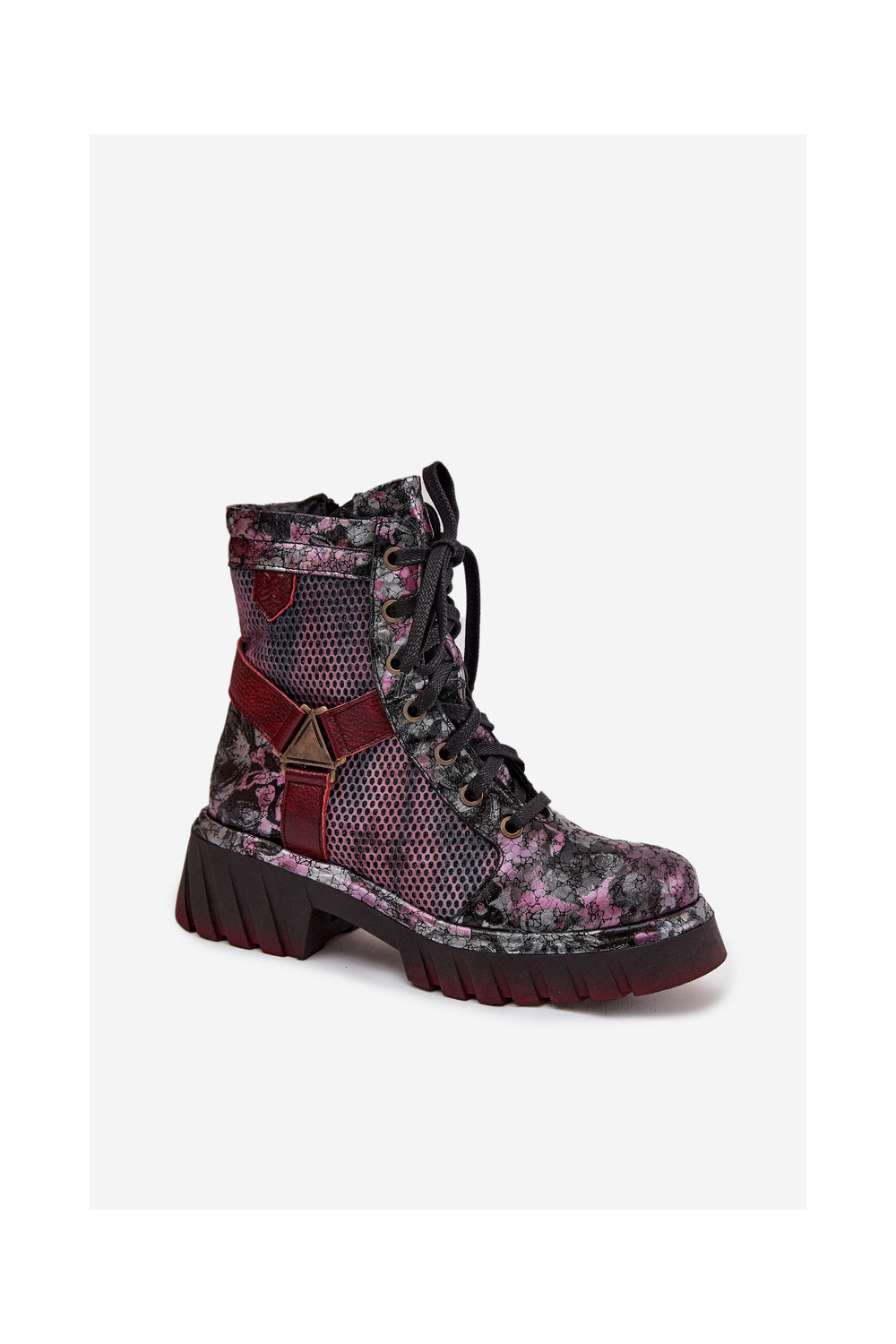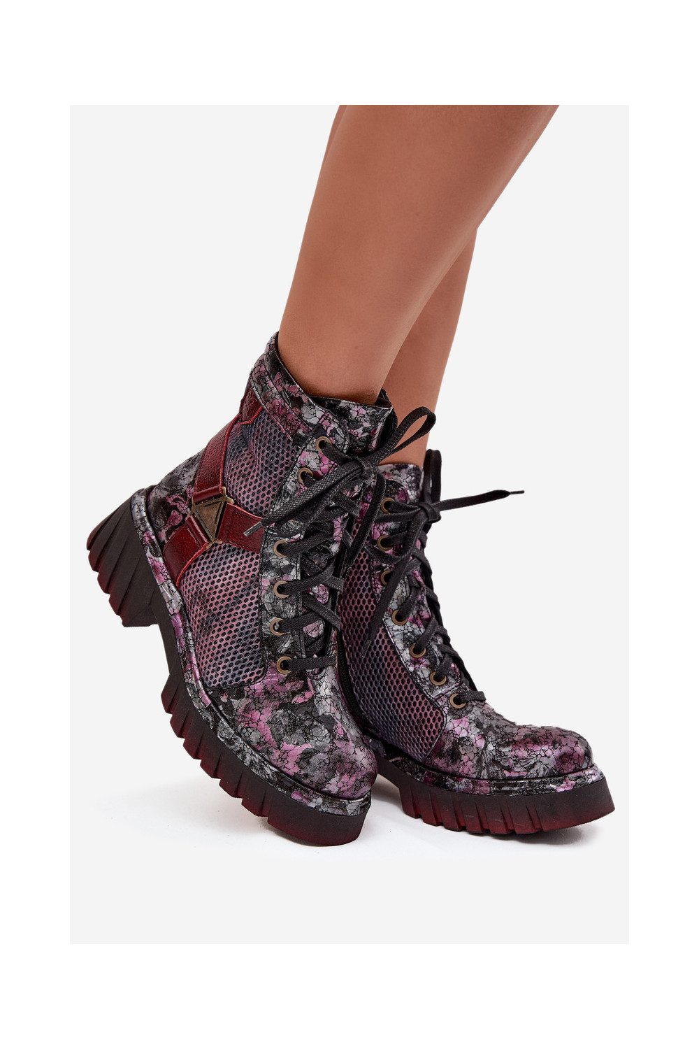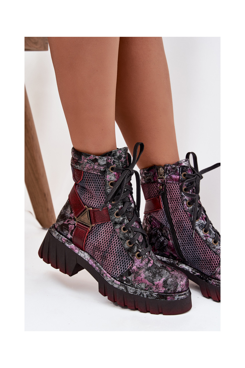 Nahast töönaiste pahkluu saapad Tai turiciejka 07072-23 burgundia värvi
