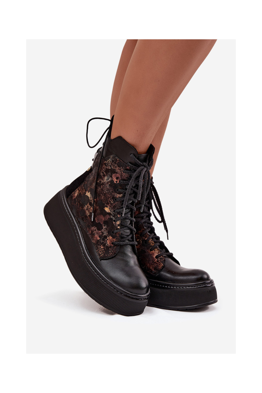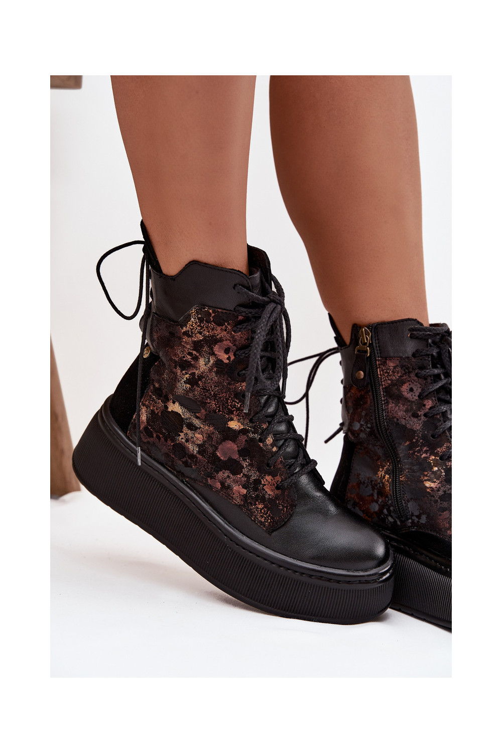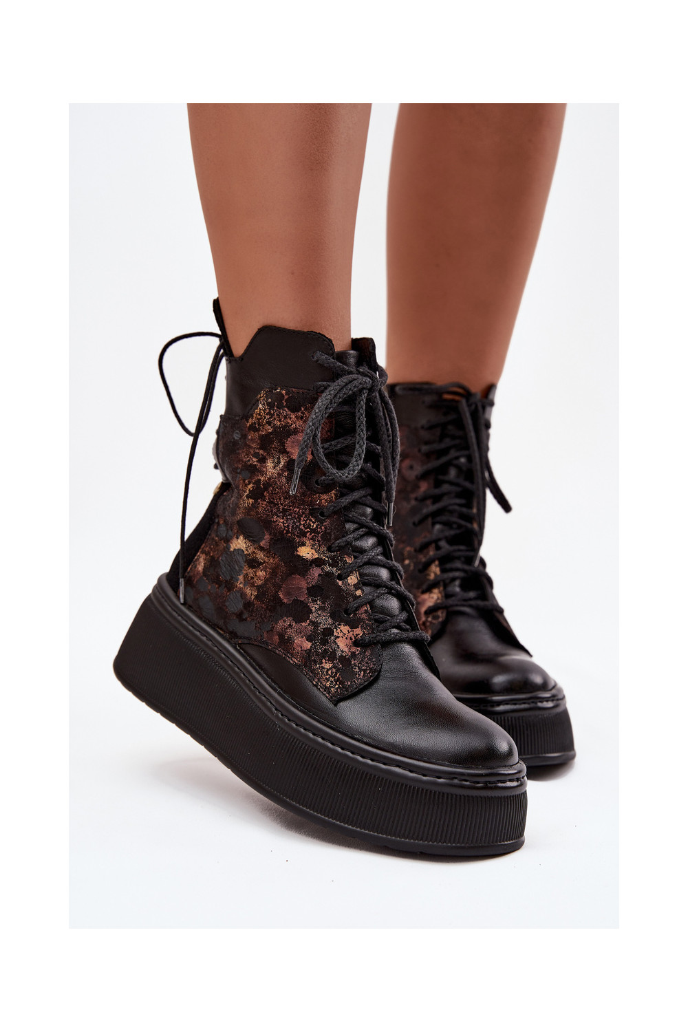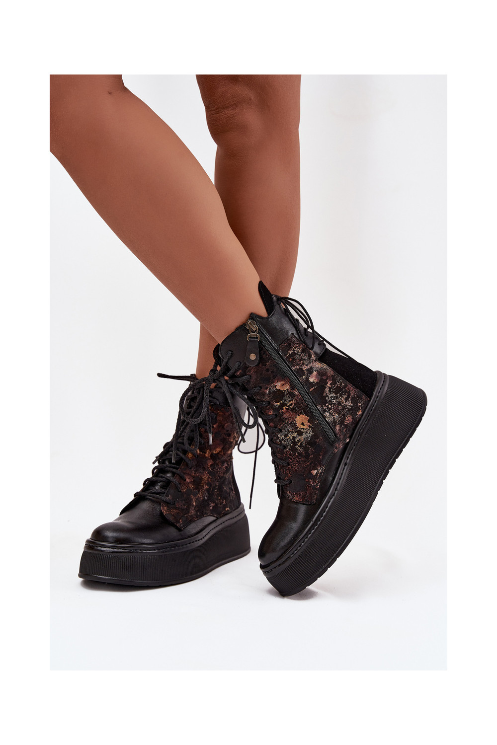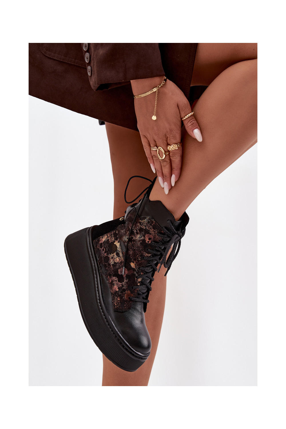 Nahast lühikesed saapad platvormiga Tai turiciejka 07086-01 musta värvi