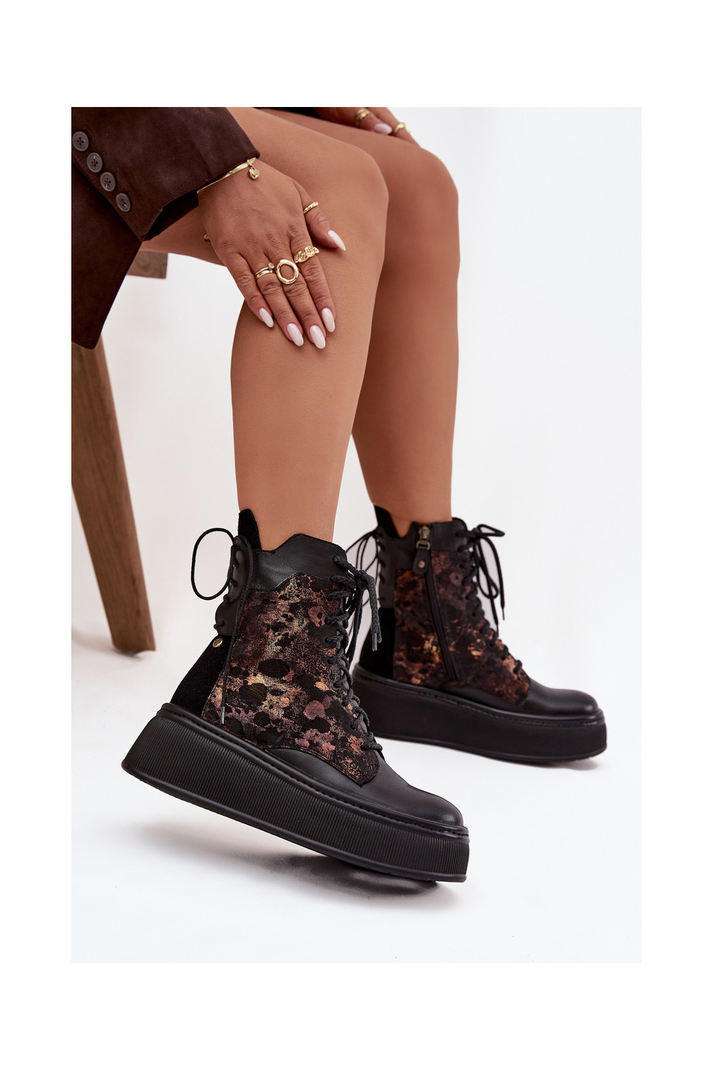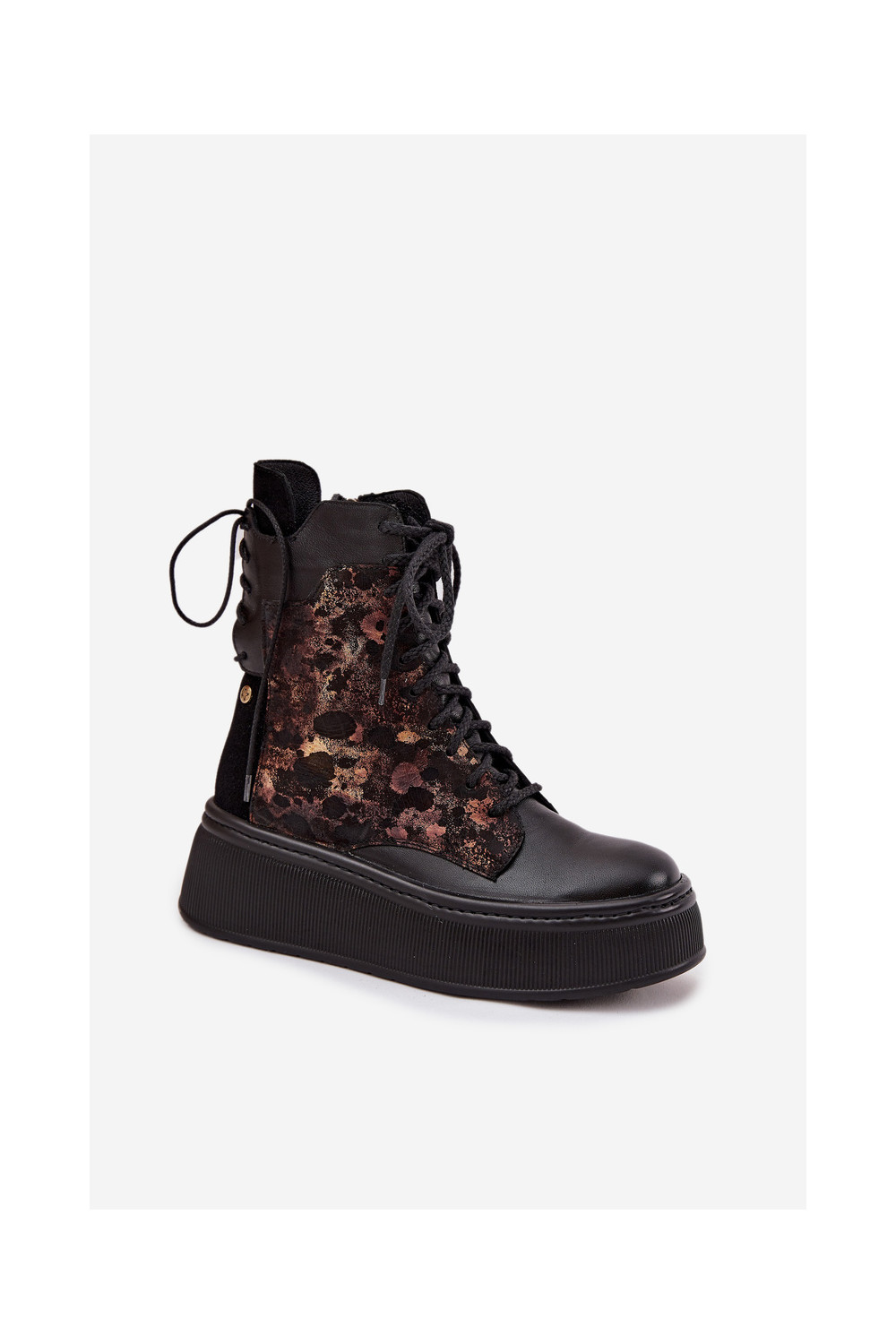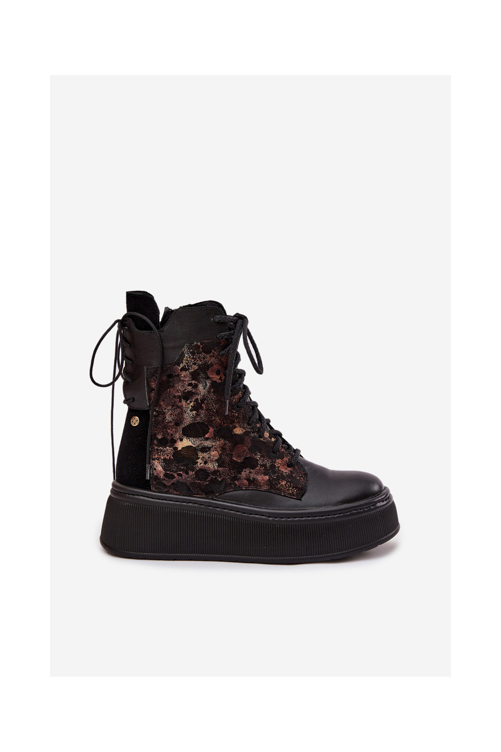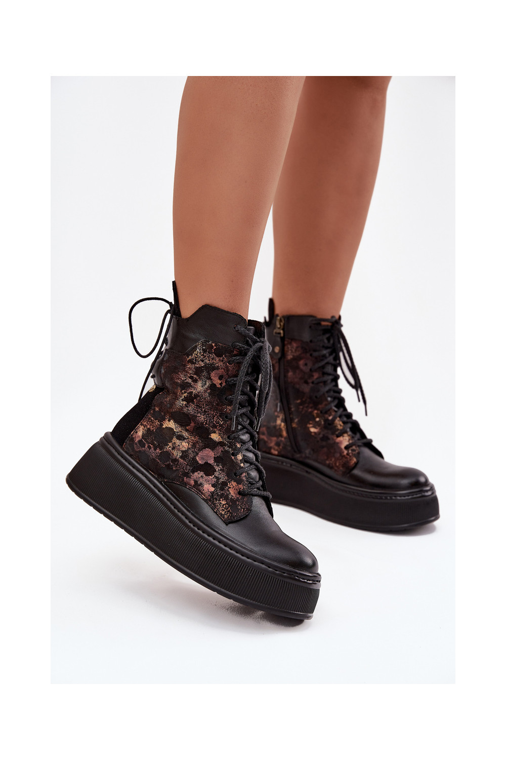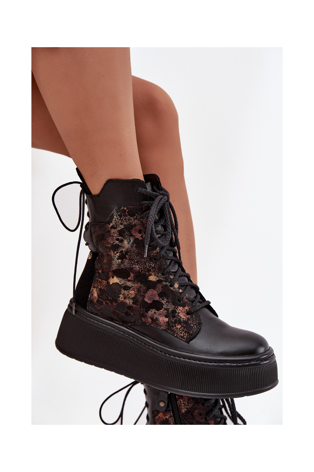 Nahast lühikesed saapad platvormiga Tai turiciejka 07086-01 musta värvi