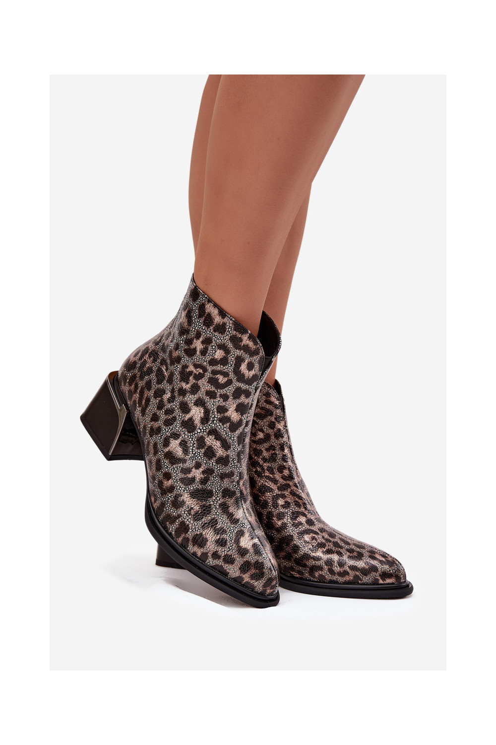 D&A CR52-622 mustad ja kuldsed nahast naiste saapad leopardimustriga, soojustatud