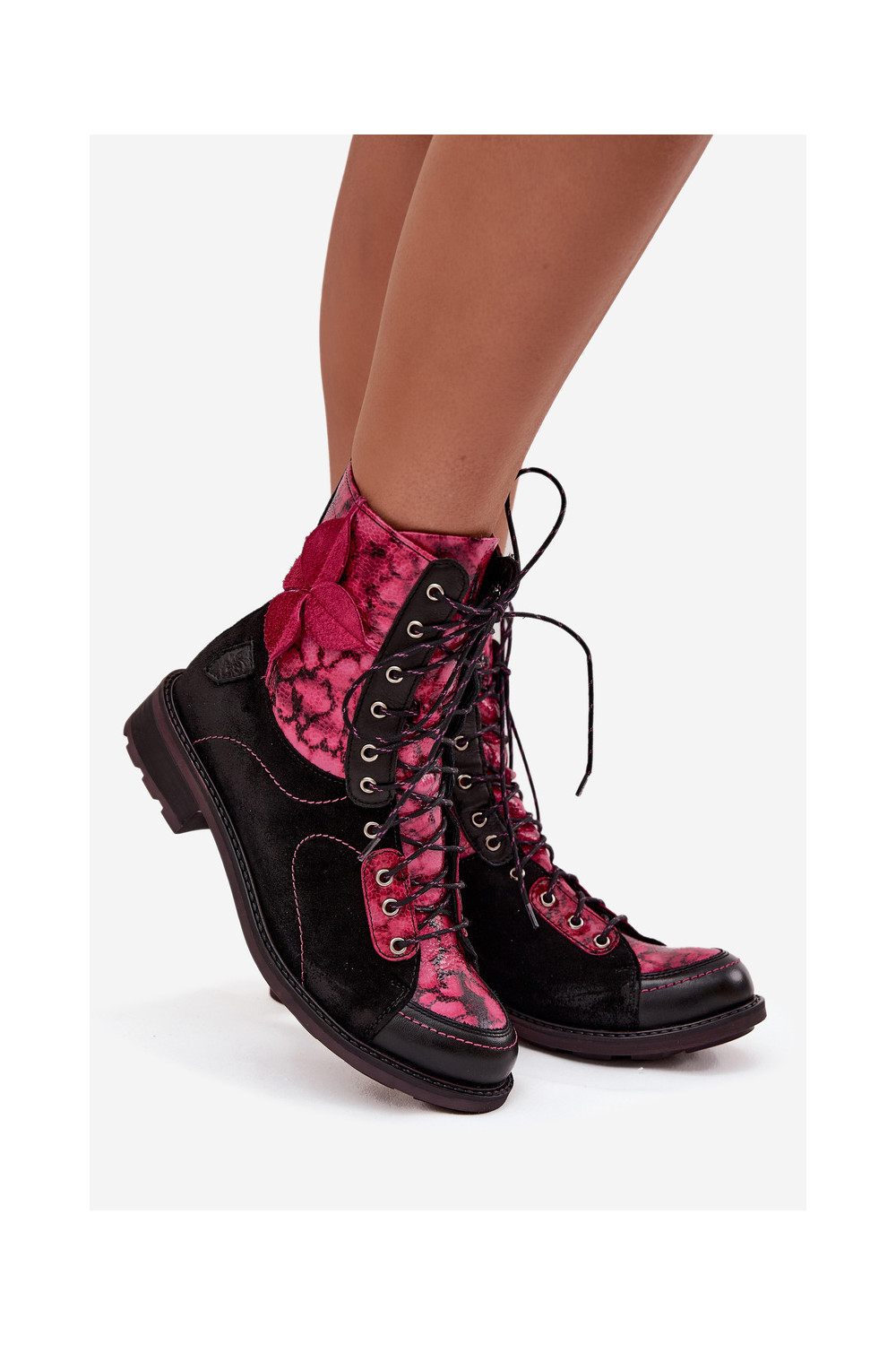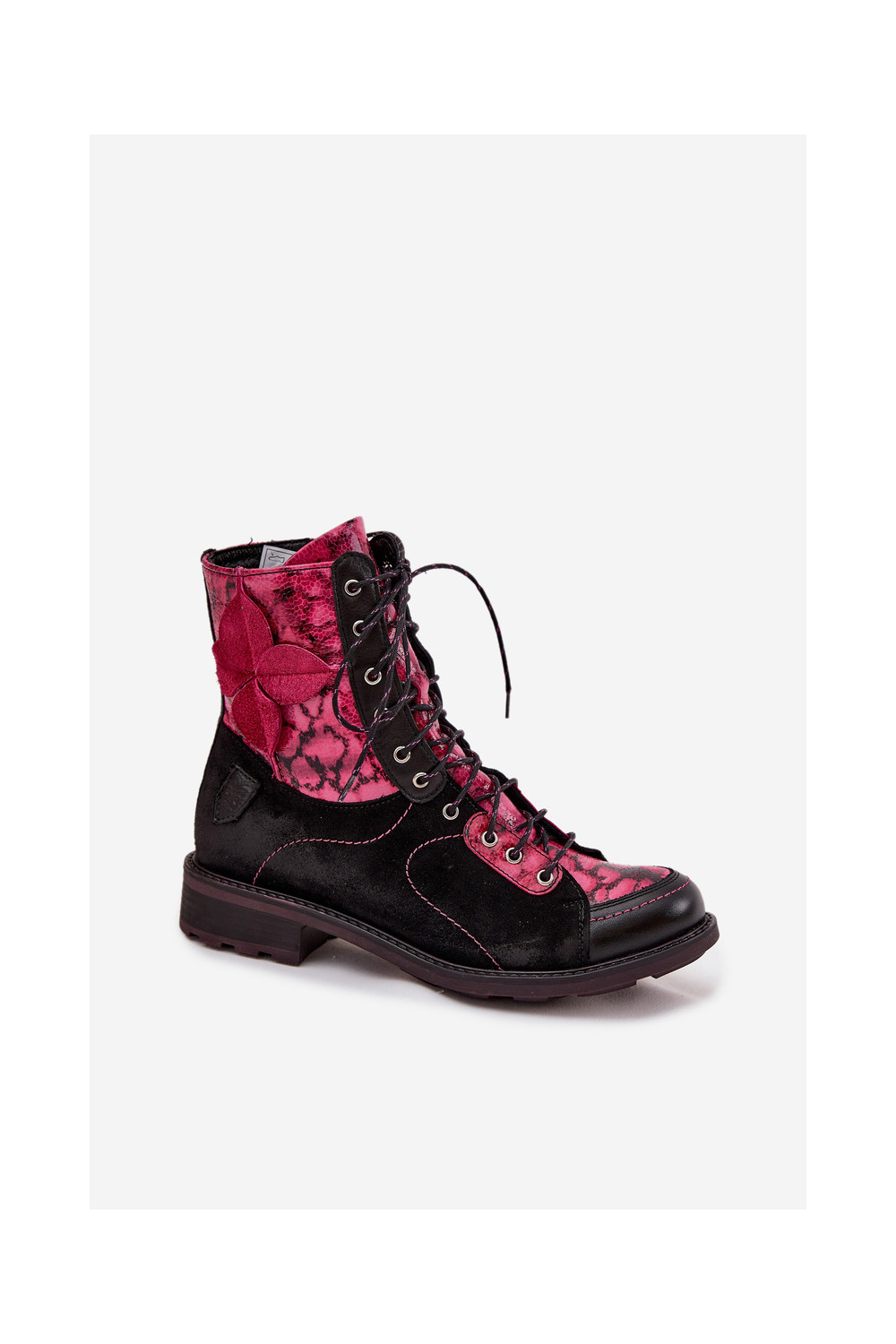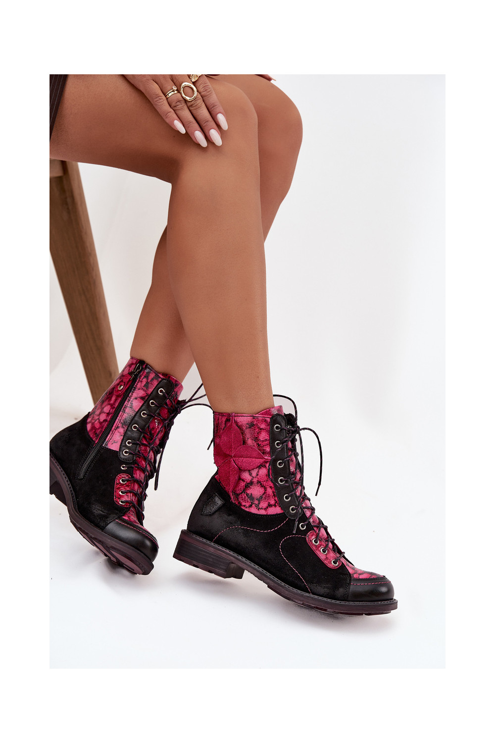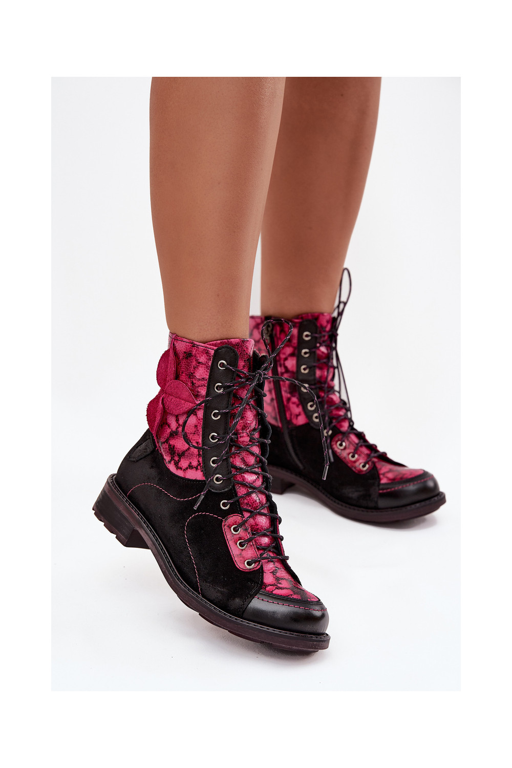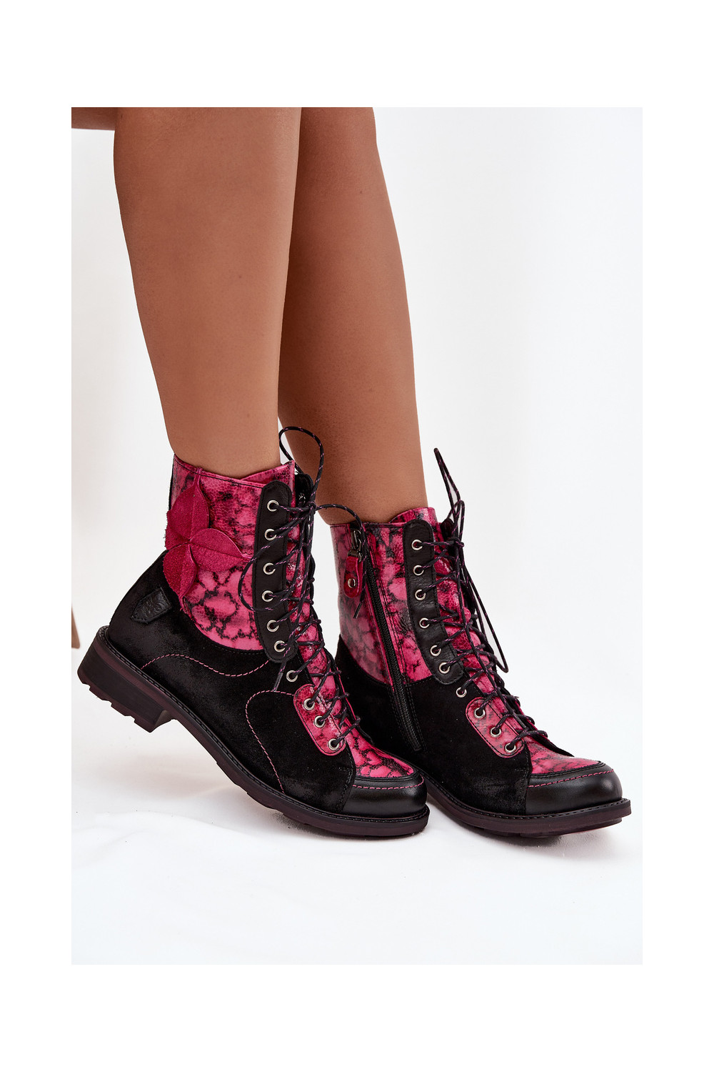 [Leather Women's Boots Made of Natural Leather Flat Heel Maciejka 07004-23 Black-Pink]