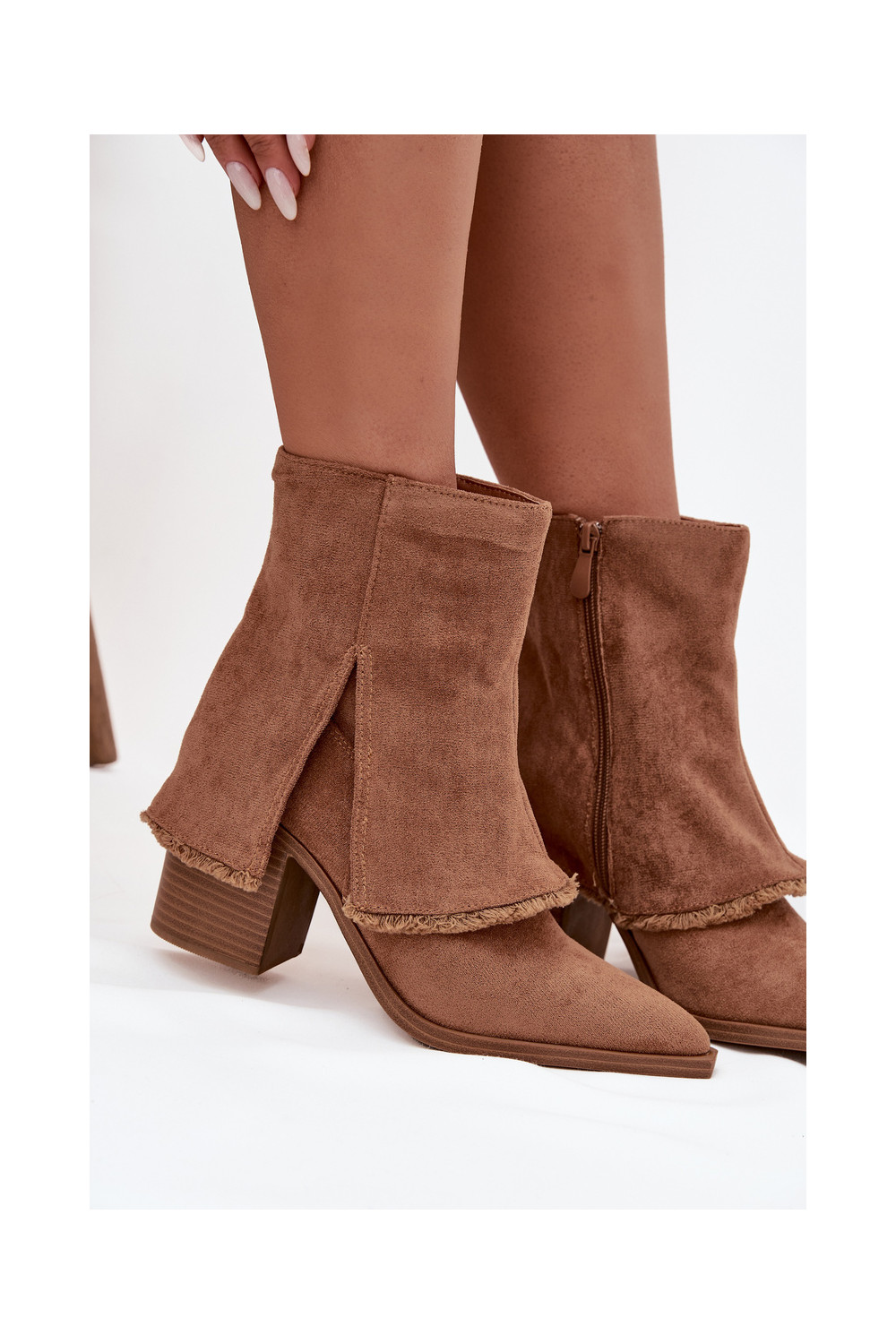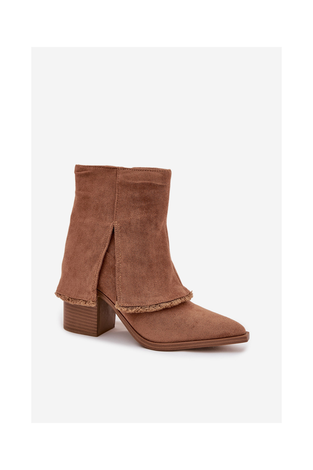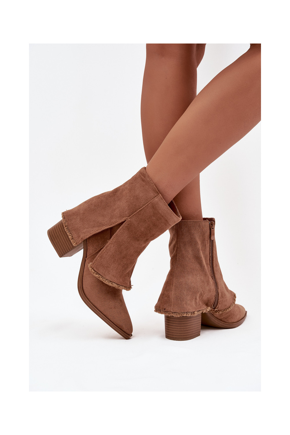 Women's ankle boots with heel and turned-up shaft light brown Idalia