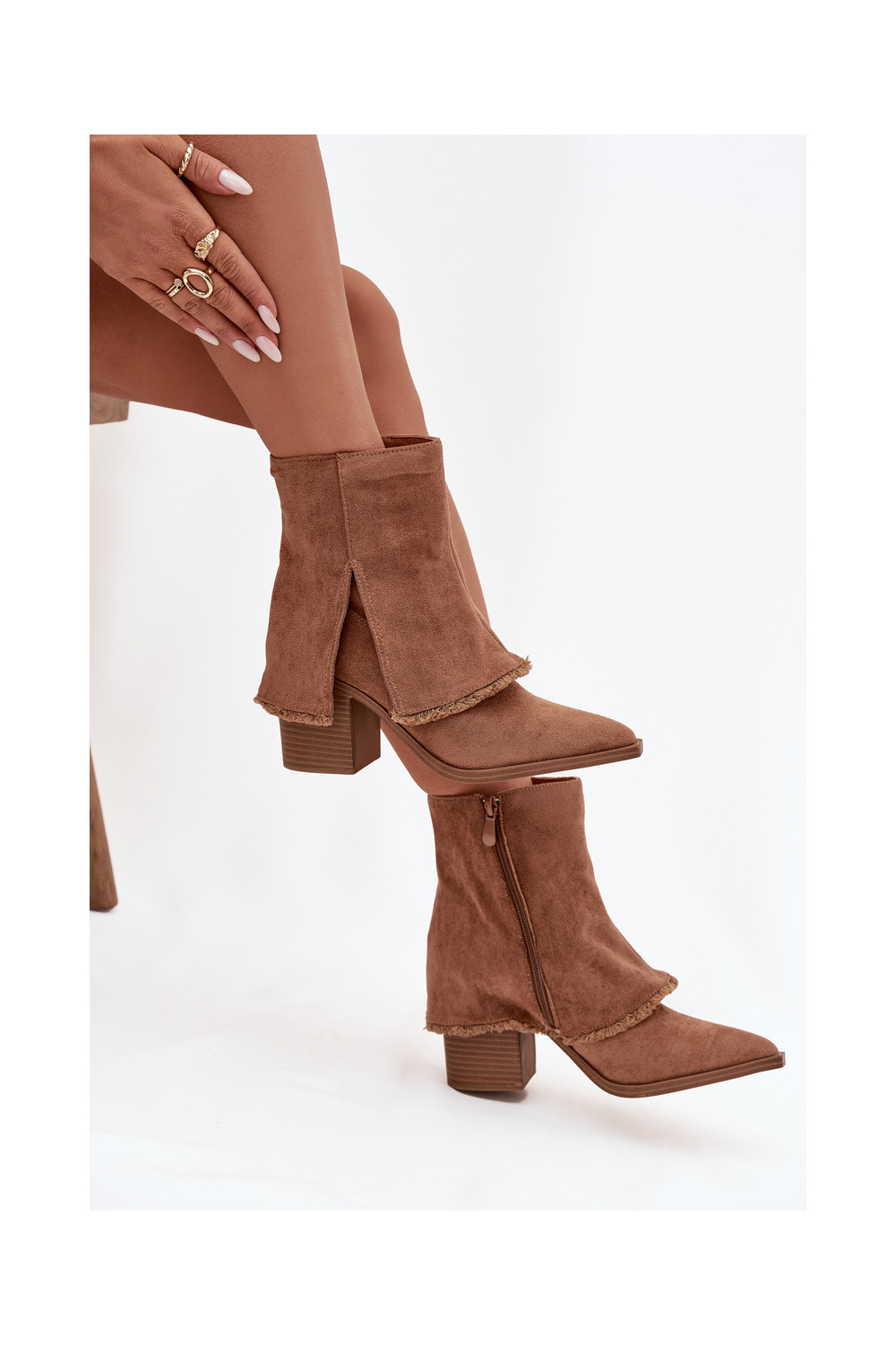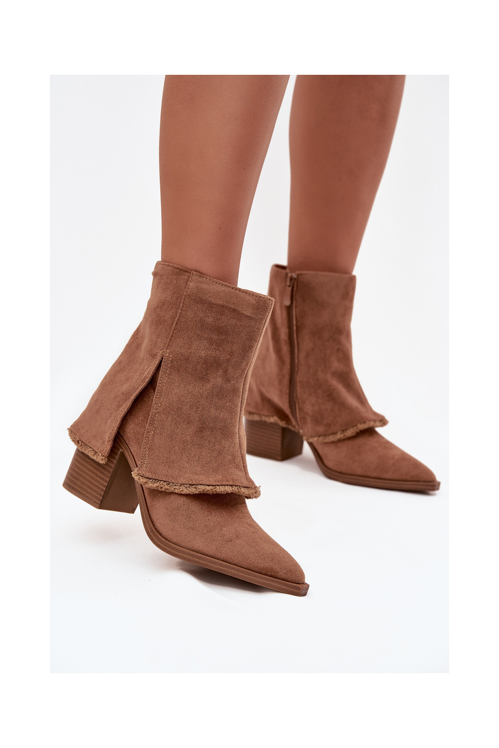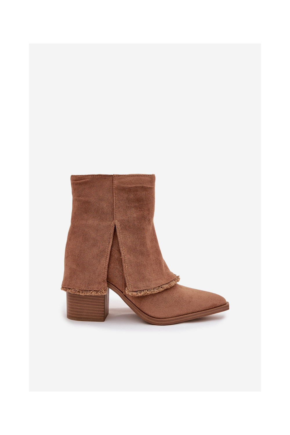 Women's ankle boots with heel and turned-up shaft light brown Idalia