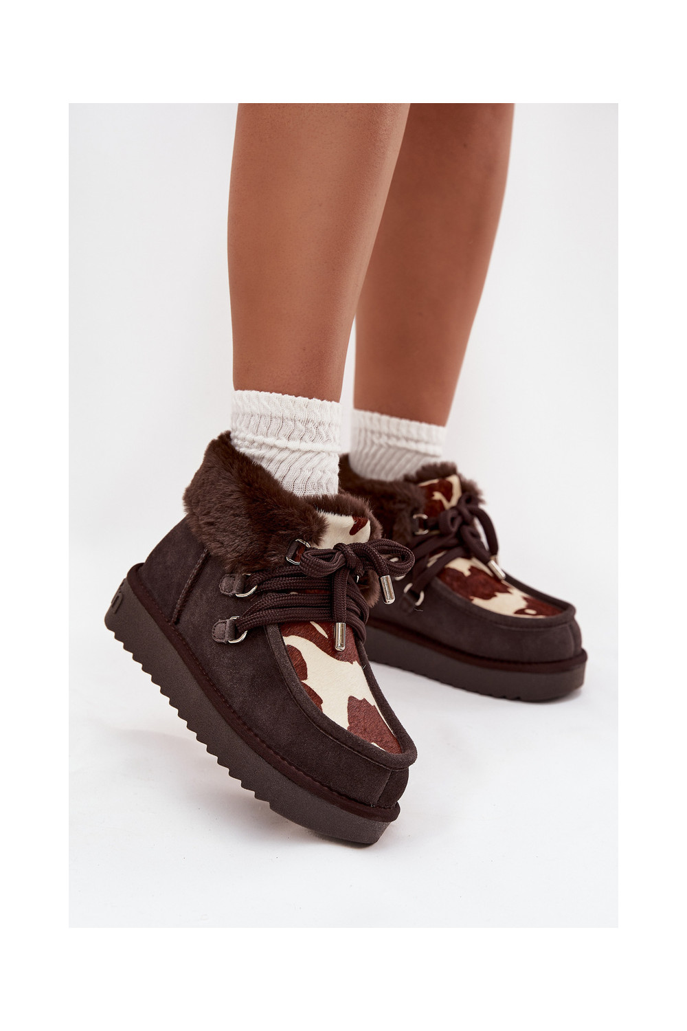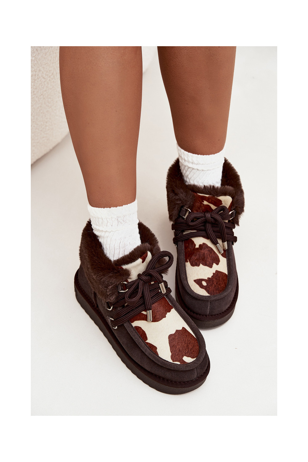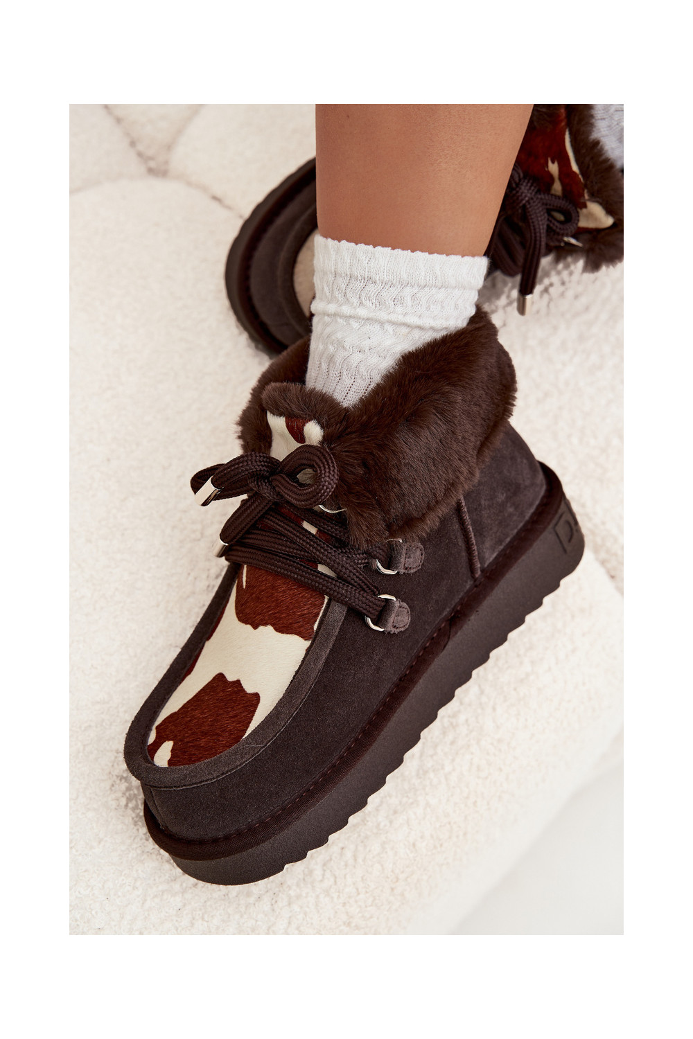 Women's Snow Boots Made of Natural Suede Patches D.Franklin DFSH375008 Chocolate