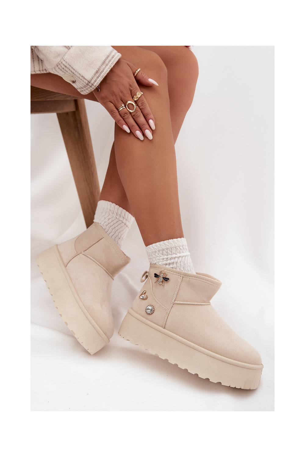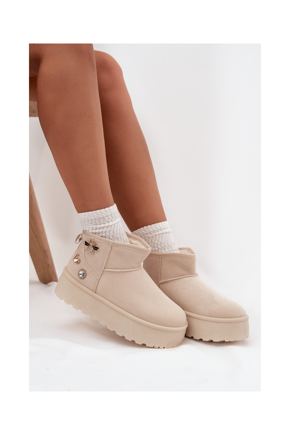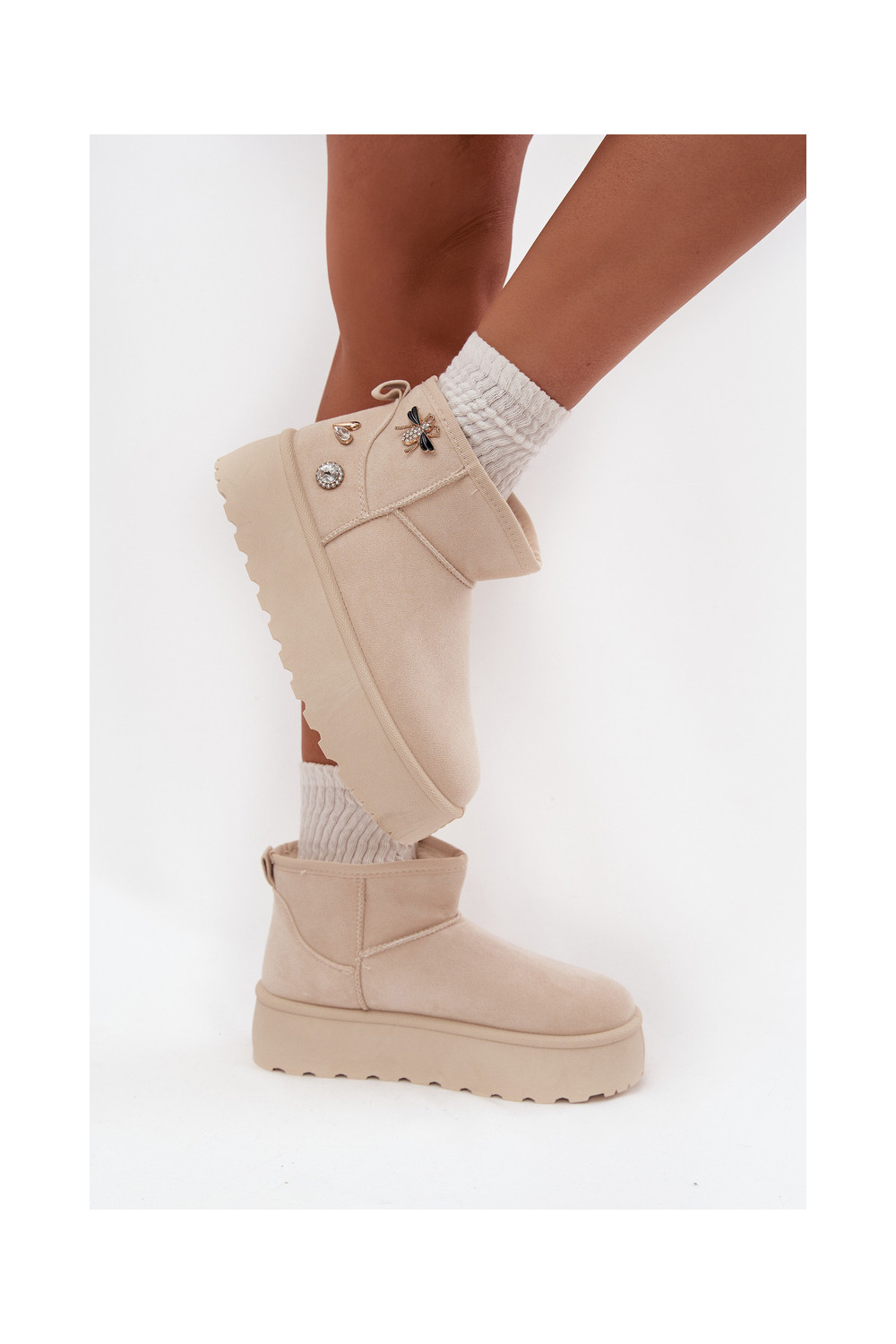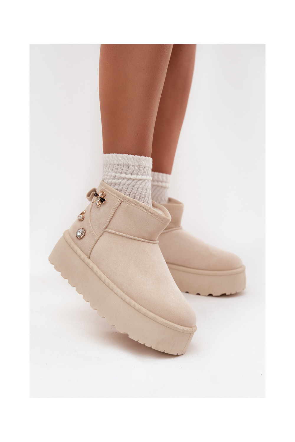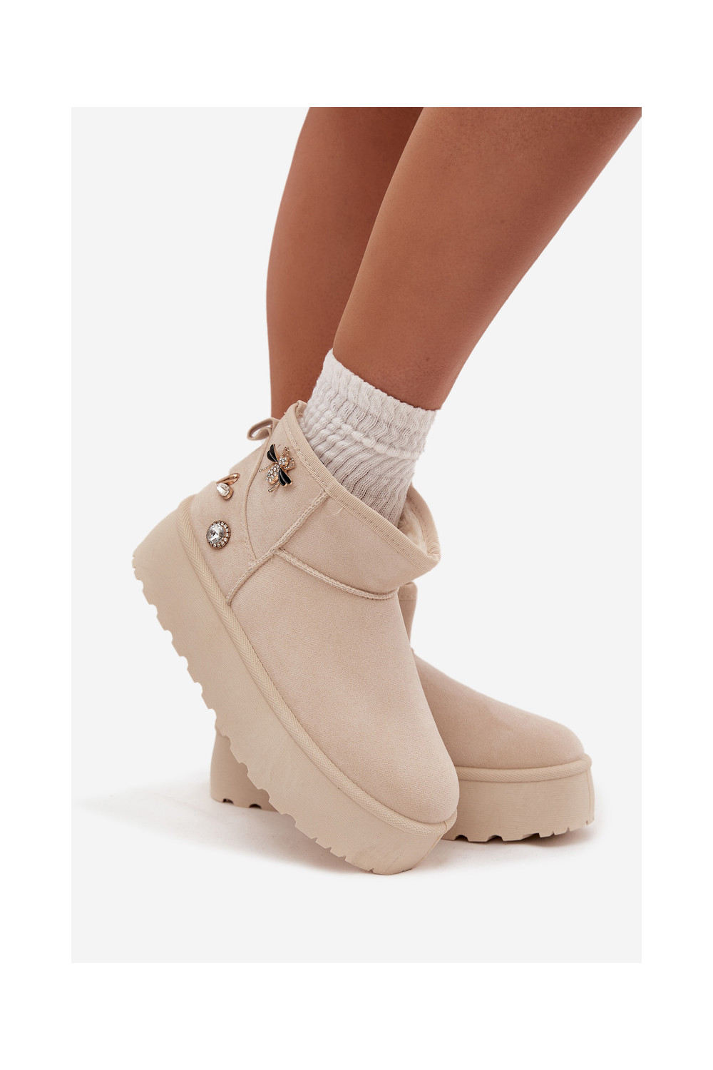 Naistemud saapad platvormiga ja konksudega elevandiluust värvi Tai turielle