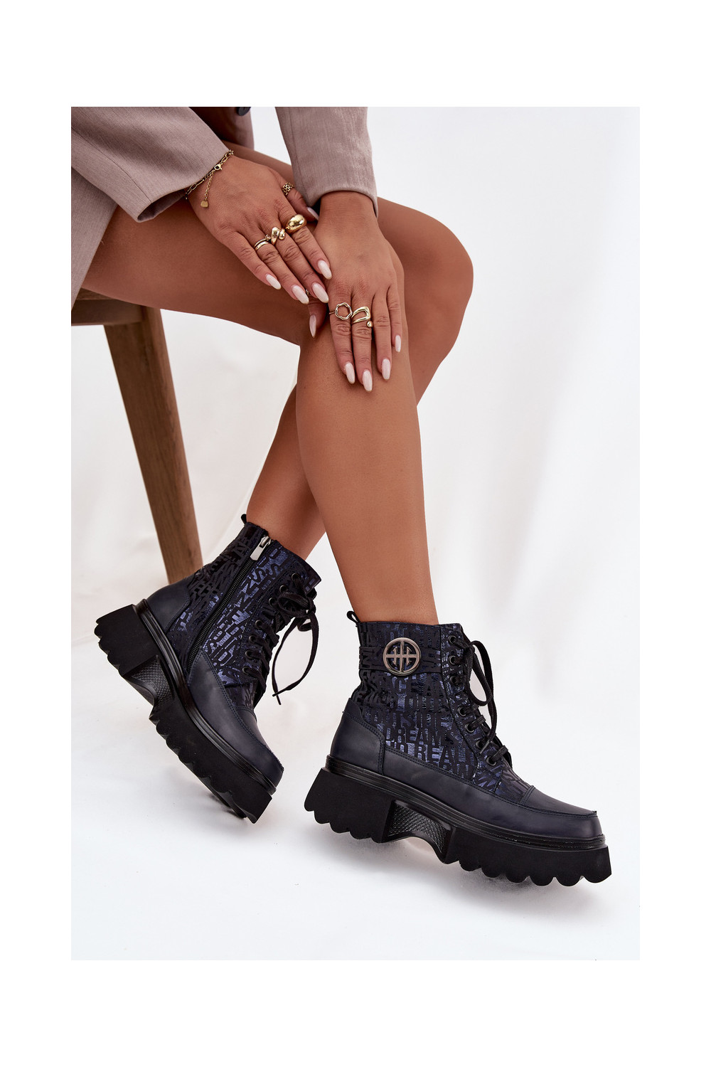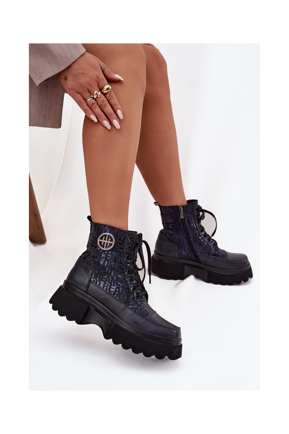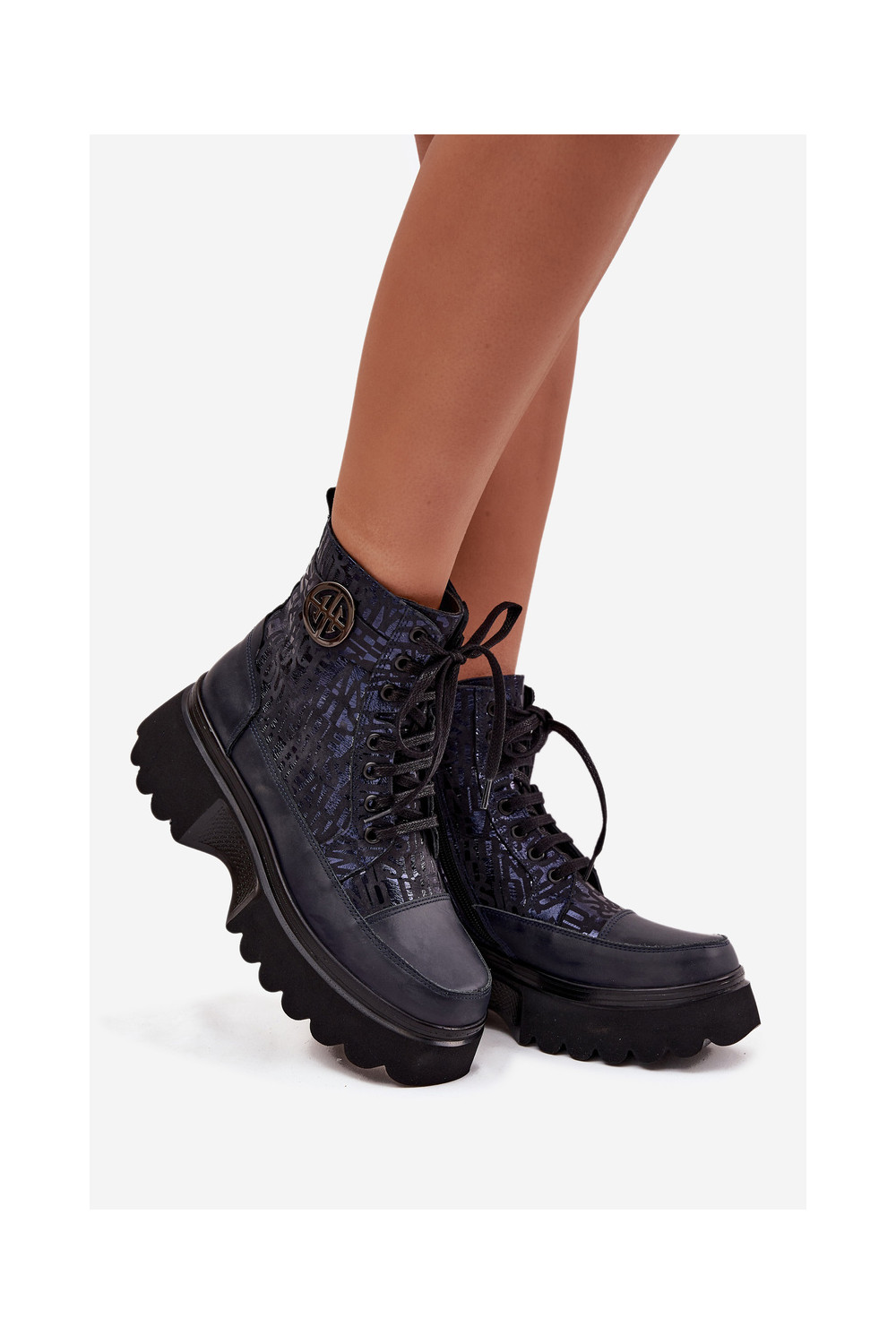 naiste saapad  platvormiga  I Ozdobnym Detalem Artiker 57C2271 tumesinist värvi