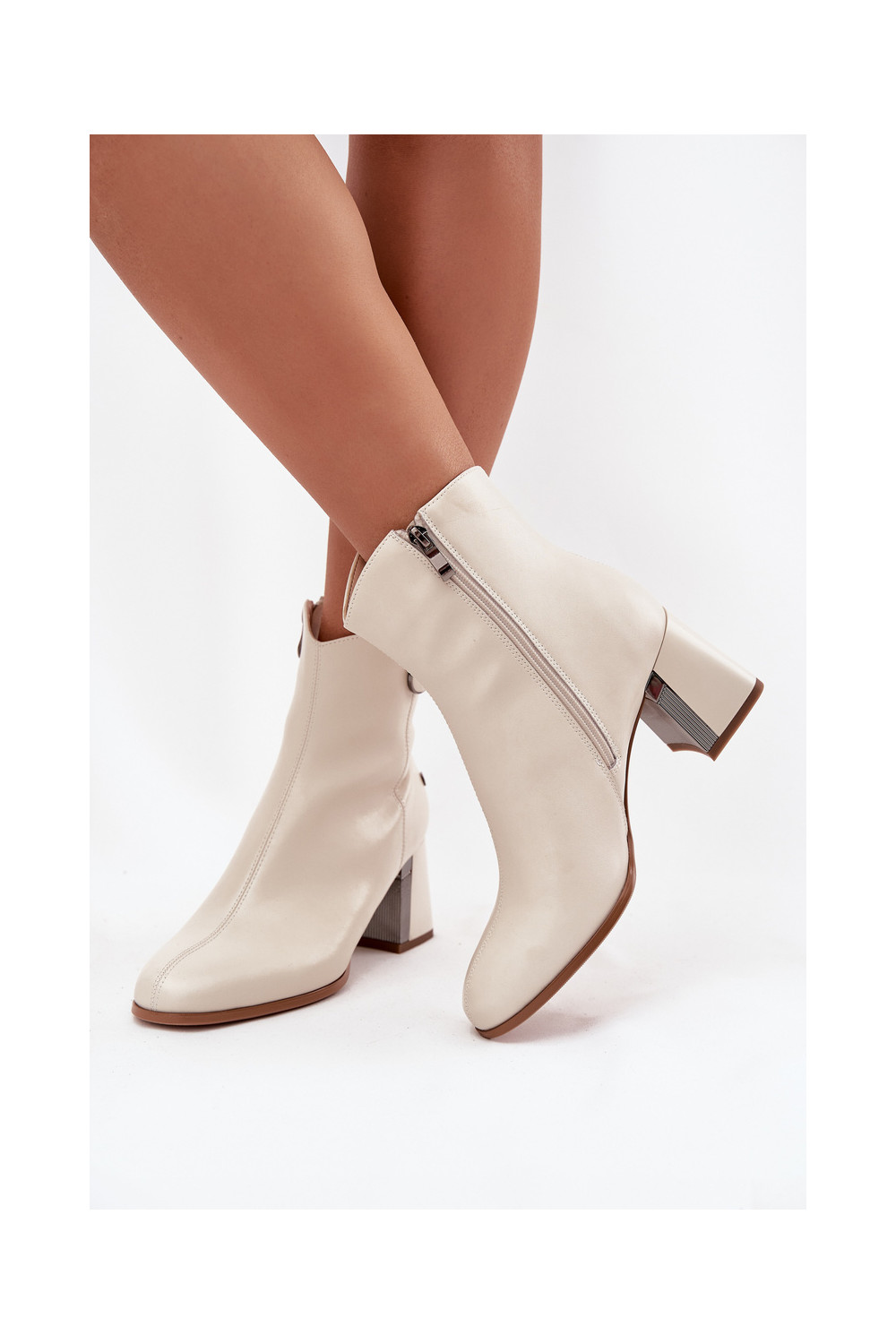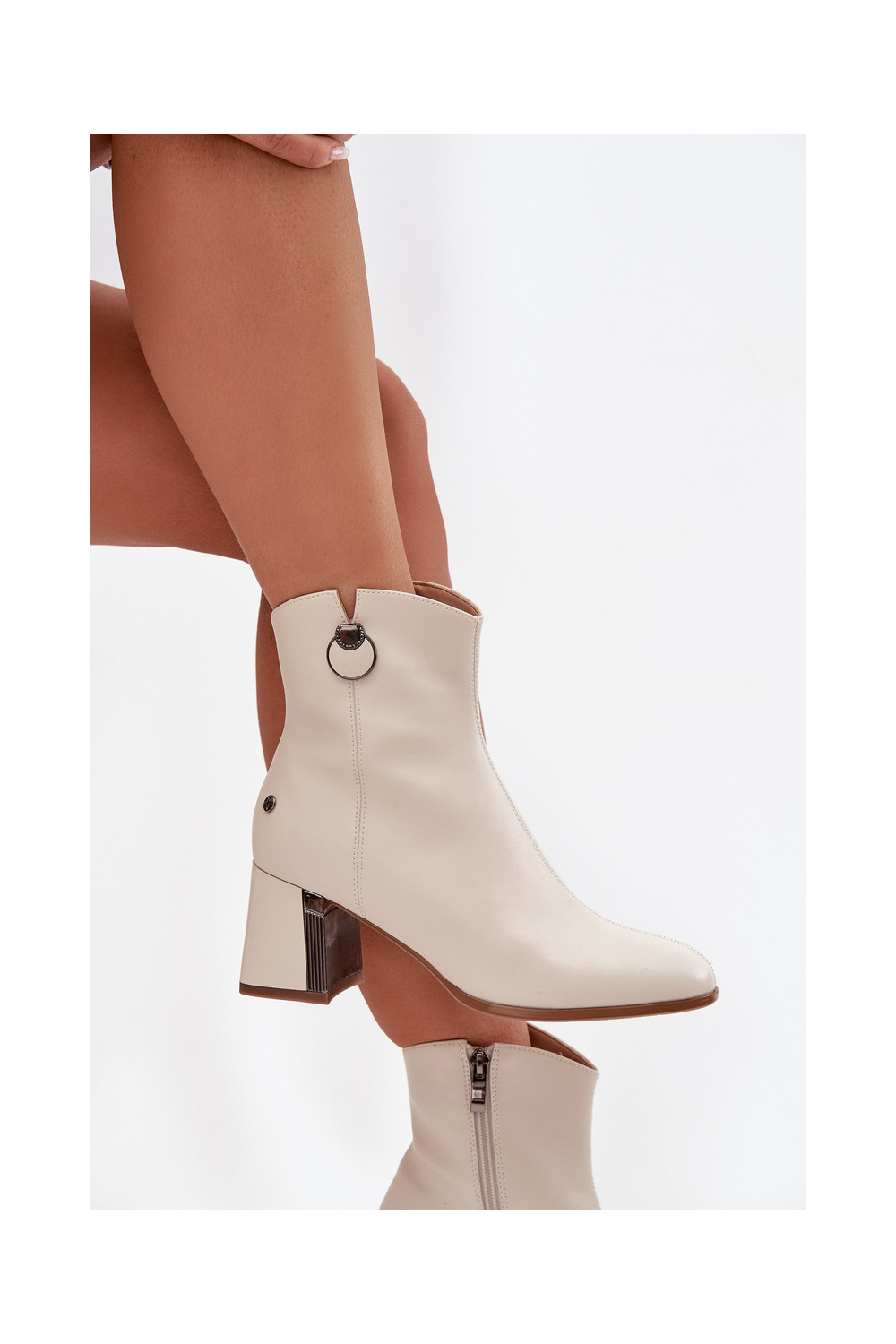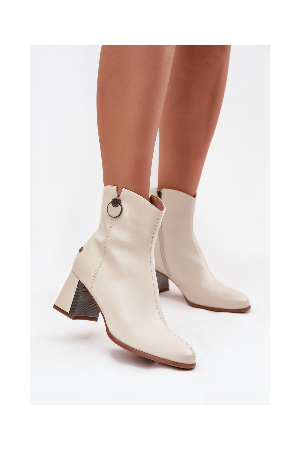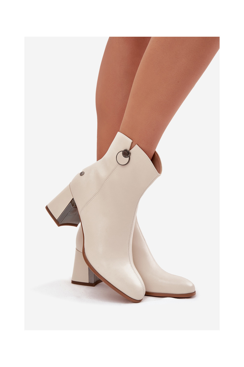 voodriga Pealiste poolsaapadPealturalnej Skóry kõrge jämeda kontsaga Sellel onciejka K7203-04 beeži värvi
