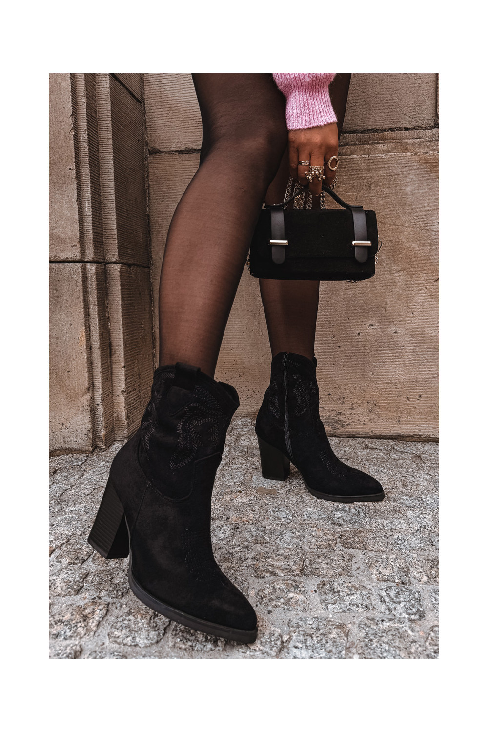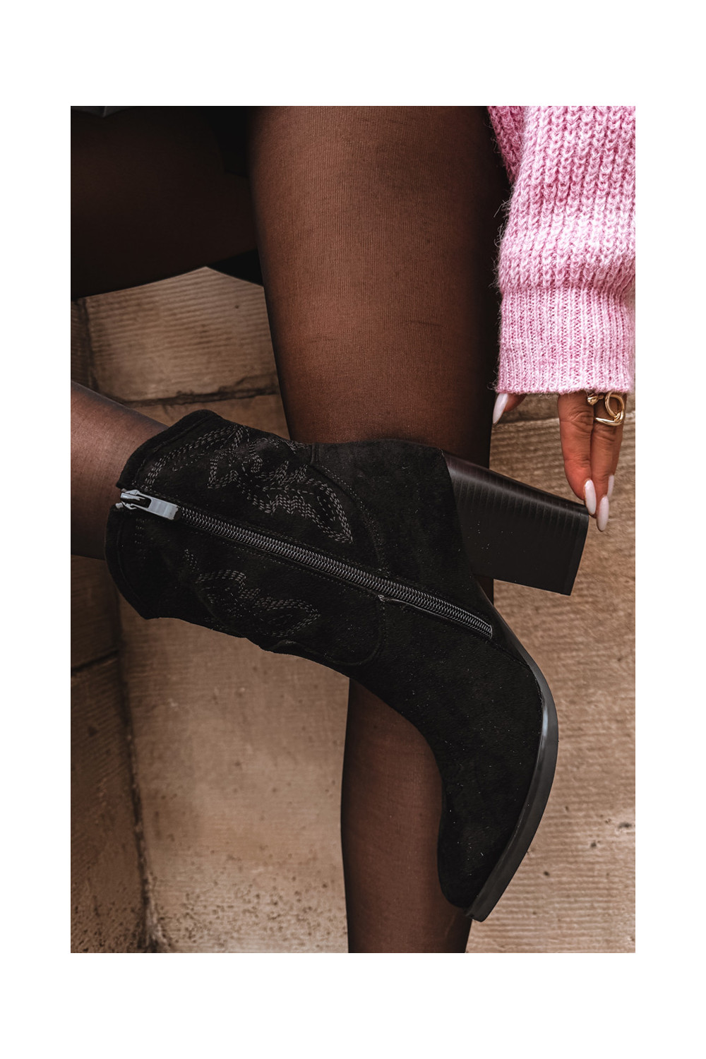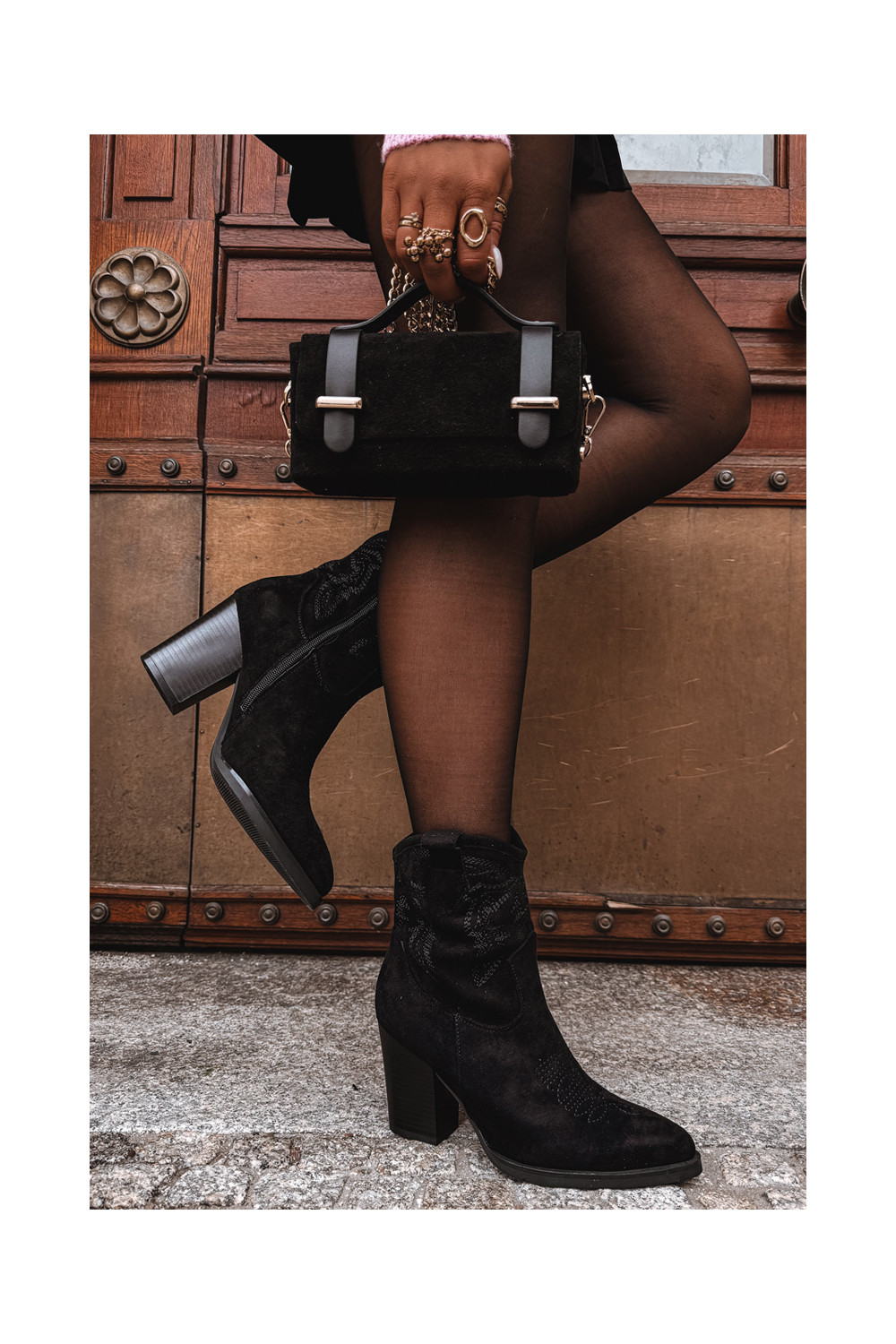 kauboistiilis saapad Pealiste omad kõrge jämeda kontsaga Eco Suedeosissee msuud Carissa