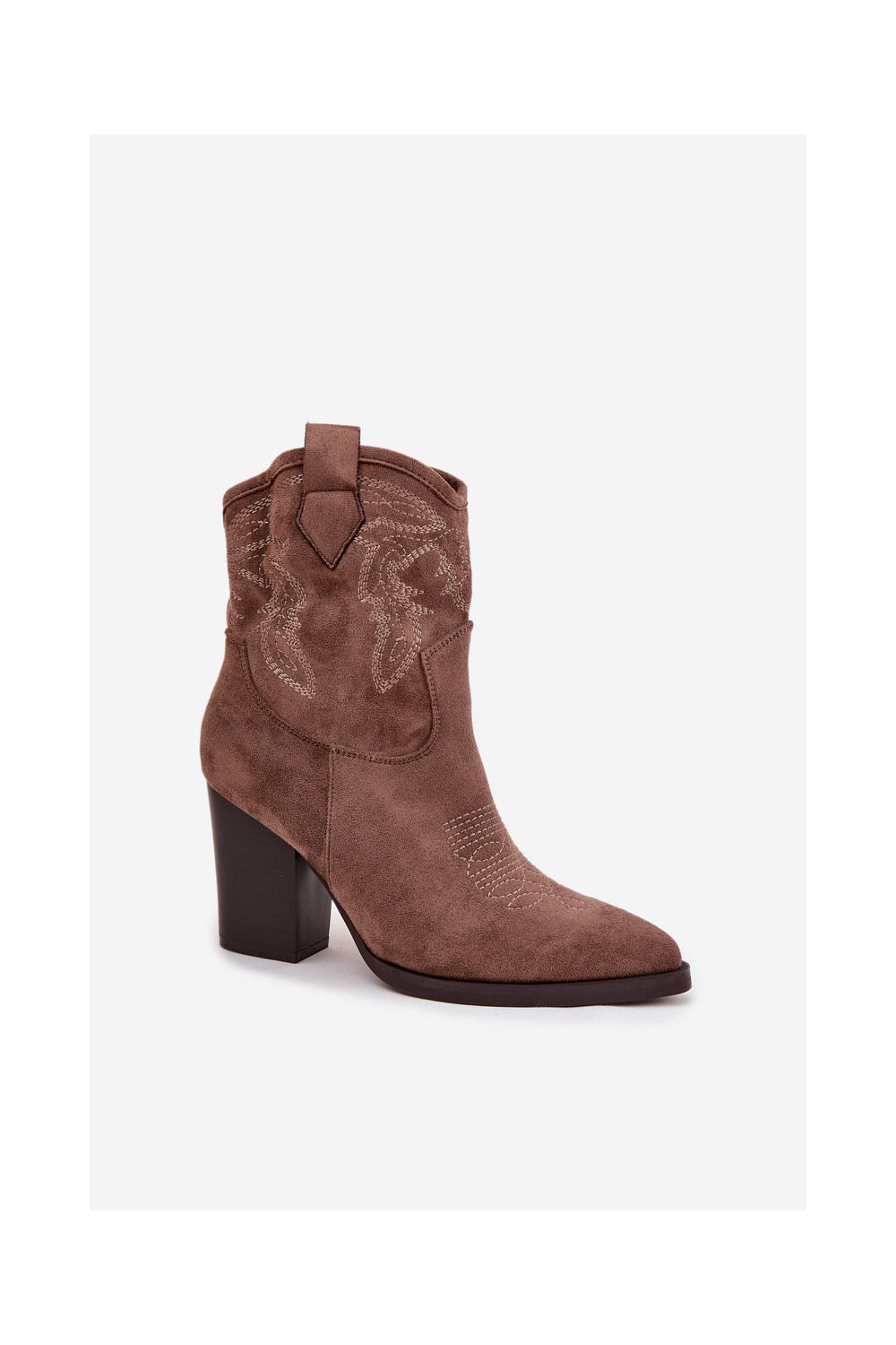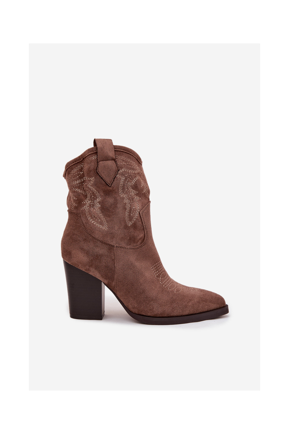 kauboistiilis saapad Pealiste omad kõrge jämeda kontsaga Eco Suedeosissee beeži värvi Carissa