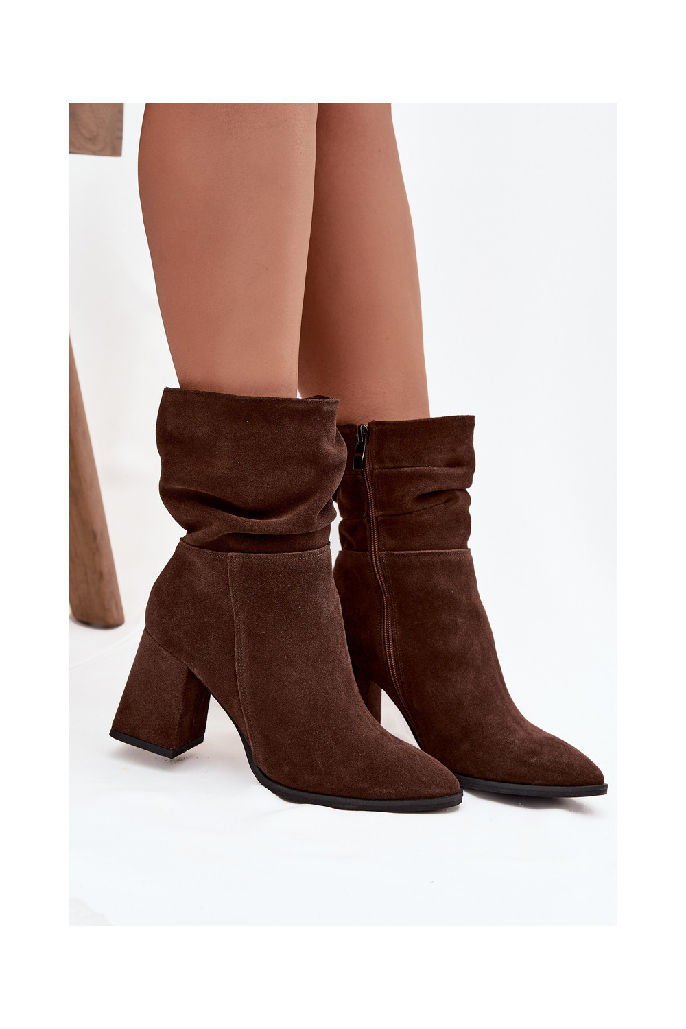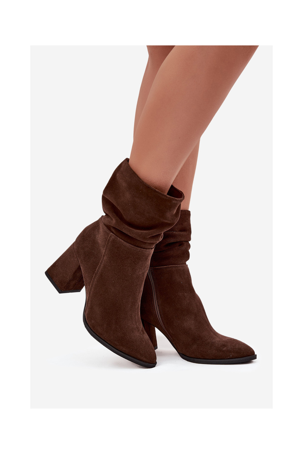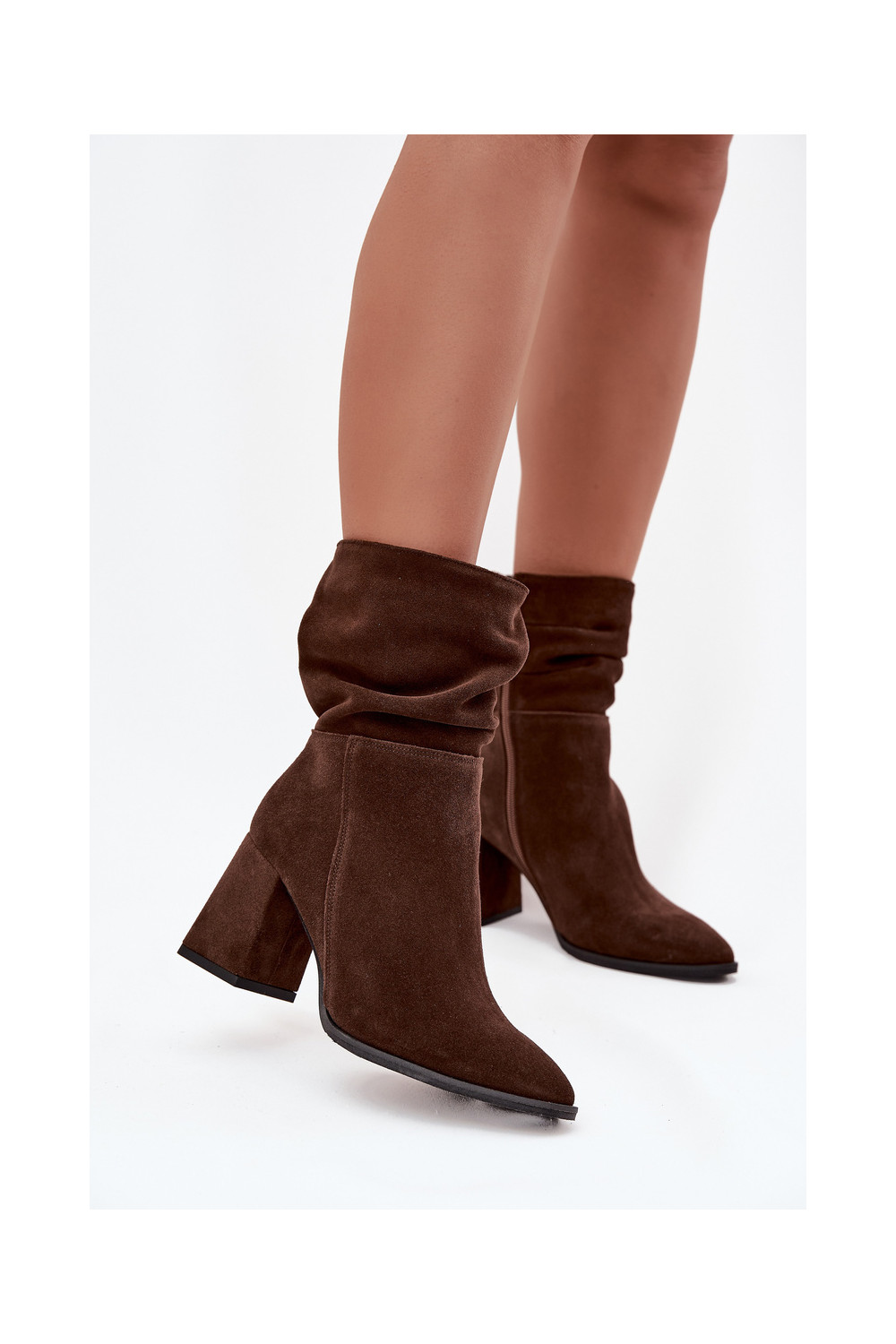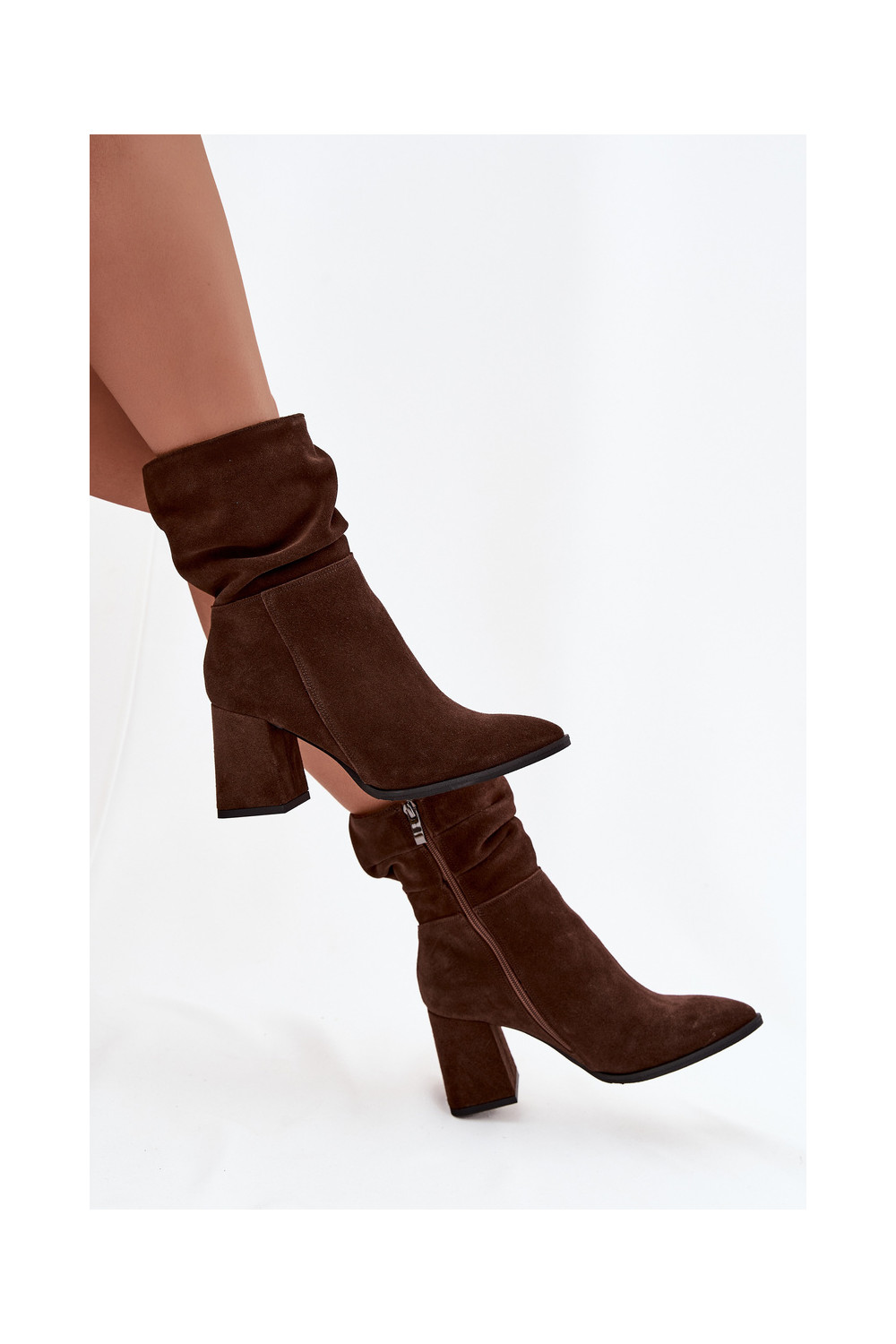 Naiste poolsaapad Z Naturalnego Zamszu voodriga kõrge jämeda kontsaga Zazoo 4216 Czekoladowe