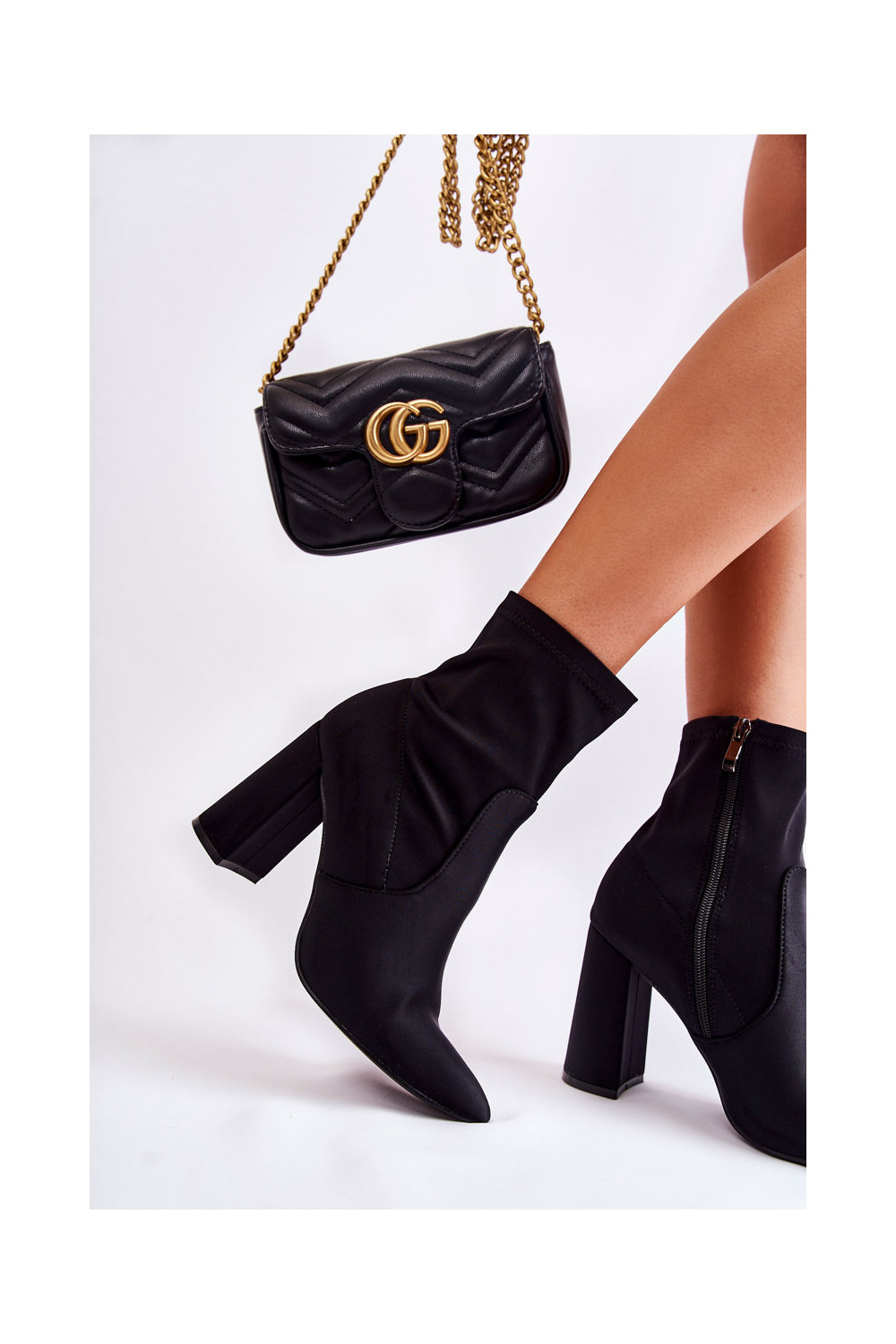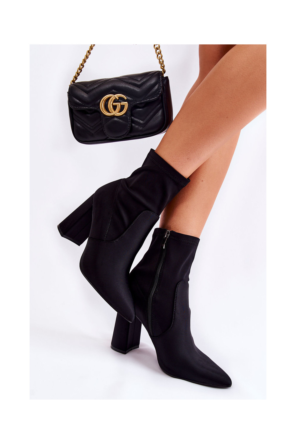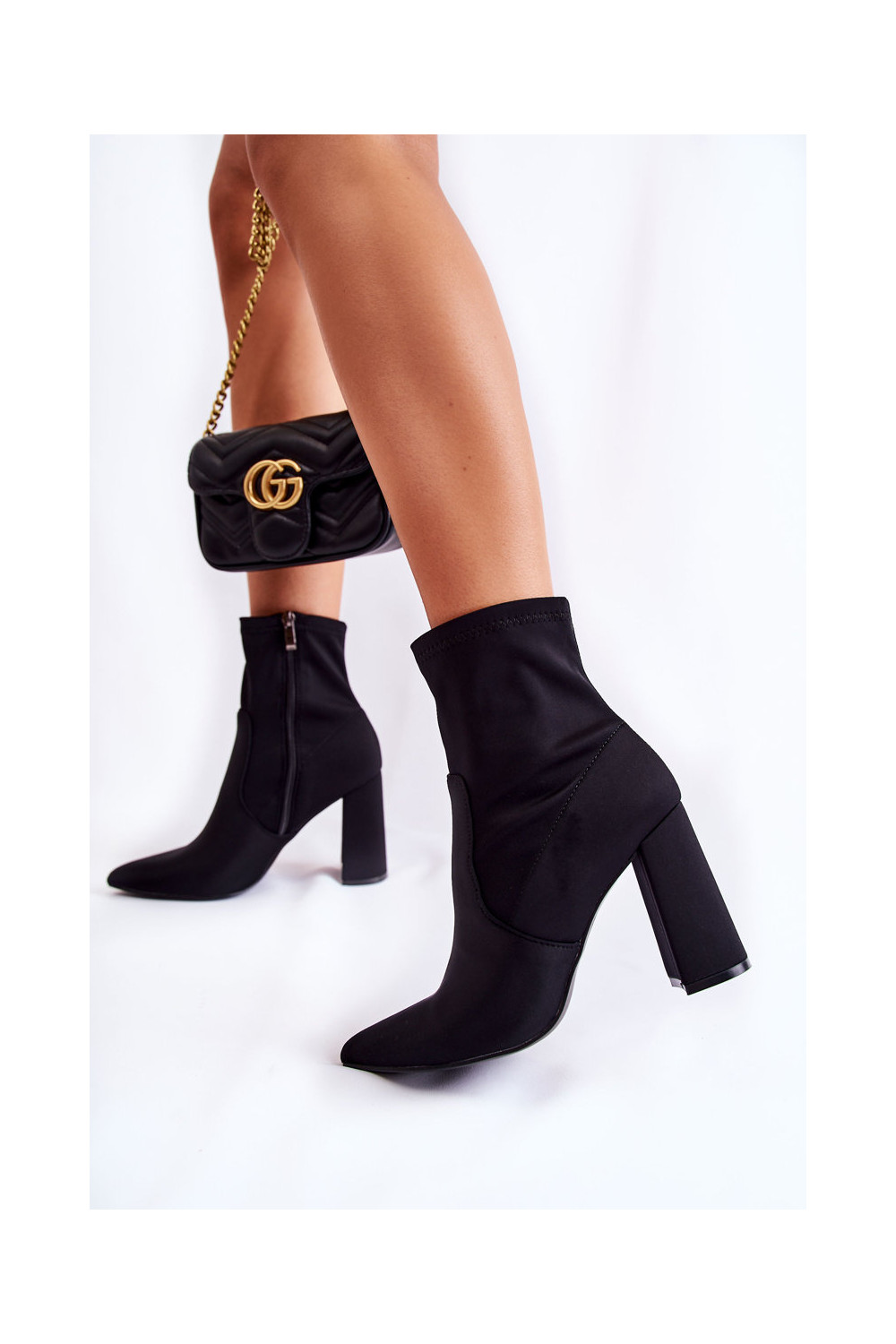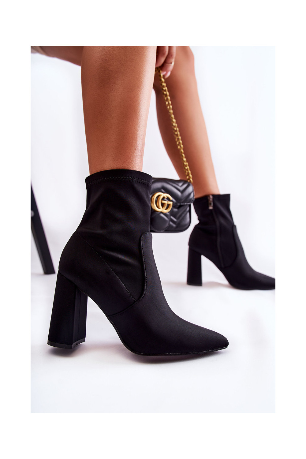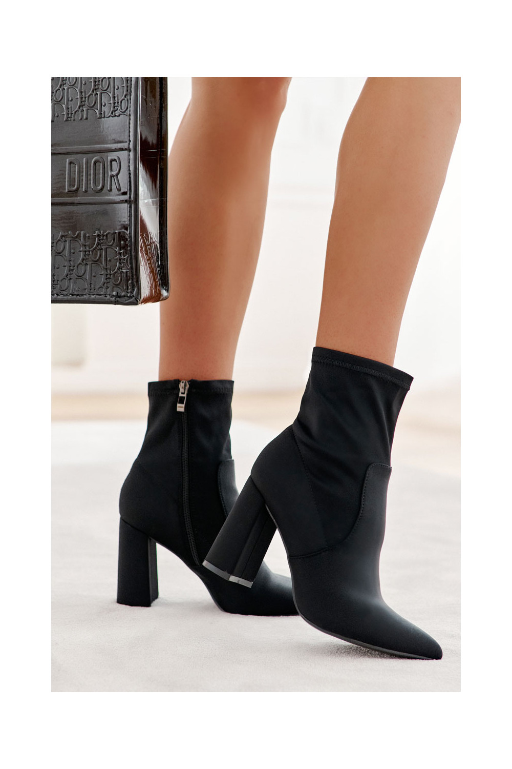 Naiste poolsaapad Riidest kõrge jämeda kontsaga Must Amile