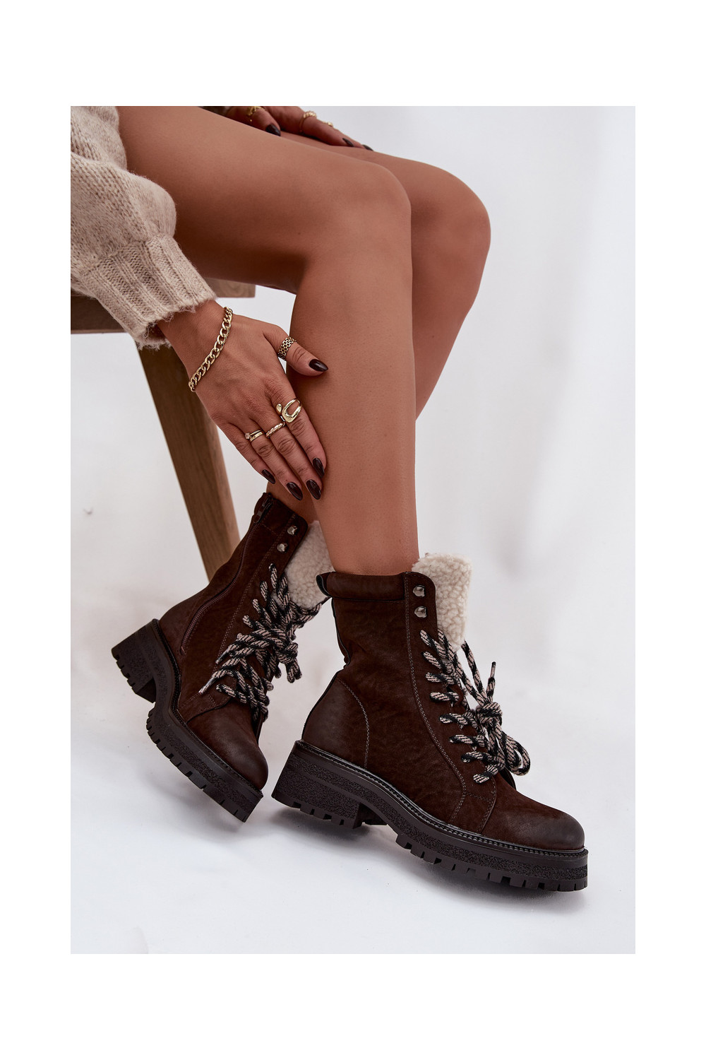 Naiste poolsaapad jalanõud eko-nahast Czekoladowe Bellora