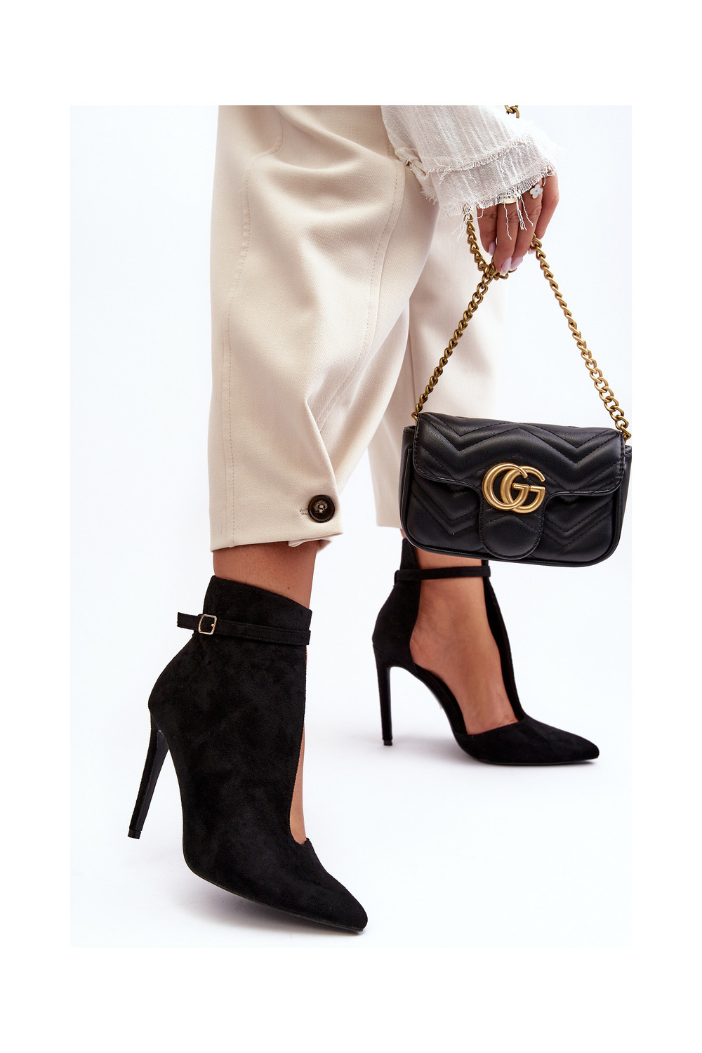 Seemisnahast kingad kõrge jämeda kontsaga Must Amalundi