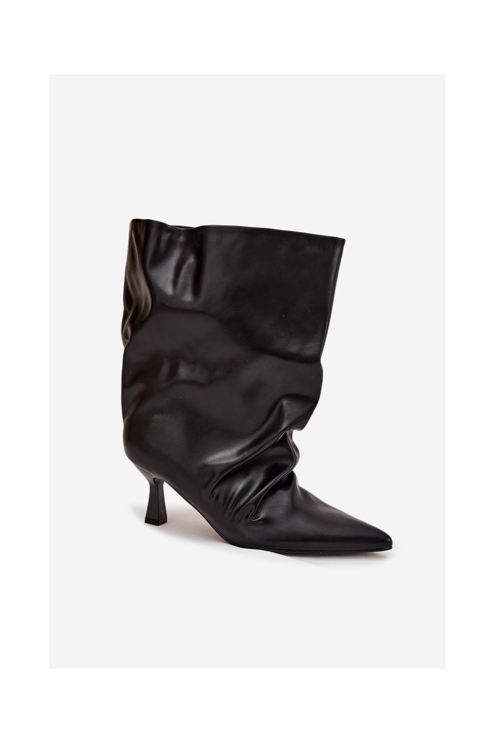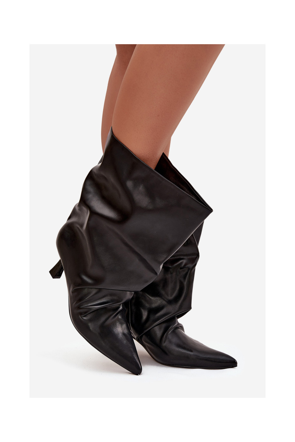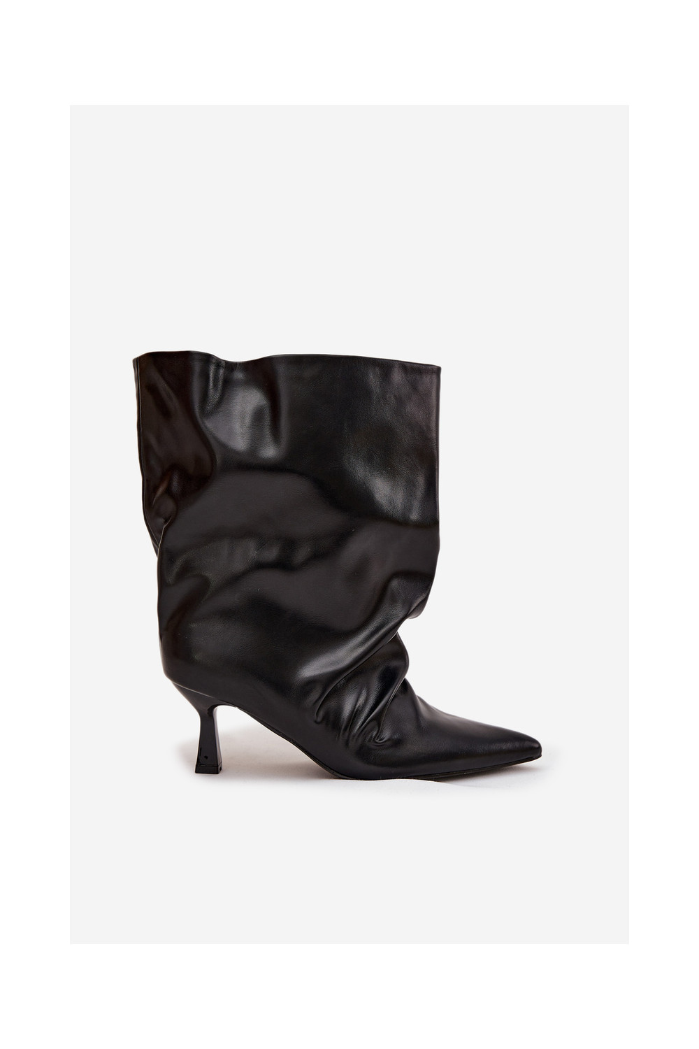 Naiste poolsaapad kõrge jämeda kontsaga kortsus tallaga Must Inarisse