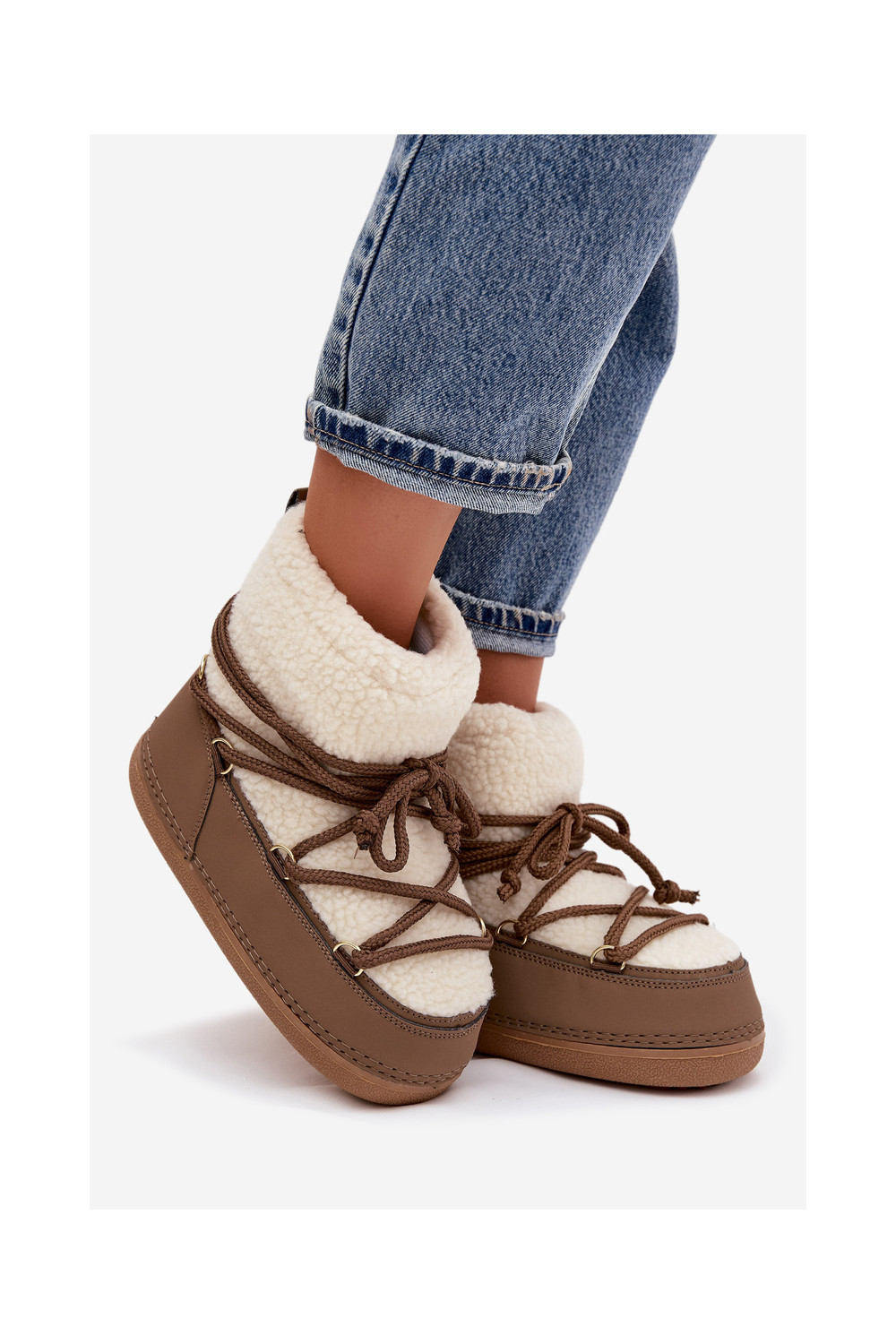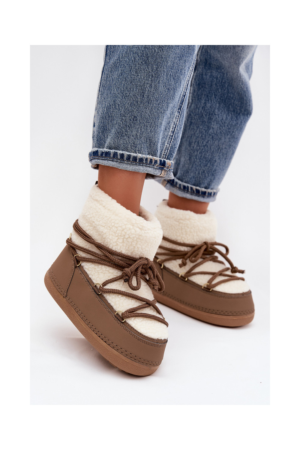 nööpidega lumesaapad Pealiste omad karusnahaga Typu Baranek nööritavad beeži värvi Belira