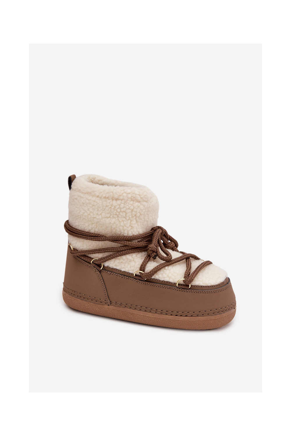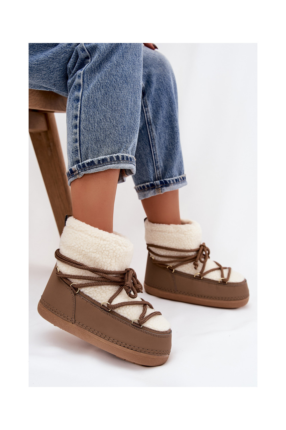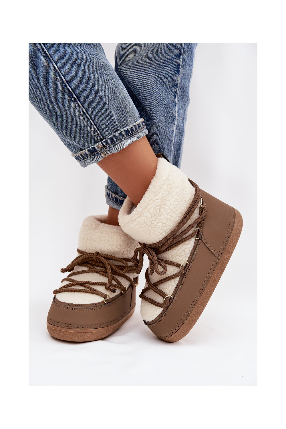 Women's Snow Boots With Sheepskin Lining Lace-up Dark Beige Belira