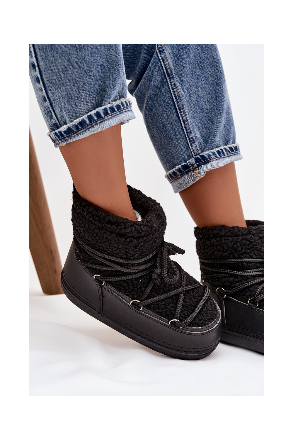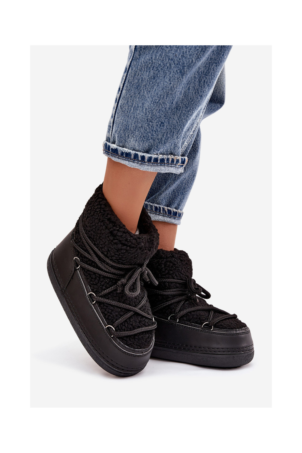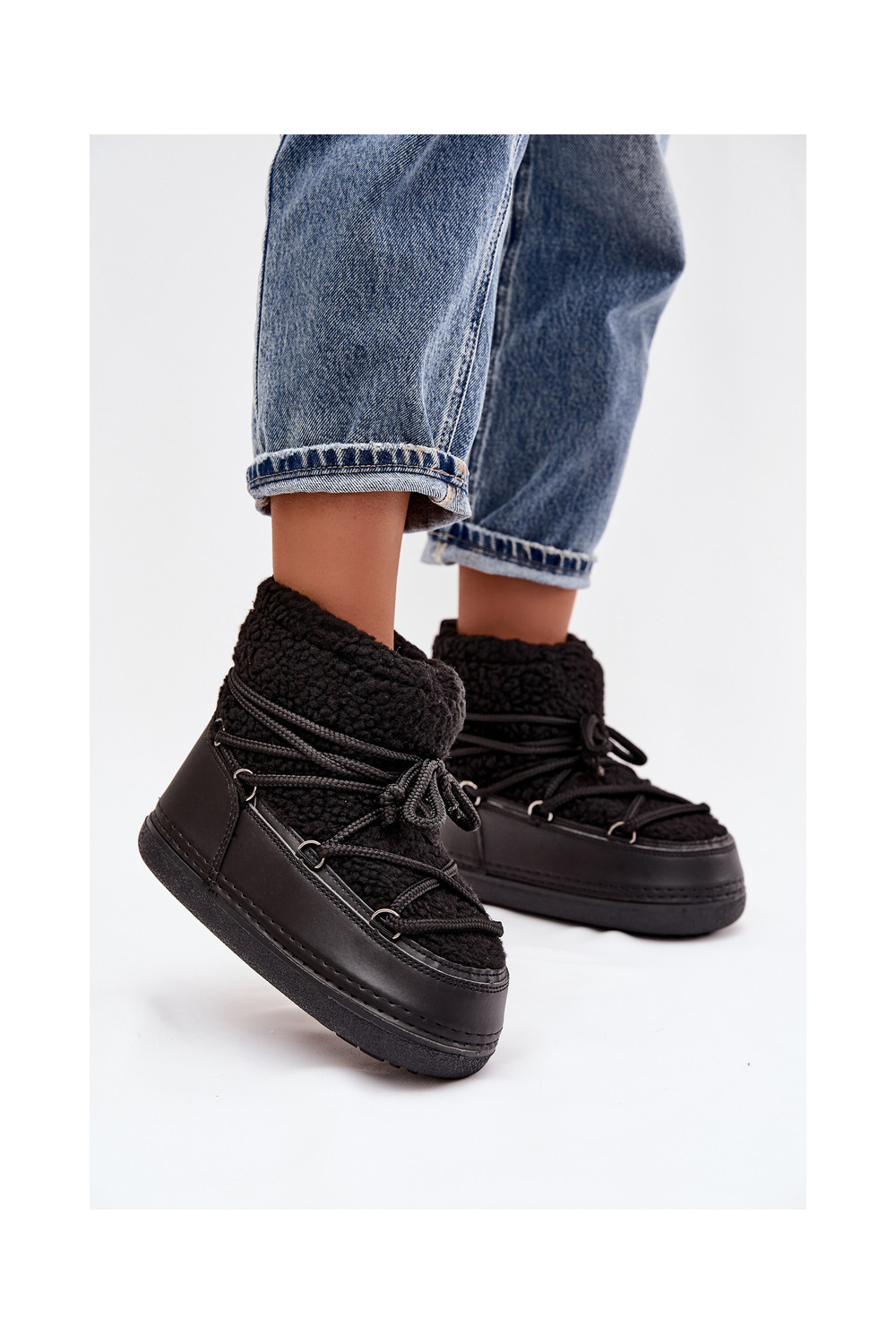 nööpidega lumesaapad  karusnahaga Typu Baranek nööritavad Must Belira