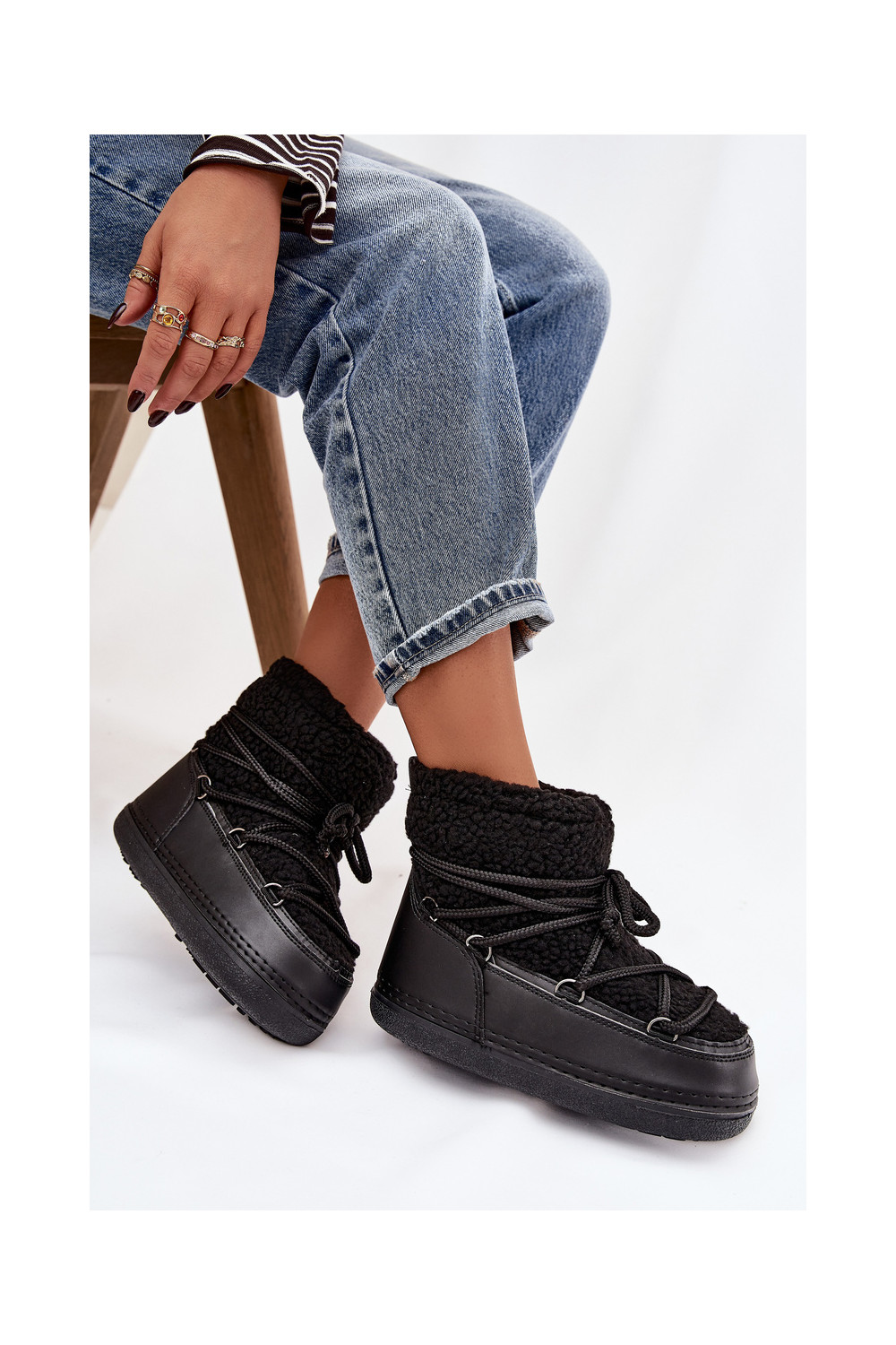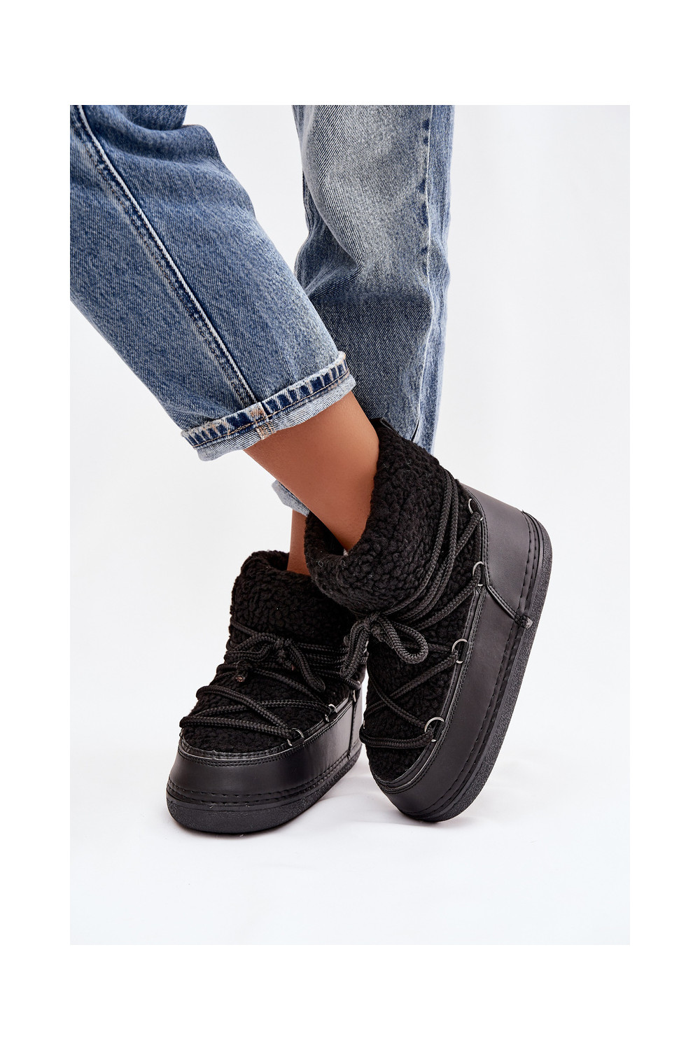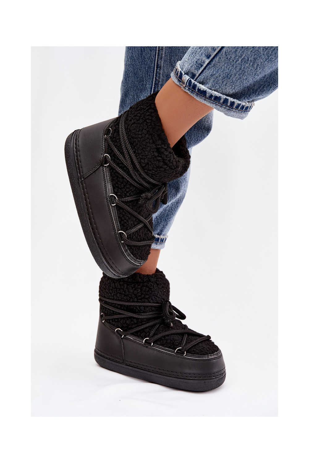 nööpidega lumesaapad  karusnahaga Typu Baranek nööritavad Must Belira