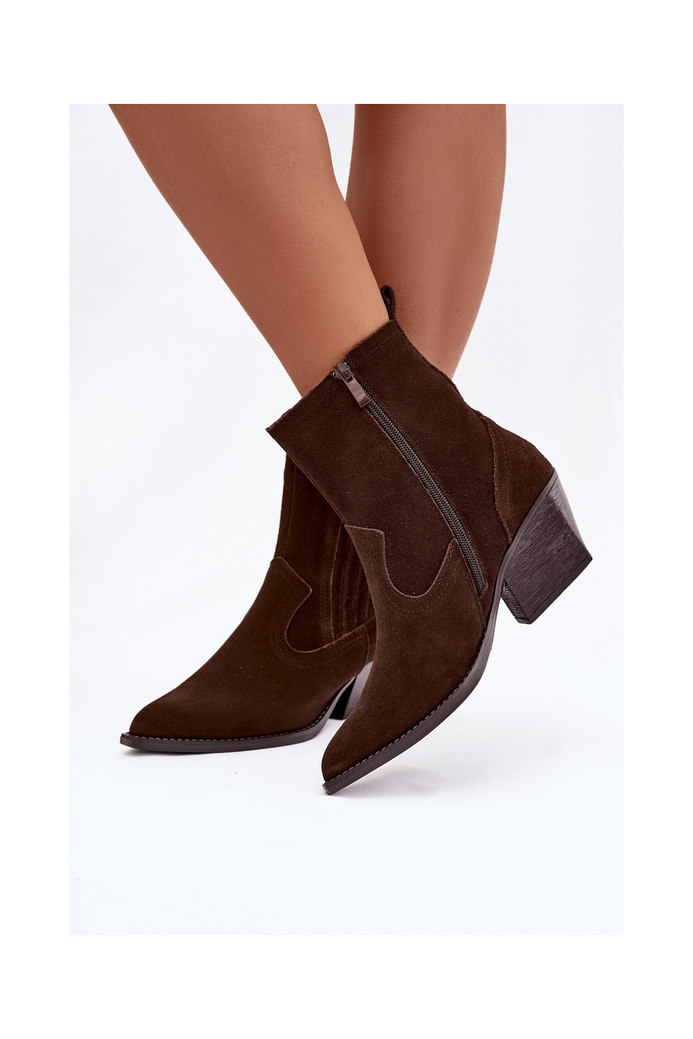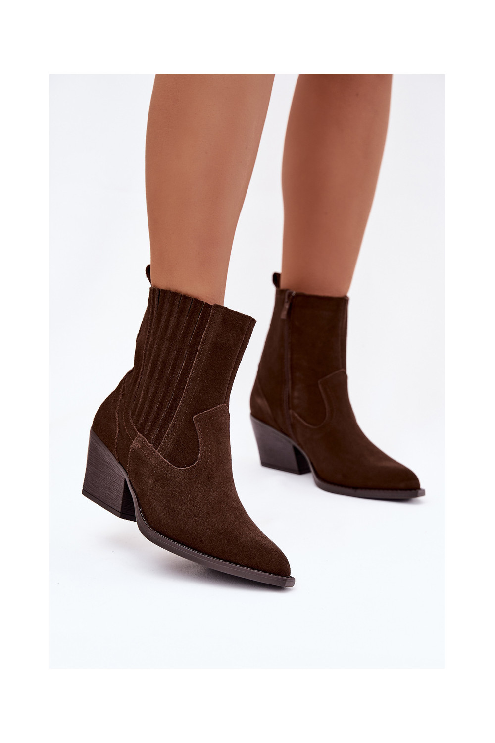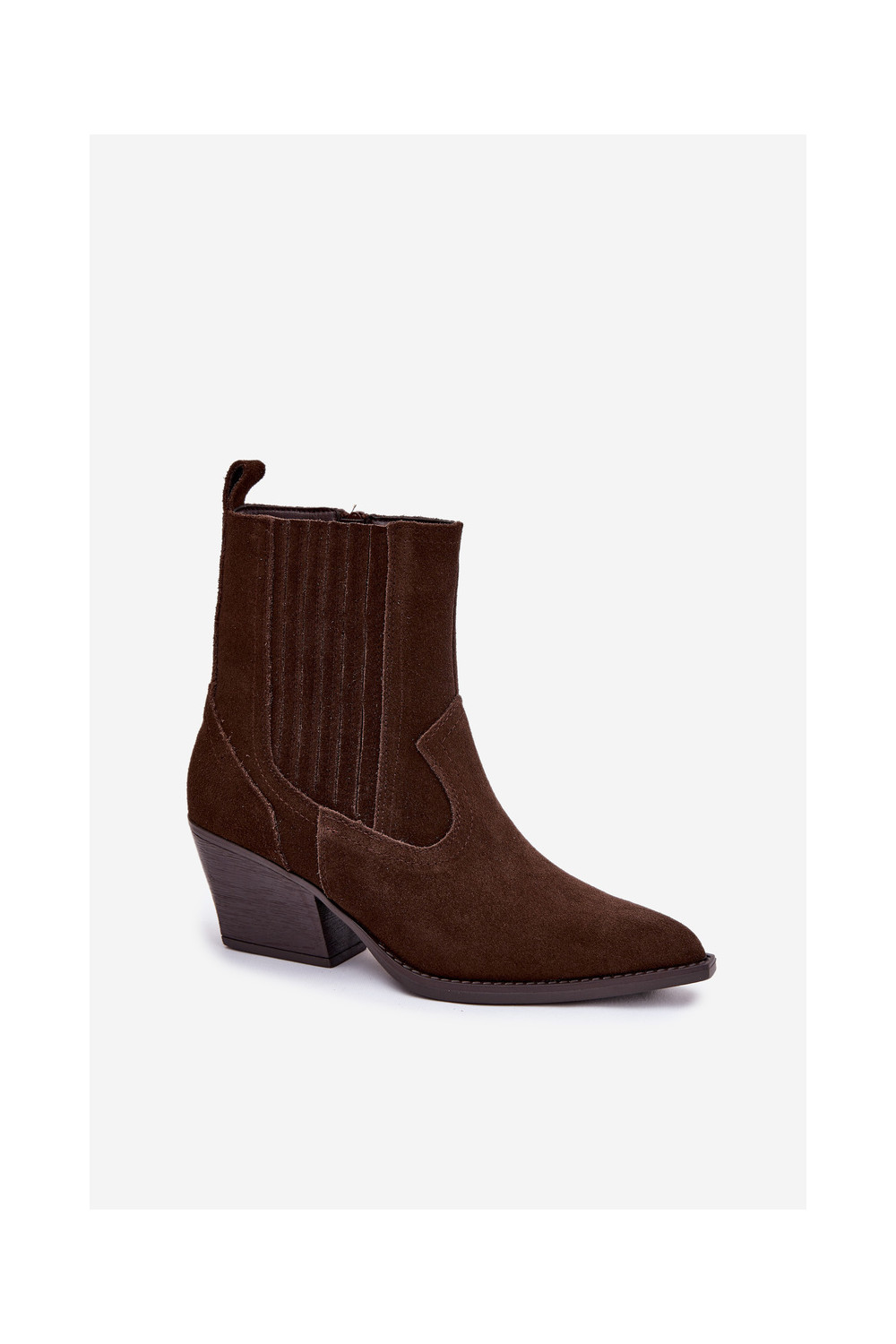 seemisnakhsed kauboistiilis saapad kõrge jämeda kontsaga voodriga Czekoladowe Dylira