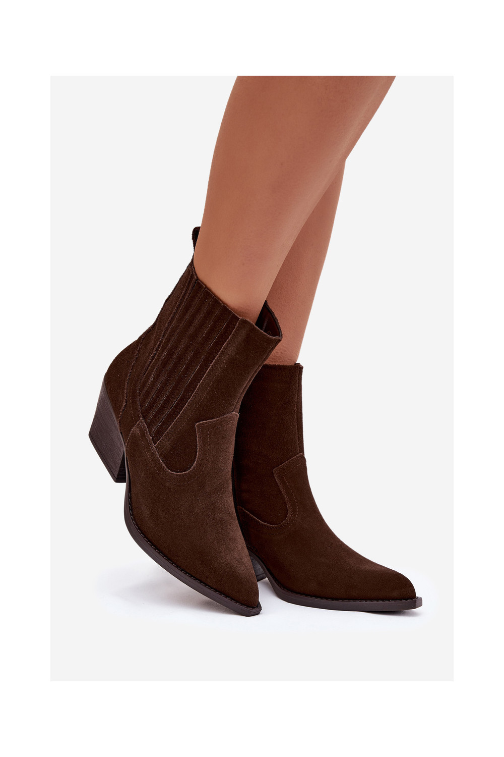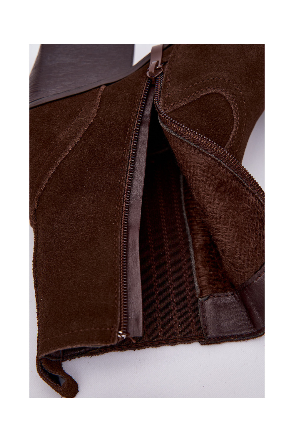Šokolaadi värvi sametised kauboistiilis naiste saapad kontsadega, soojustatud Dylira