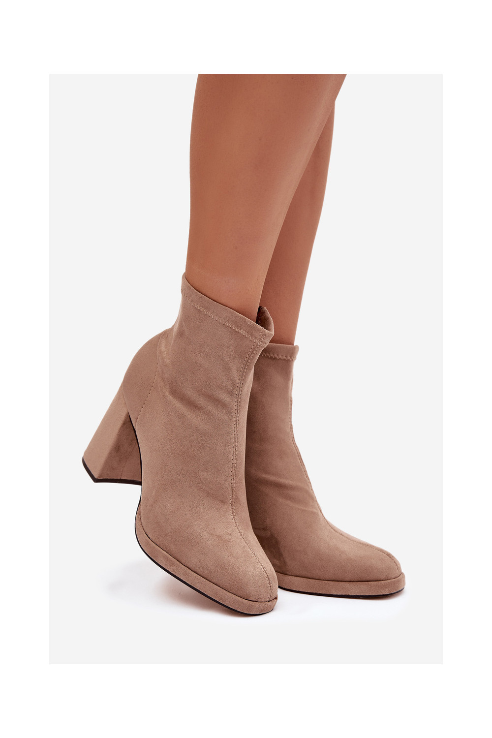 Pealiste poolsaapadEco Suedeu kõrge jämeda kontsaga beeži värvi Karvella