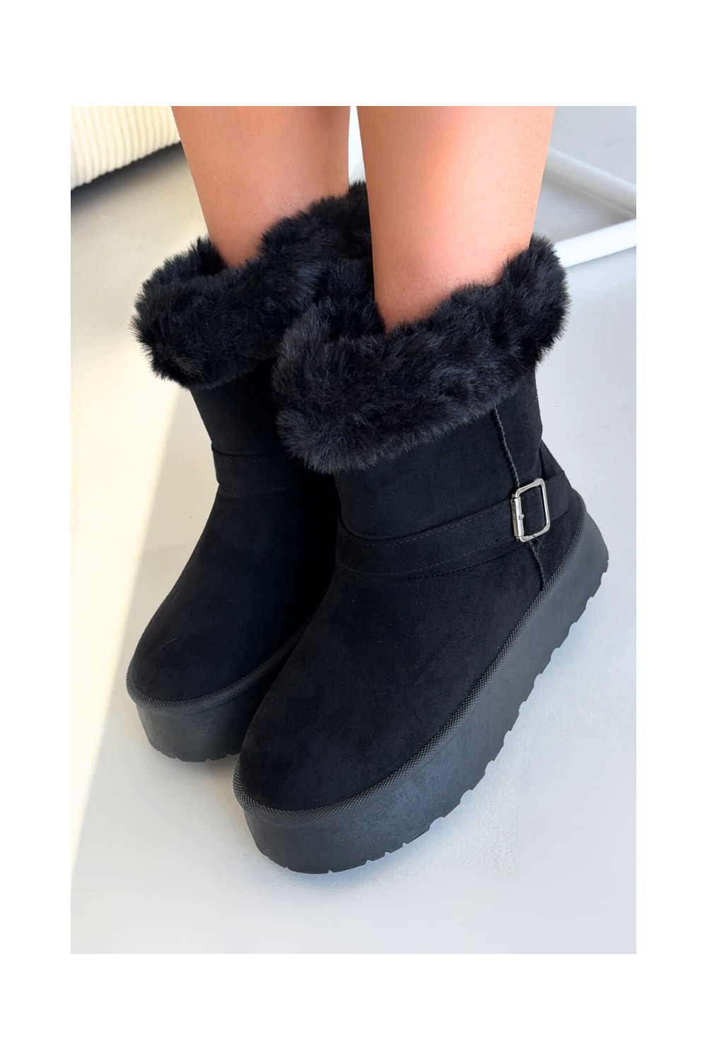 nööpidega lumesaapad platvormiga neetide ja pandlaga Must Jesella