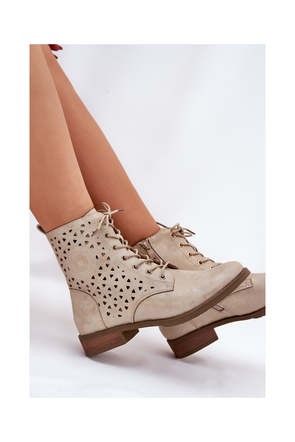 Boots With Perforated Pattern With Zip Light Beige Serfina