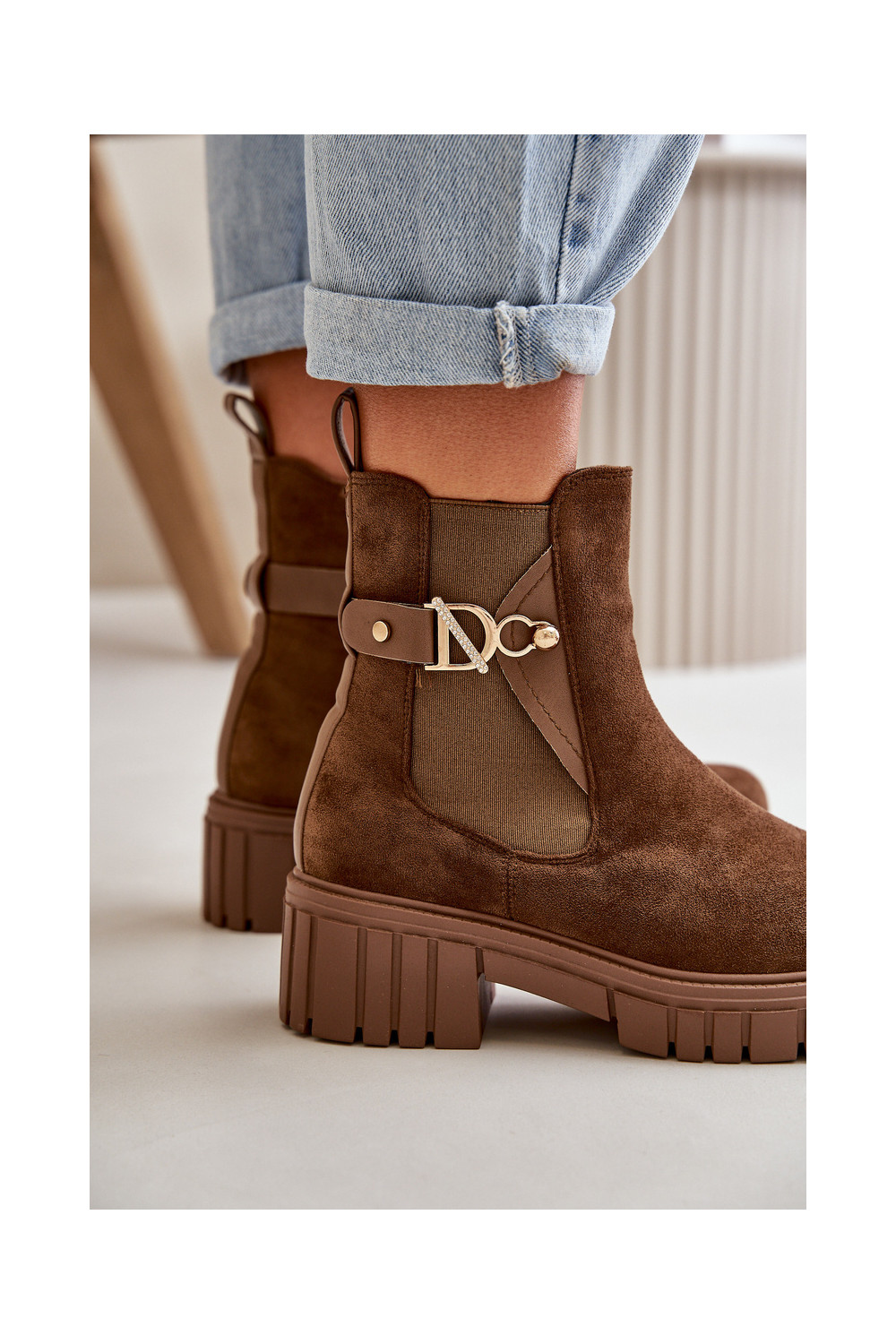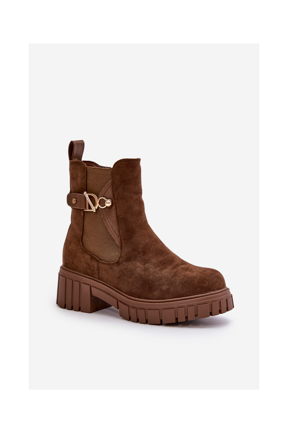 Warm Women's Boots with Golden Detail Eco Suede Brown Bervena