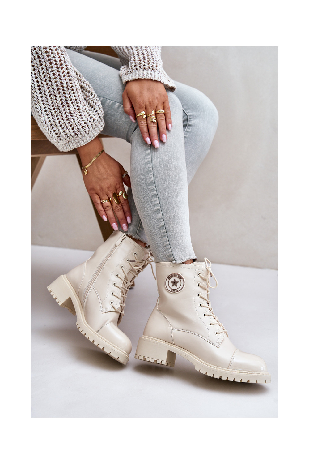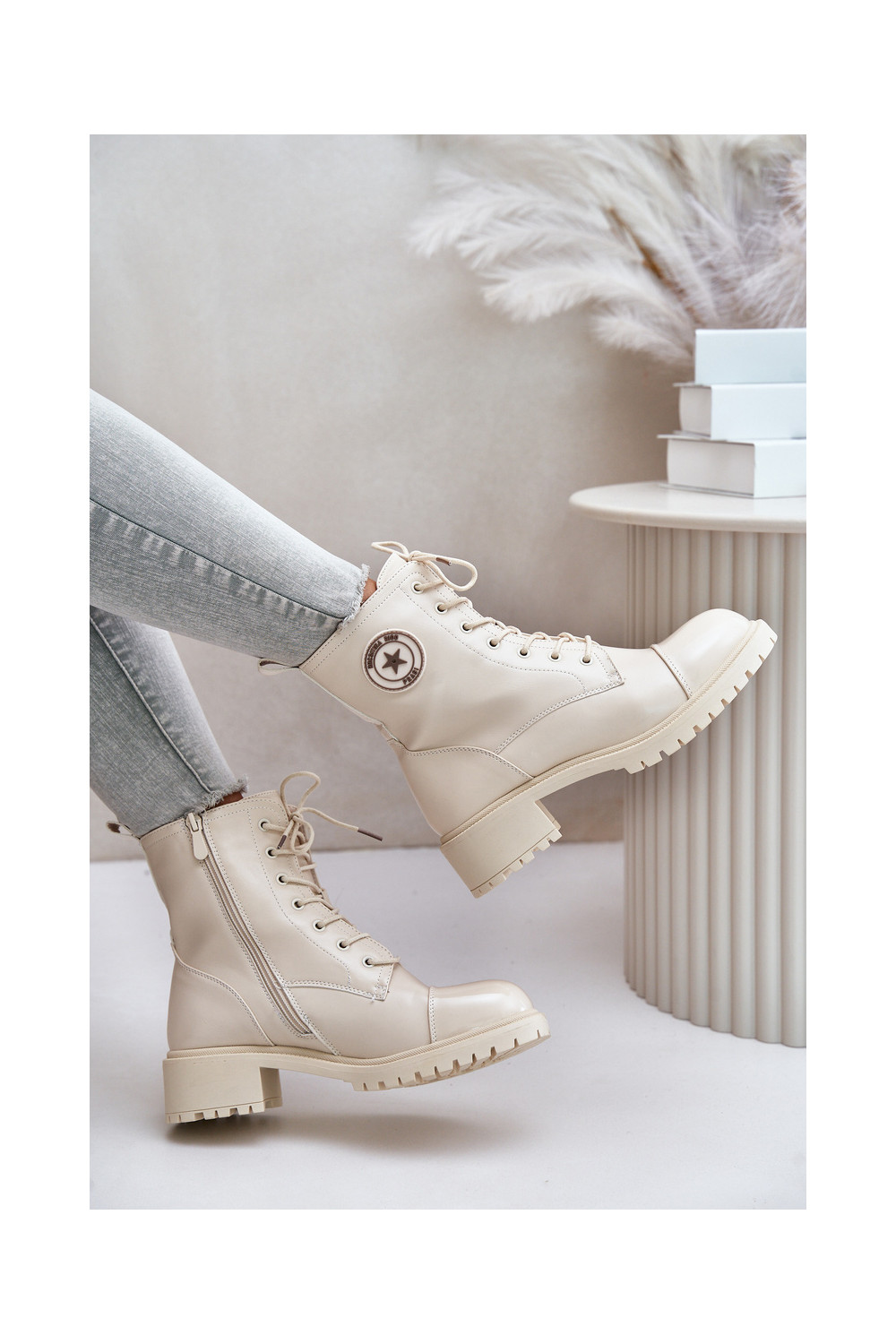 Warm Zip-Up Work Boots Beige Soratta