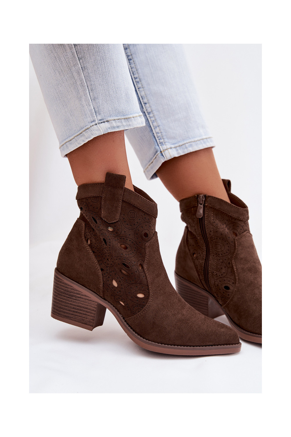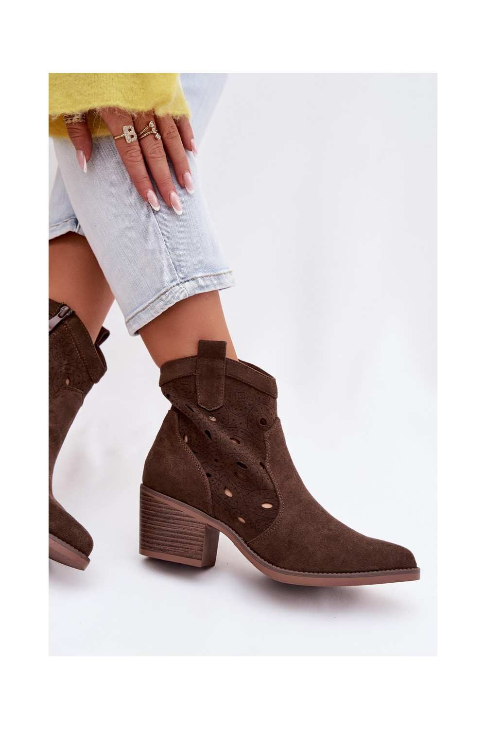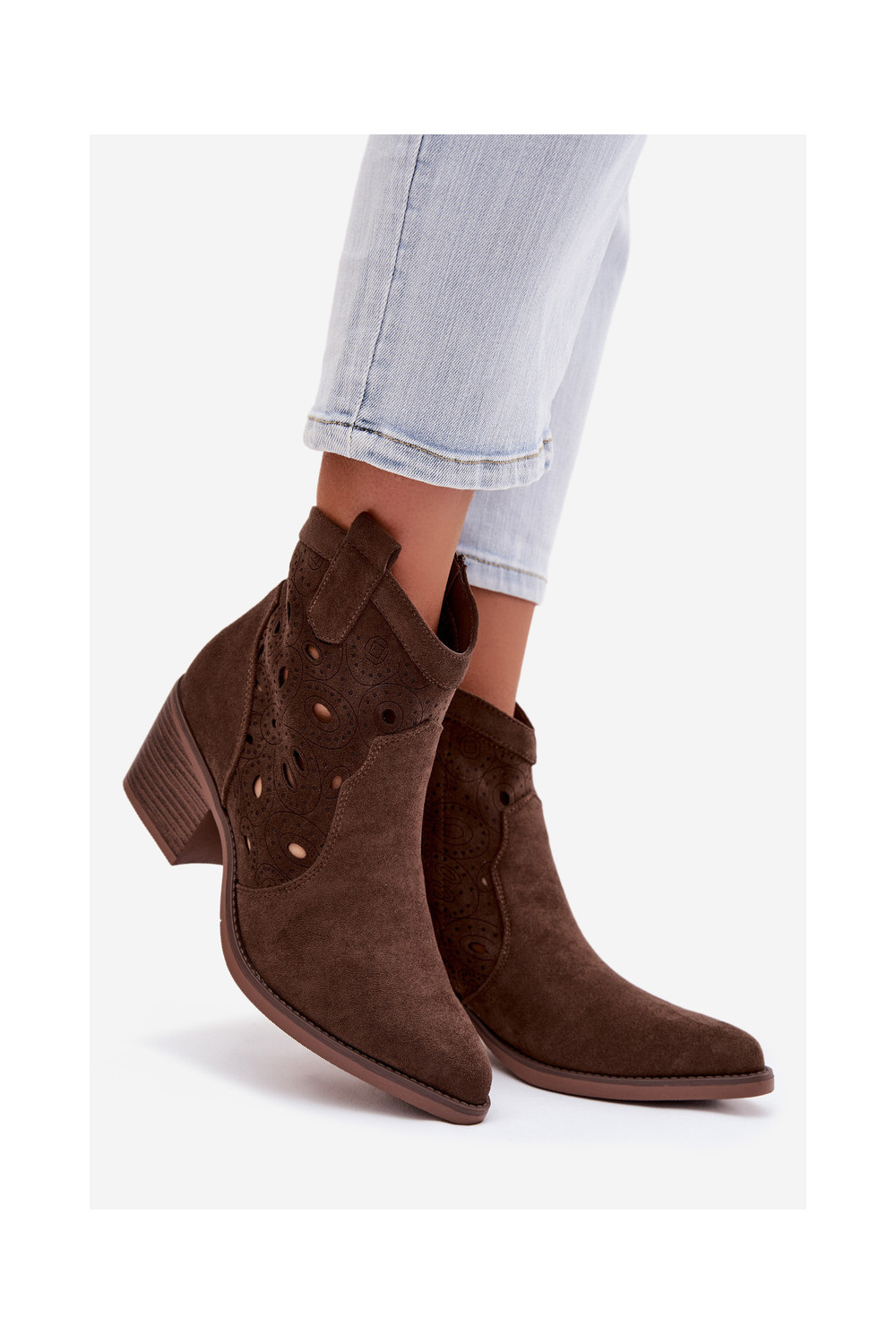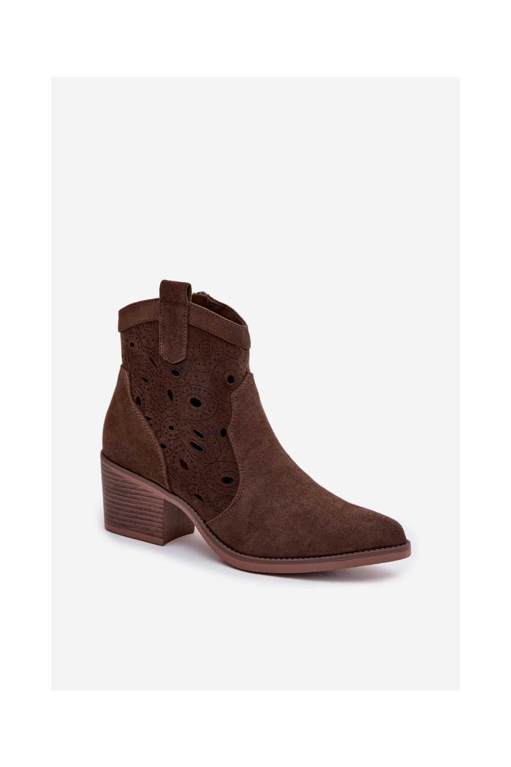 Nolvina kauboistiilis naiste avatud saapad avatud detailidega šokolaadi värvi