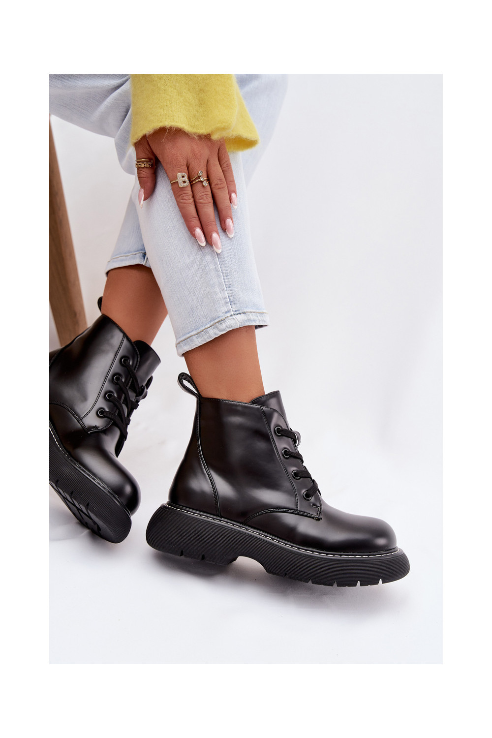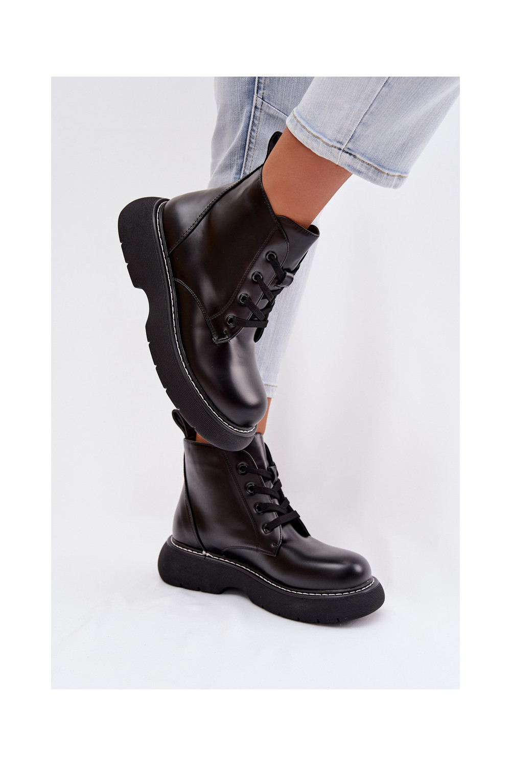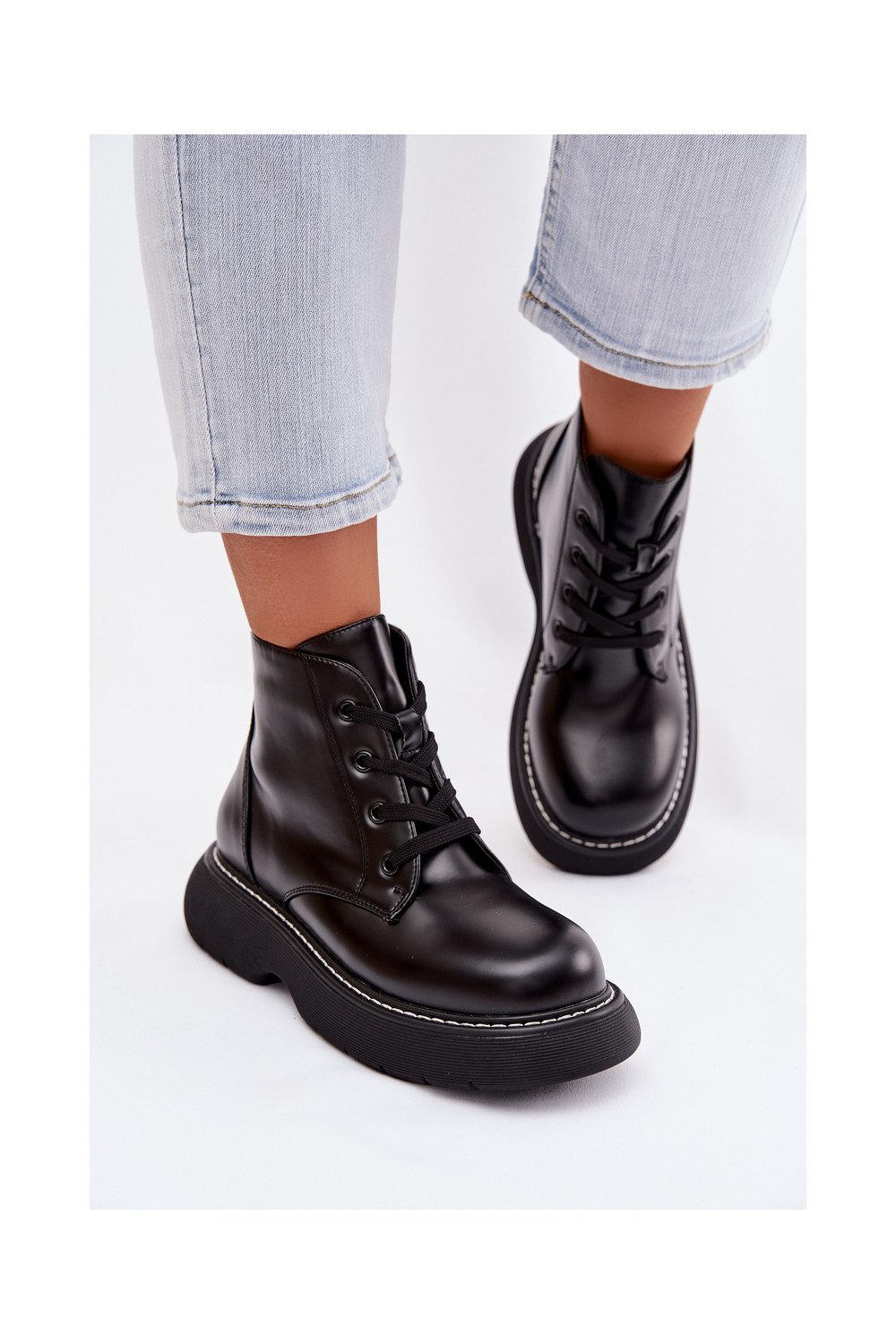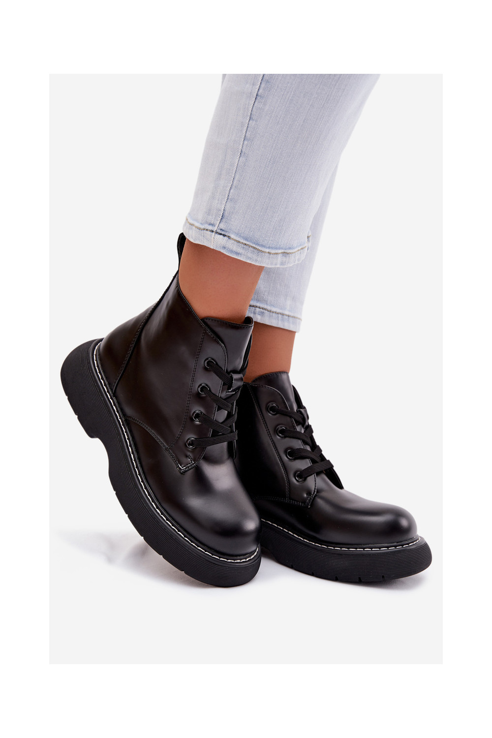 Women's Insulated Platform Ankle Boots Lace-Up Black Harmine