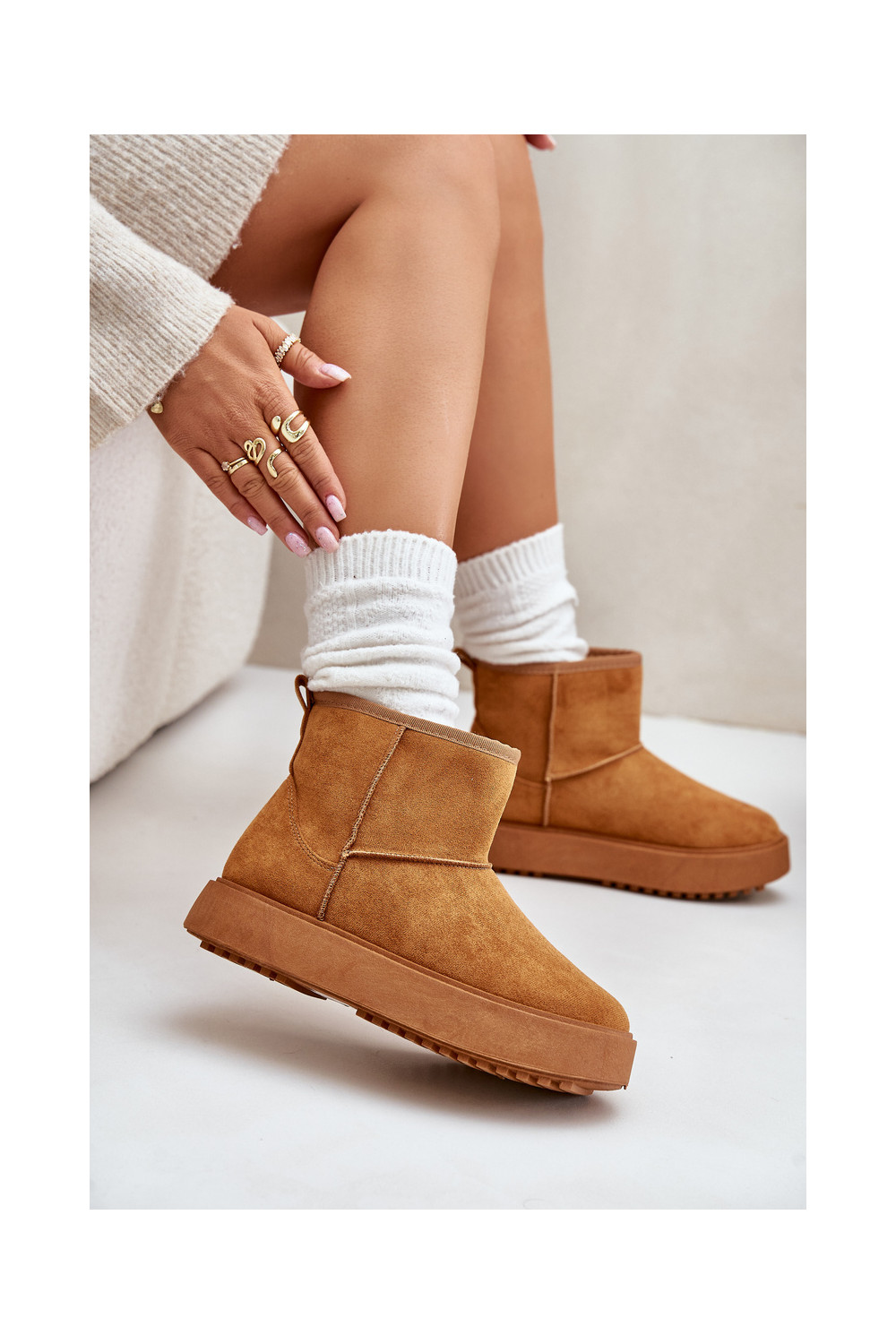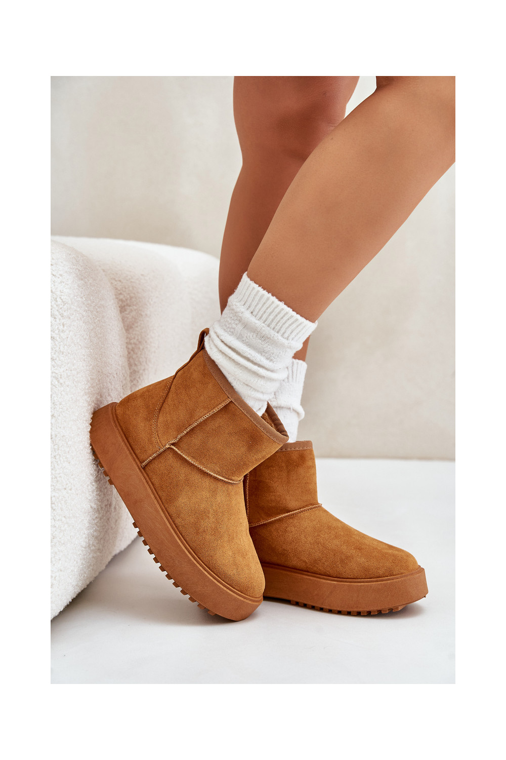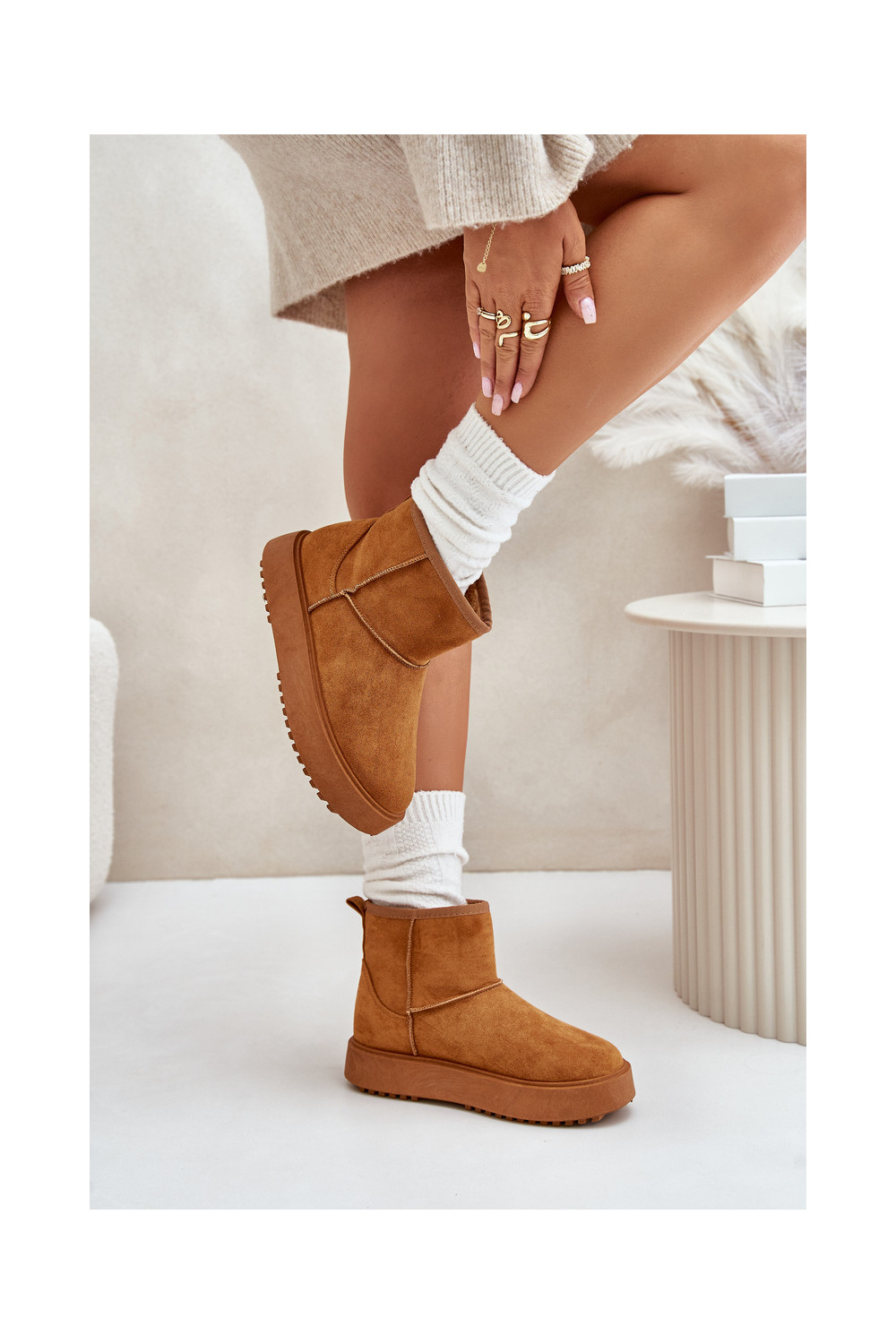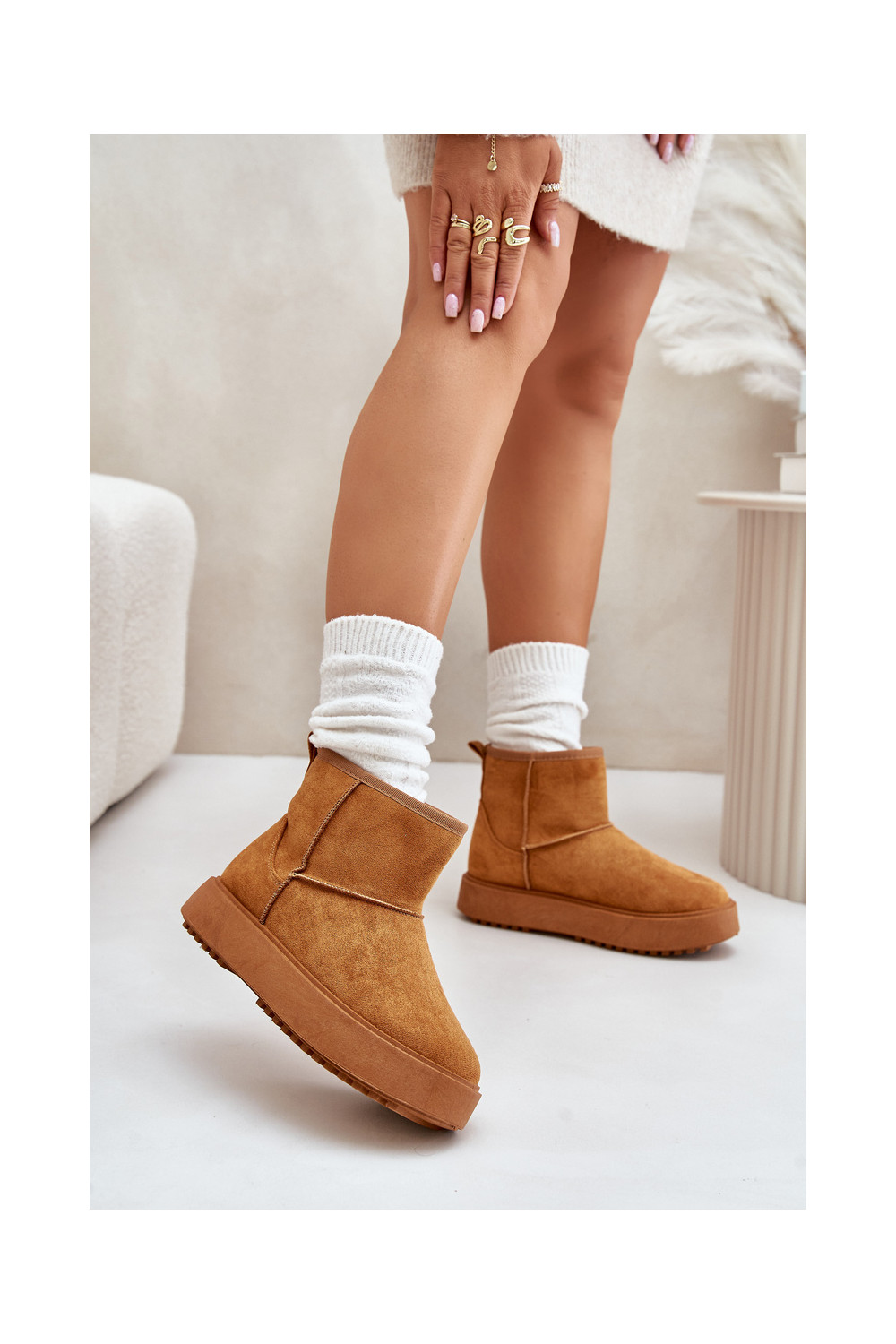 Pealiste omad nööpidega lumesaapad platvormigaEco Suedeu pruunid värvi Atteria