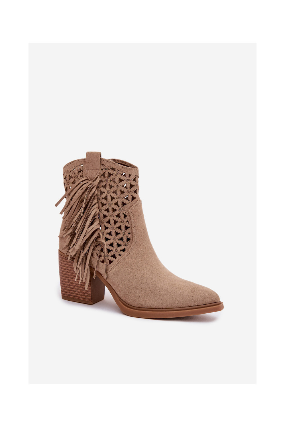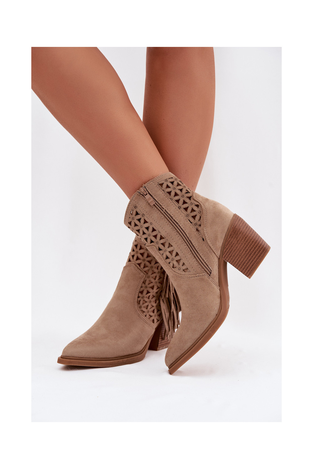 Saapad Kauboi saapad Pealiste omad kõrge jämeda kontsaga narmastega beeži värvi Calissey