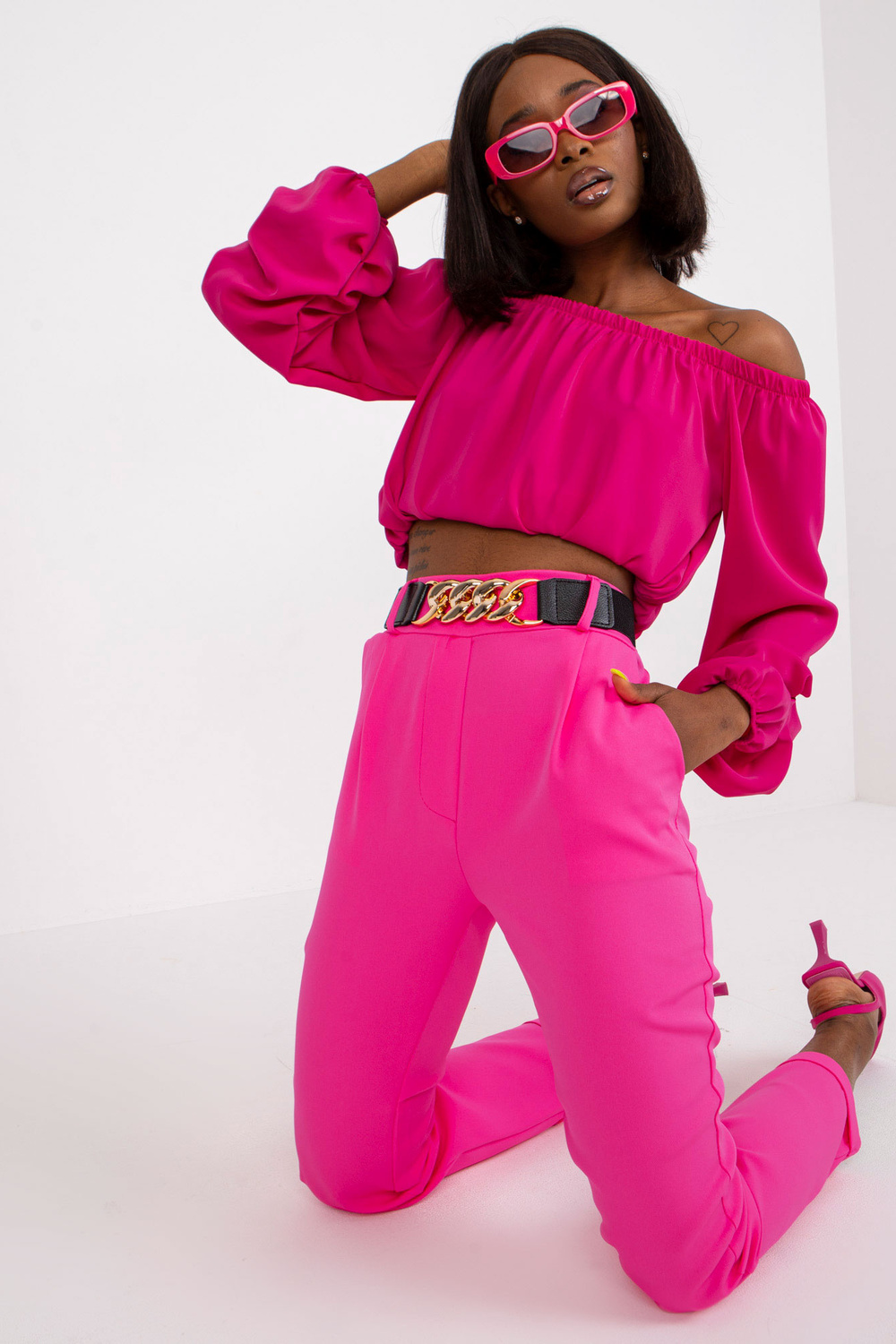 Fluopink sirged püksid Sevilla kõrge vöökohaga kangast. tarvikud: elastik vöökohas, taskud, vöö materjalkoostis: 95% polüester, 5% elastaan pesumeetod: masinpesu 30°C Tootekood: DHJ-SP-13165.20 domineeriv muster: sile Stiil: C