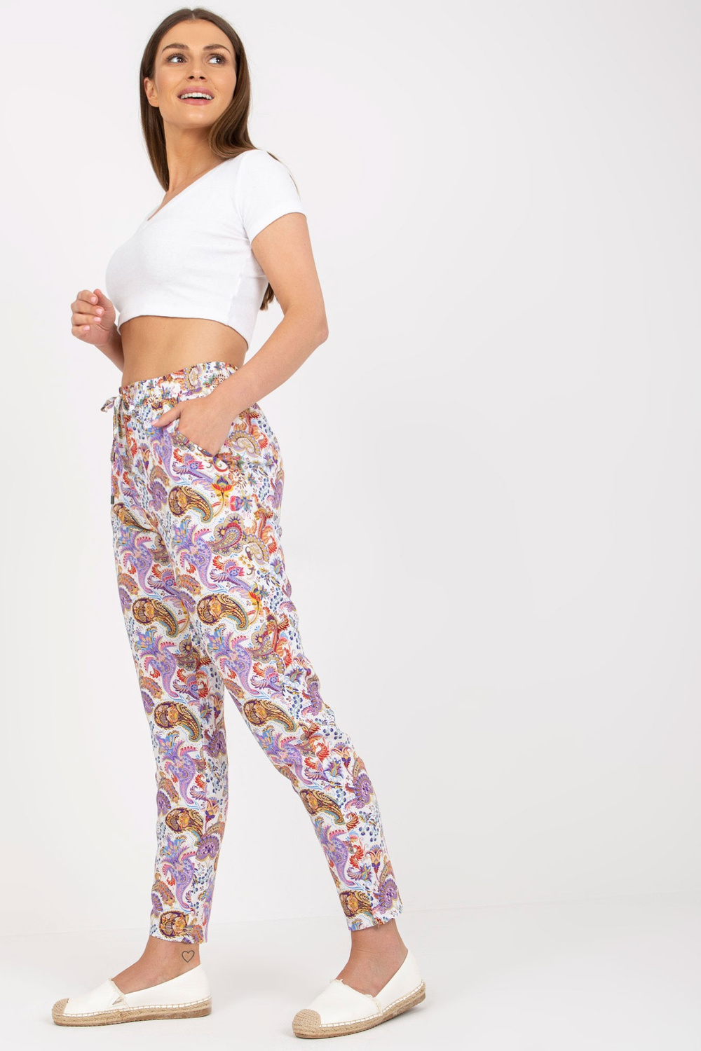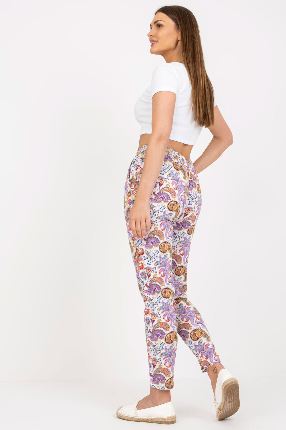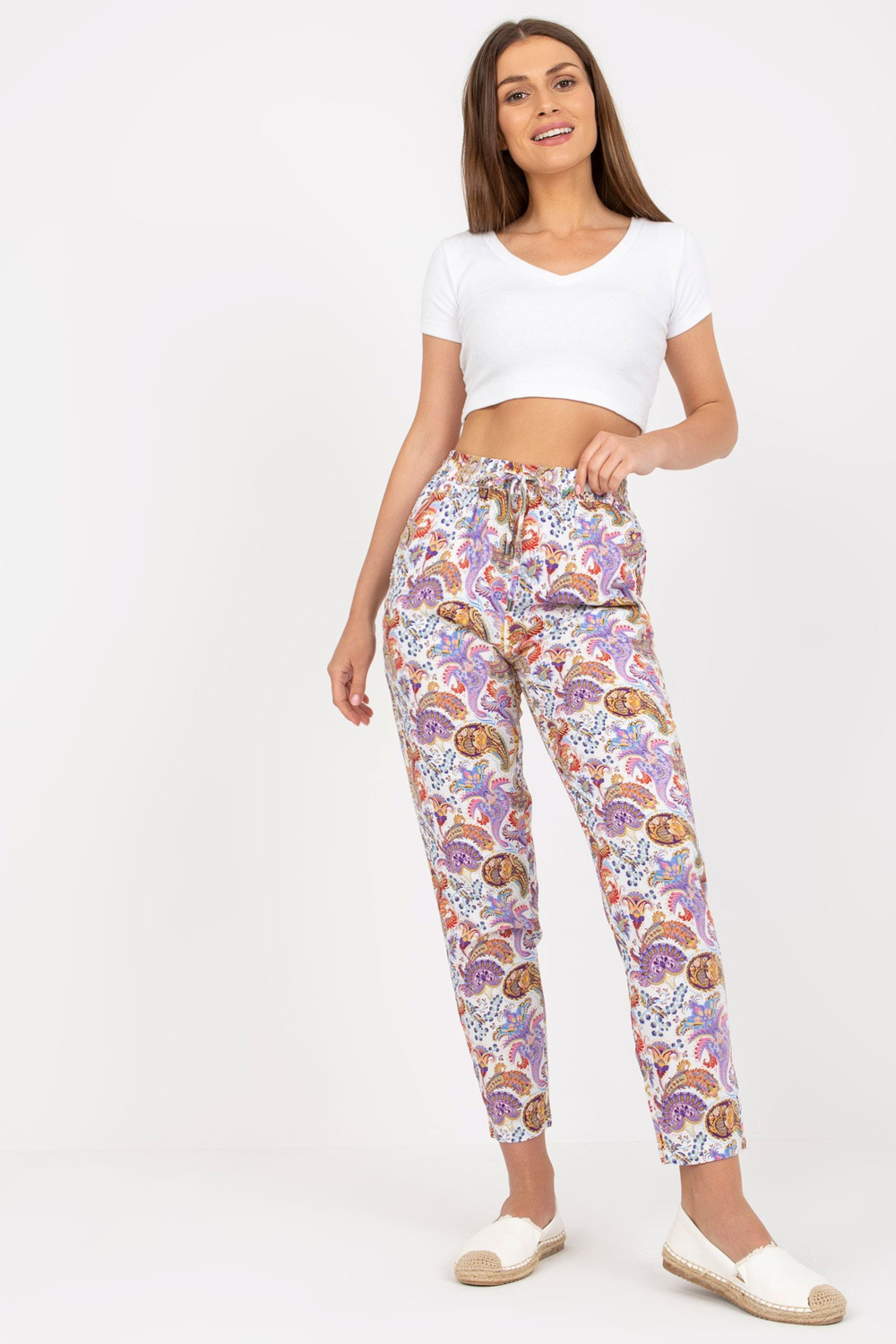 Valged ja lillad suvepüksid materjalist SUBLEVEL mustritega .