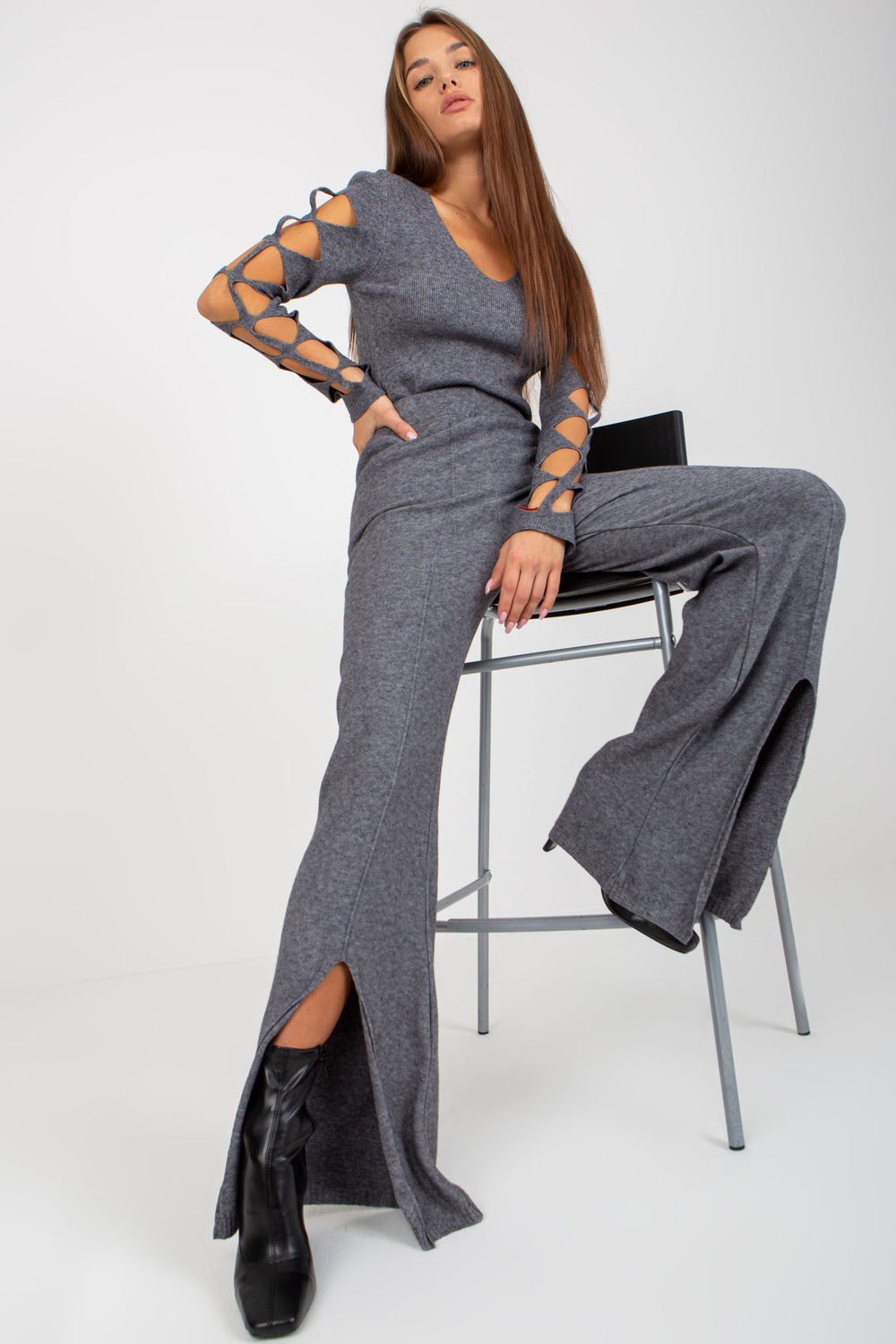 - Modell kannab suurust 1. Modelli mõõdud: kõrgus 163 cm, rind 86 cm, vöö 56 cm, puus 88 cm