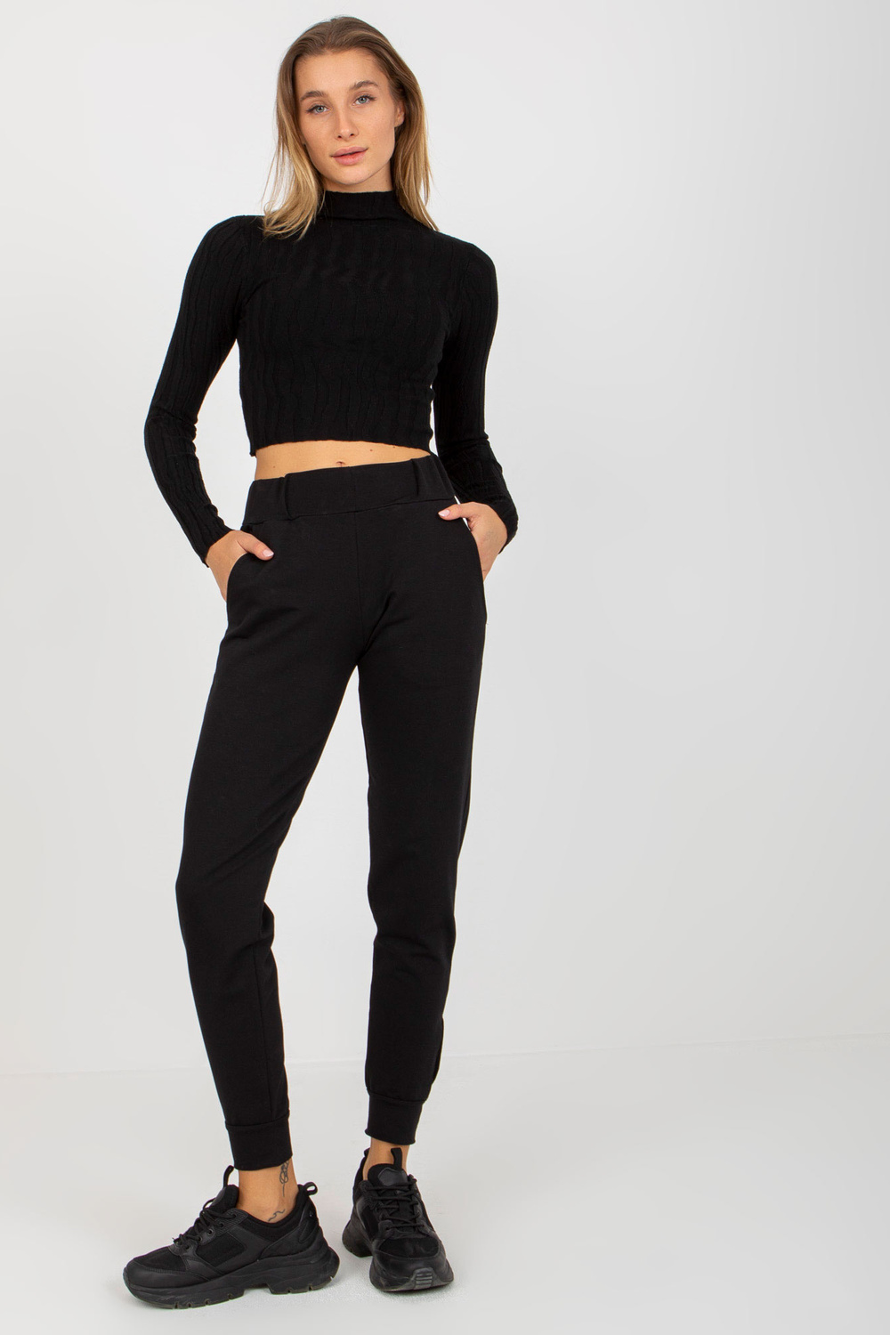Mustad naiste dressipüksid ilma suleta OCH BELLA. Tootekood: TW-SP-BL-1002.06X domineeriv muster: sile Stiil: vabaaja üritus: vabaaja, tööle, linna peale, jalutama Modell kannab suurust S. Modelli mõõdud: kõrgus 175,5 cm, rinnaümbermõõt