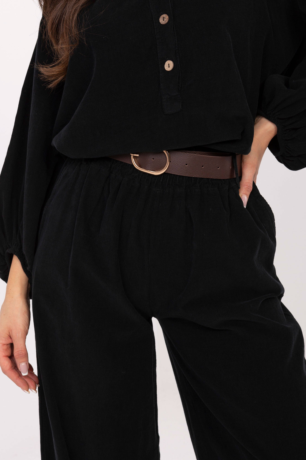 Ühe suurusega pükste mõõdud: vöökoha laius – 31 cm (lamades), vöökoha laius – 53 cm (venitatuna), puusa laius – 58 cm, pükste pikkus – 108 cm.