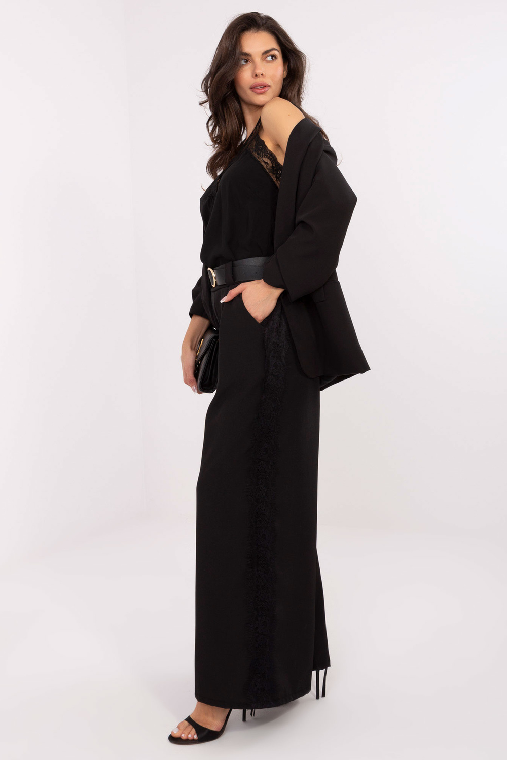 Pükste universaalse suuruse mõõdud: vöö laius – 34 cm (lamades), vöö laius – 50 cm (venitatud), puusa laius – 59 cm, pükste pikkus – 107 cm.