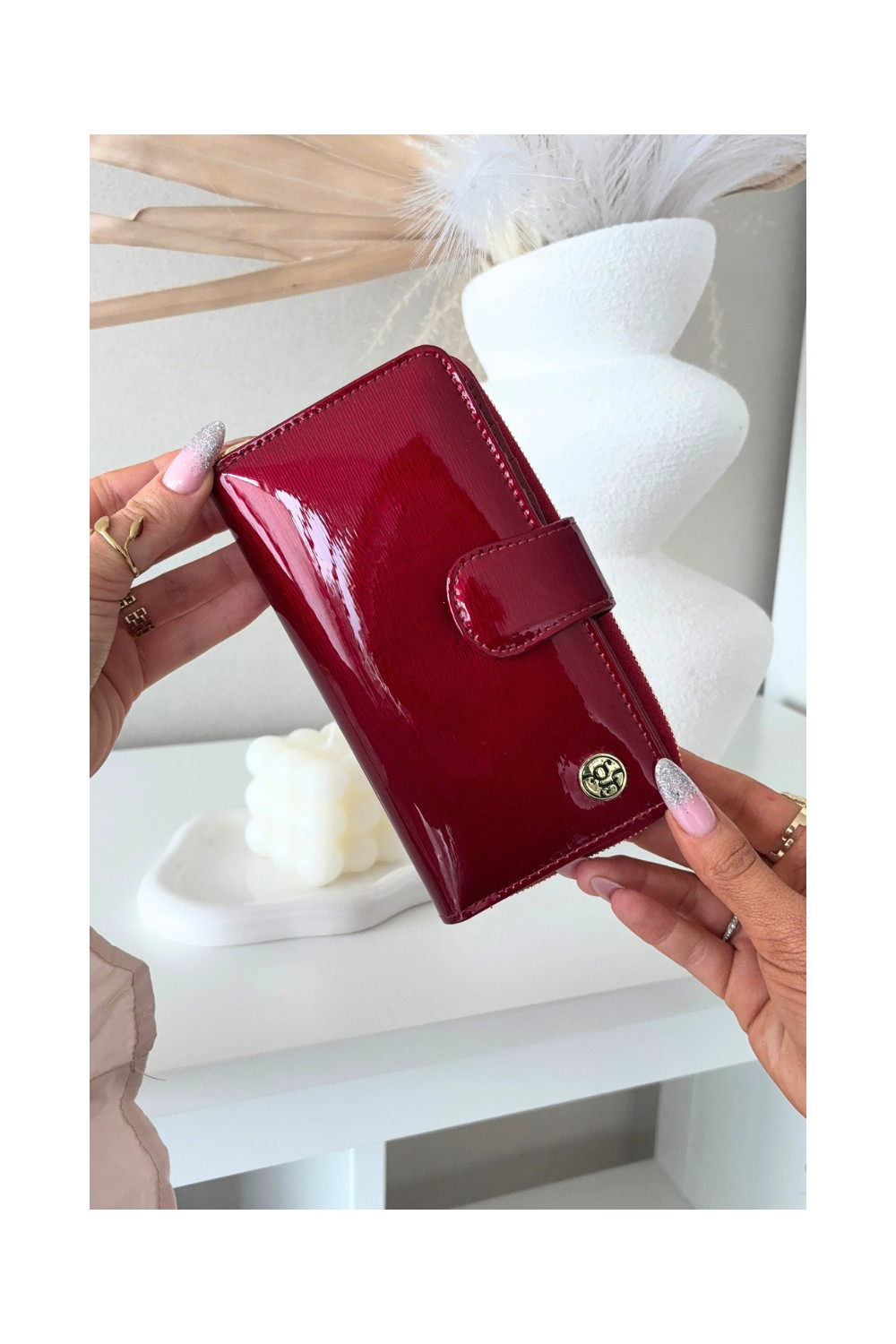 Läikiv naiste rahakott kuldsete detailidega punase värviga Evlinne