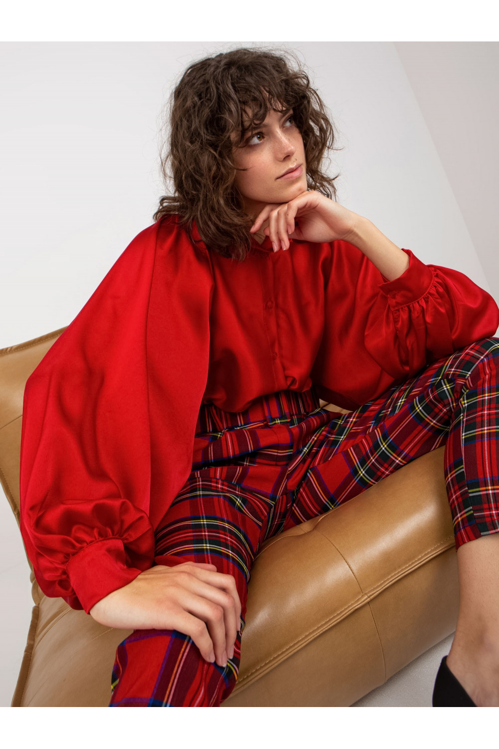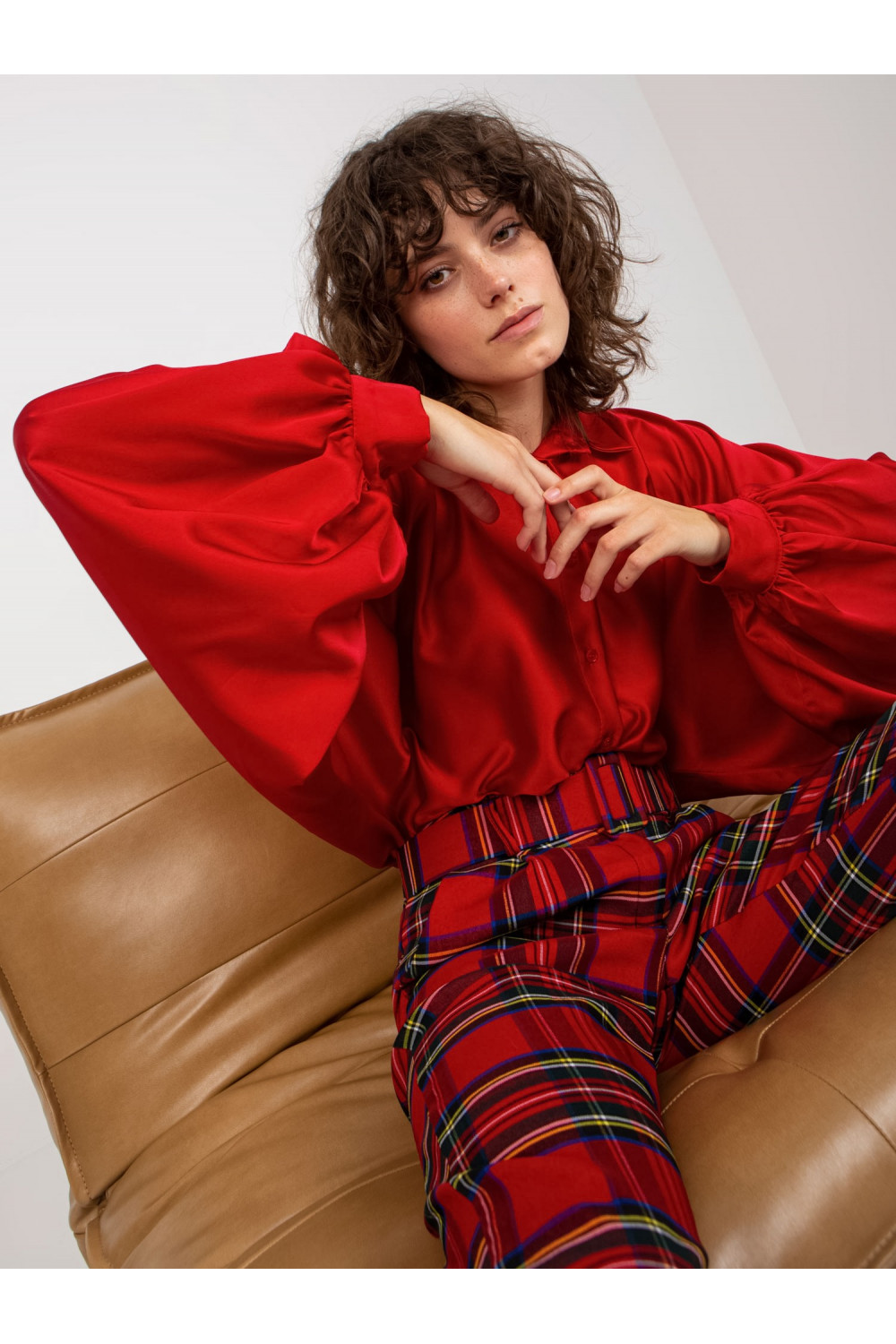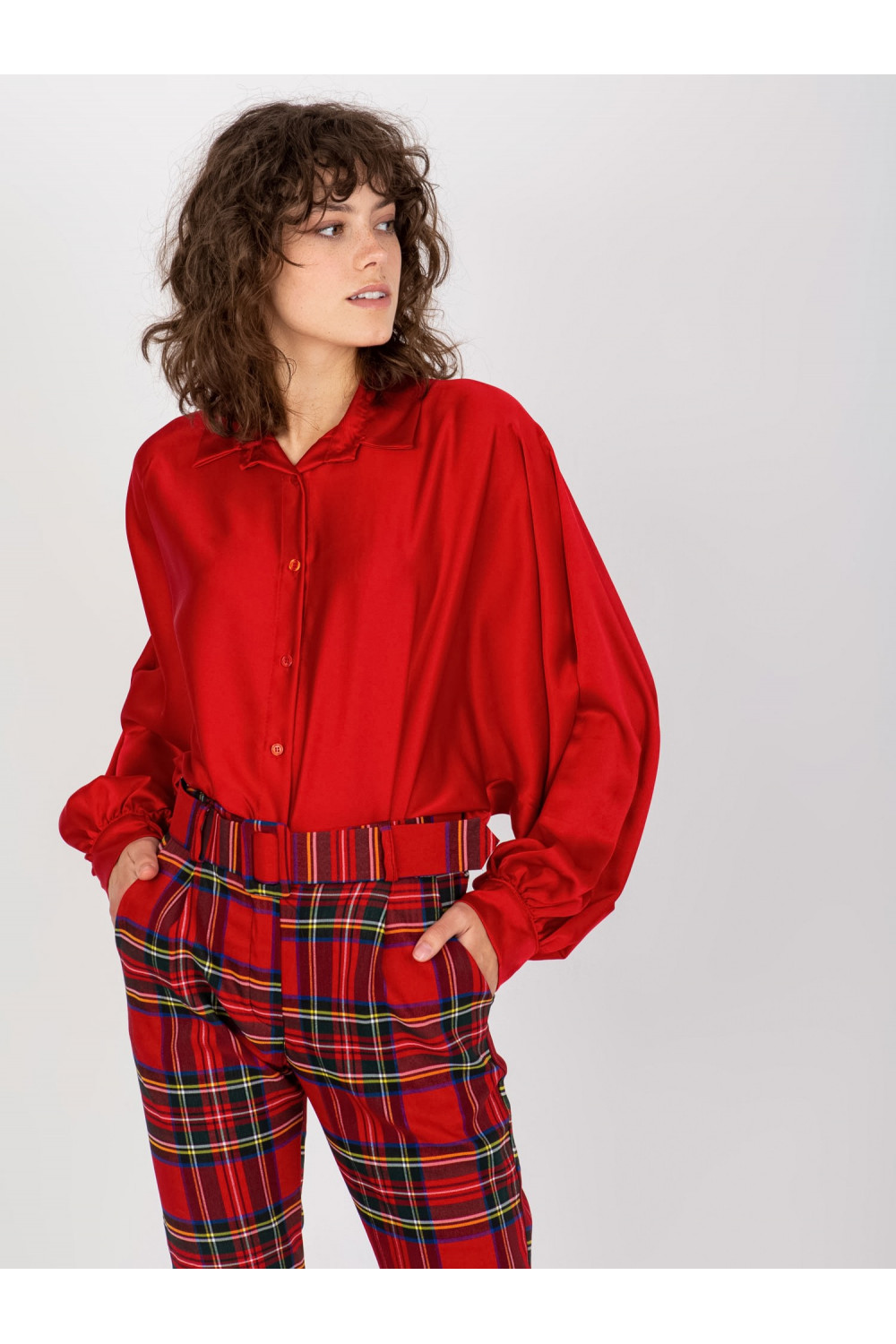 Tumepunane imitatsioon satiinist laiade varrukatega särk Cristina.