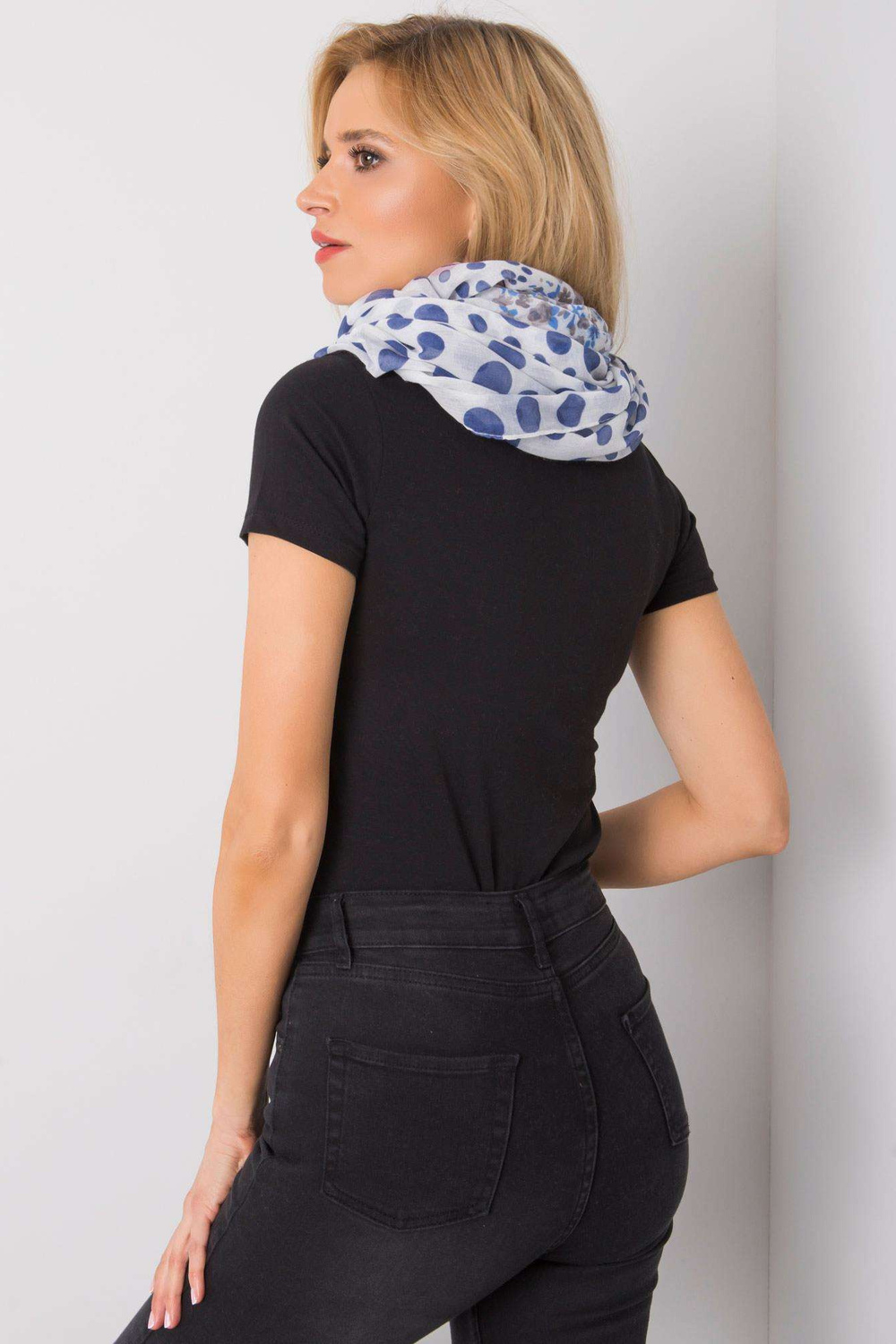 Valge-tumesinine mustritega korsten.